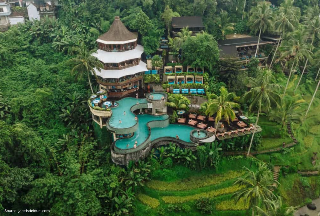 Cretya Ubud combines modern design with rice field views. Itโs a favorite spot for reels, outfit photos, and short videos.