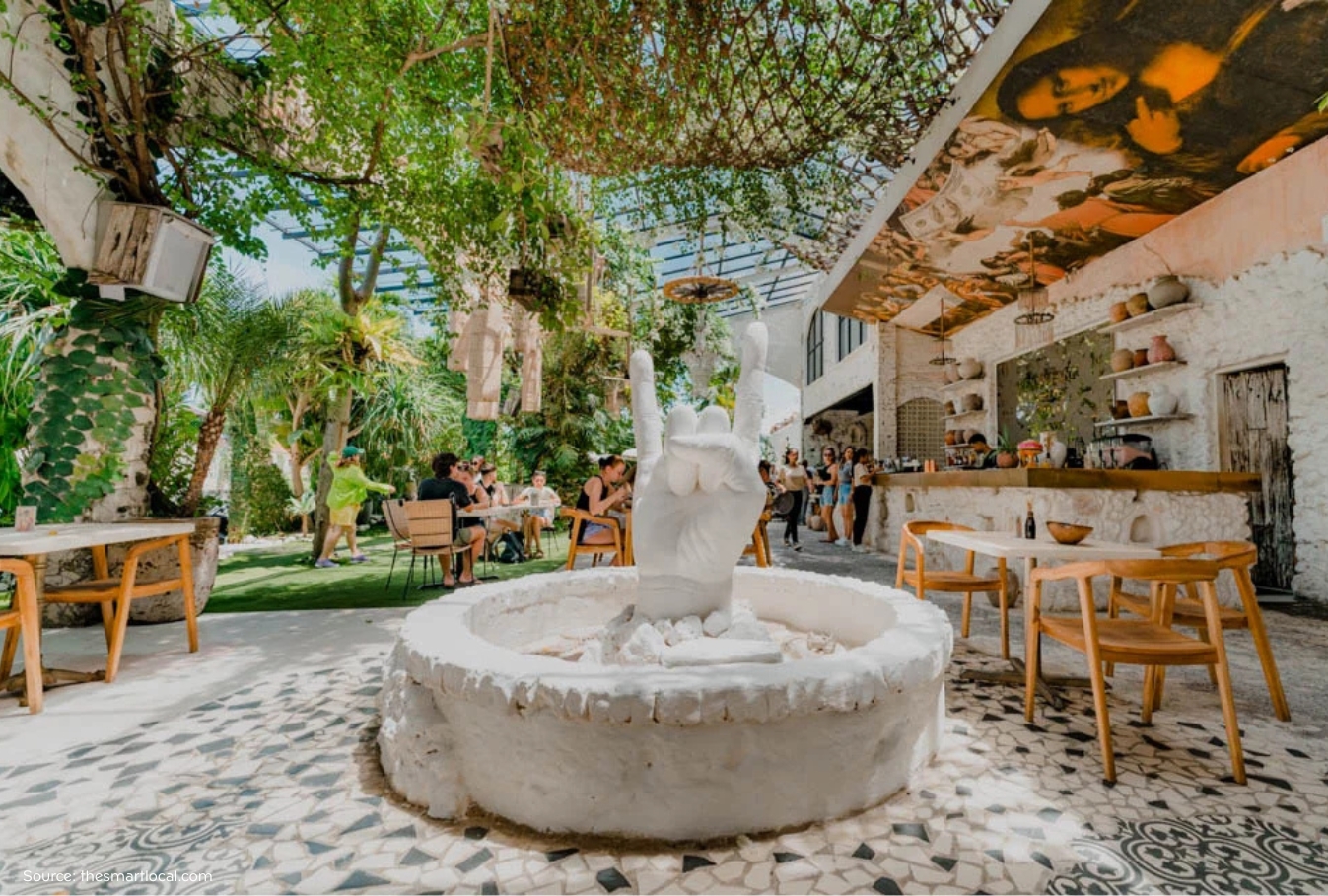 Jungle Fish near Ubud is a relaxed pool bar surrounded by nature. Itโs popular for lifestyle, fashion, and travel photos.