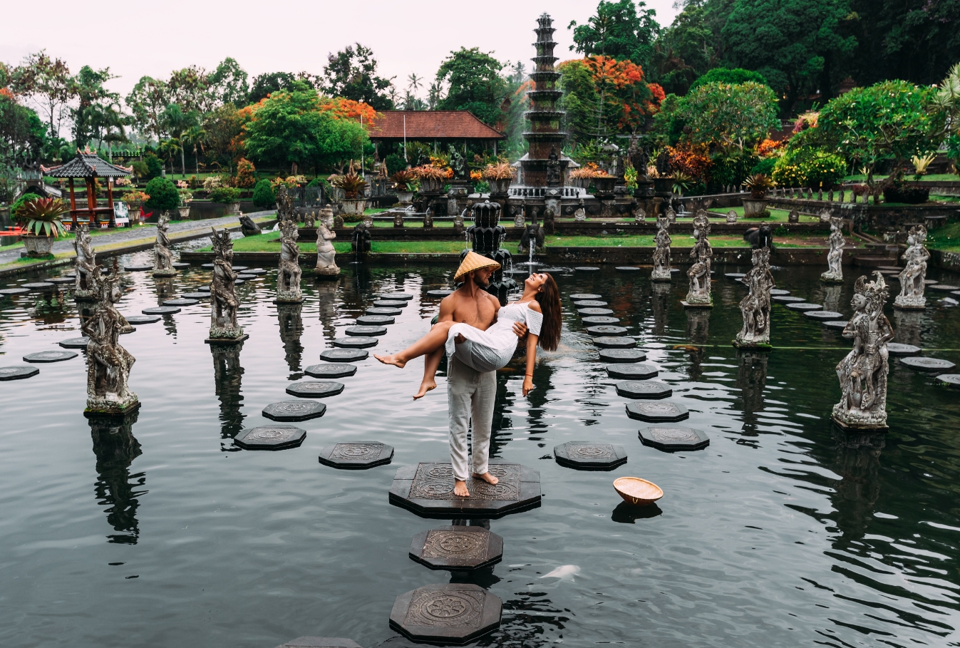Tirta Empul is a holy water temple near Ubud where locals and visitors come for spiritual cleansing. The flowing water, stone carvings, and traditional atmosphere make it very photogenic.