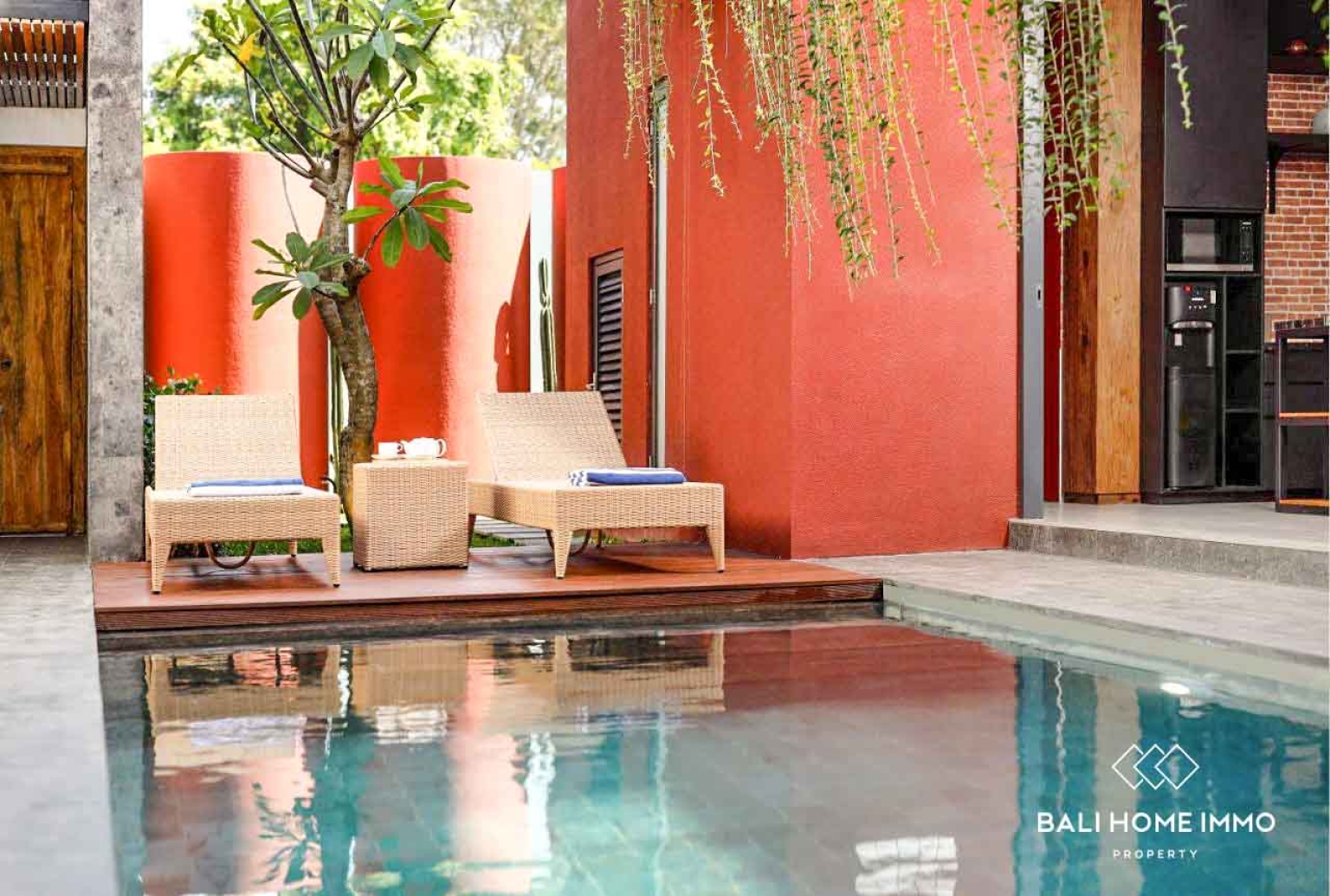 À l'étage, un balcon privé offre un espace surélevé pour se détendre et profiter du quartier. Au rez-de-chaussée, la terrasse et la piscine privée forment un véritable havre de paix tropical, idéal pour des réunions entre amis le week-end, des baignades au coucher du soleil ou simplement pour se détendre après une journée à la plage.