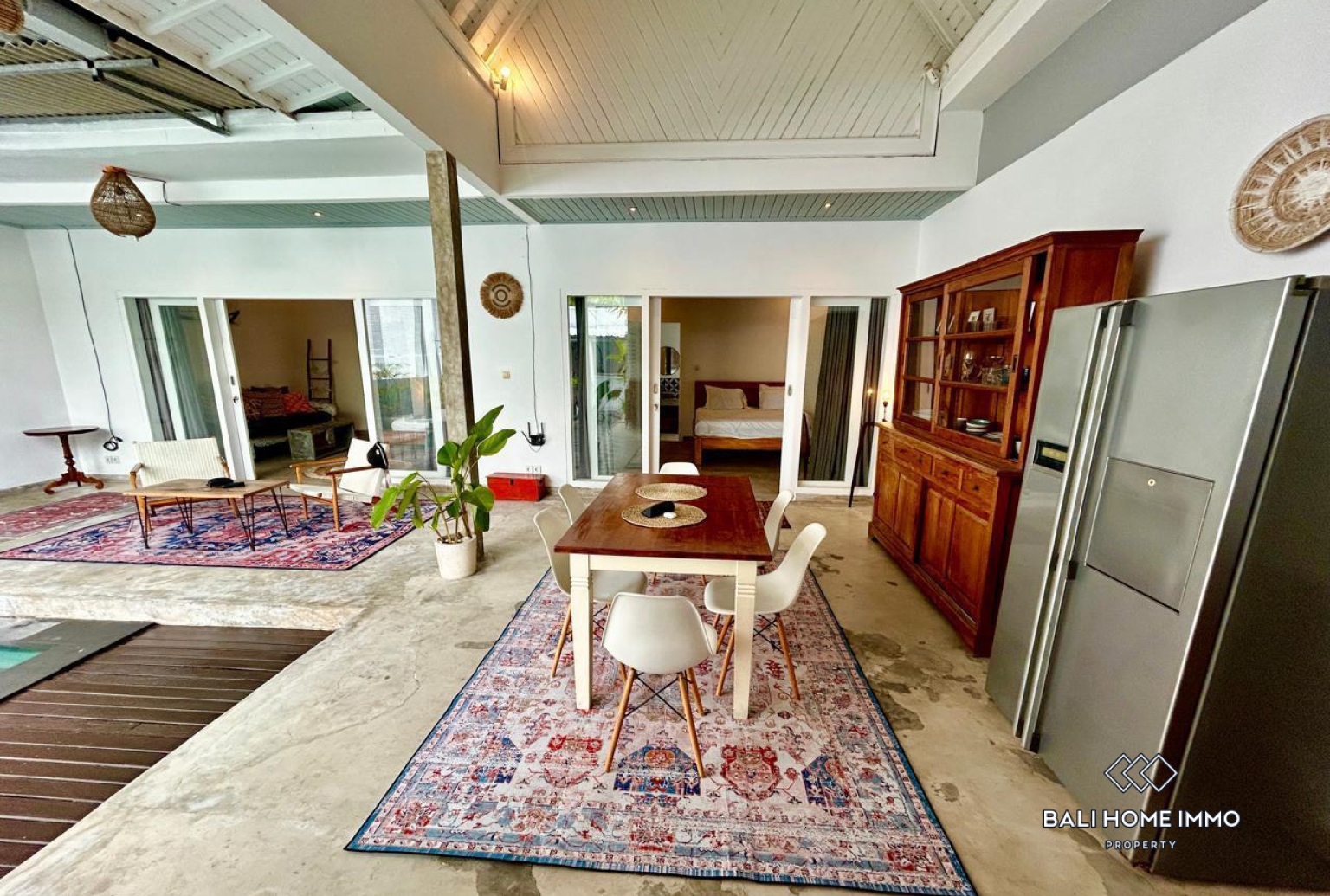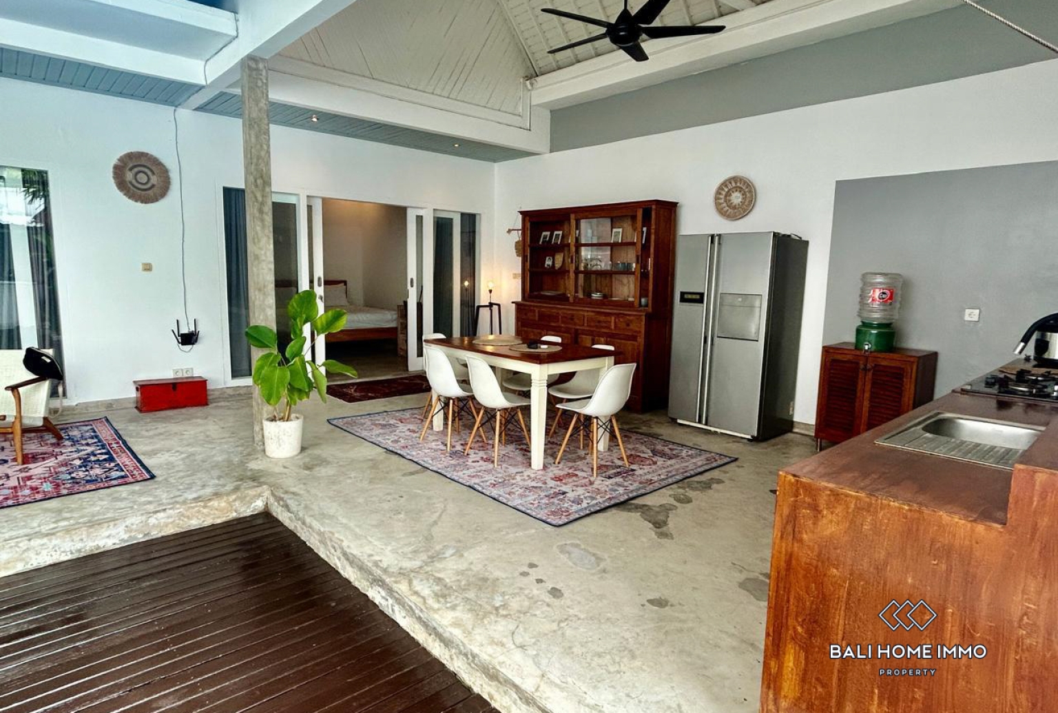 Nichée dans un coin tranquille de Berawa, cette charmante villa de deux chambres allie design industriel moderne et touches naturelles chaleureuses. L'espace de vie ouvert, lumineux et spacieux, communique harmonieusement avec la salle à manger et la cuisine, qui s'ouvrent directement sur une piscine baignée de soleil et un patio ombragé, parfaits pour se détendre ou recevoir.