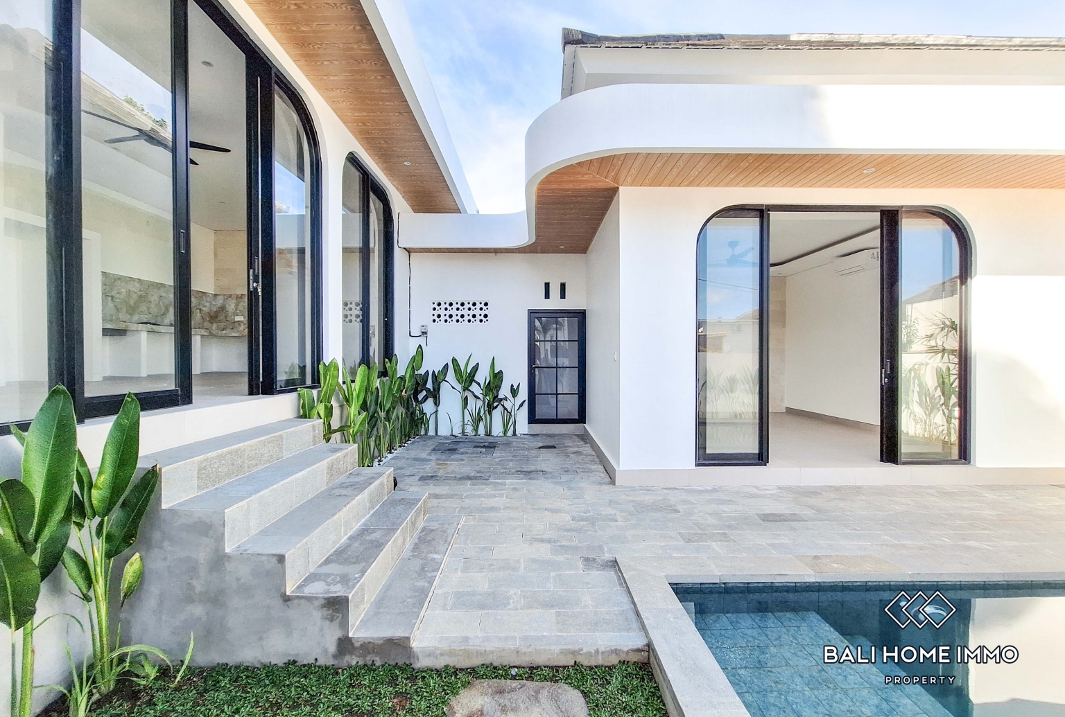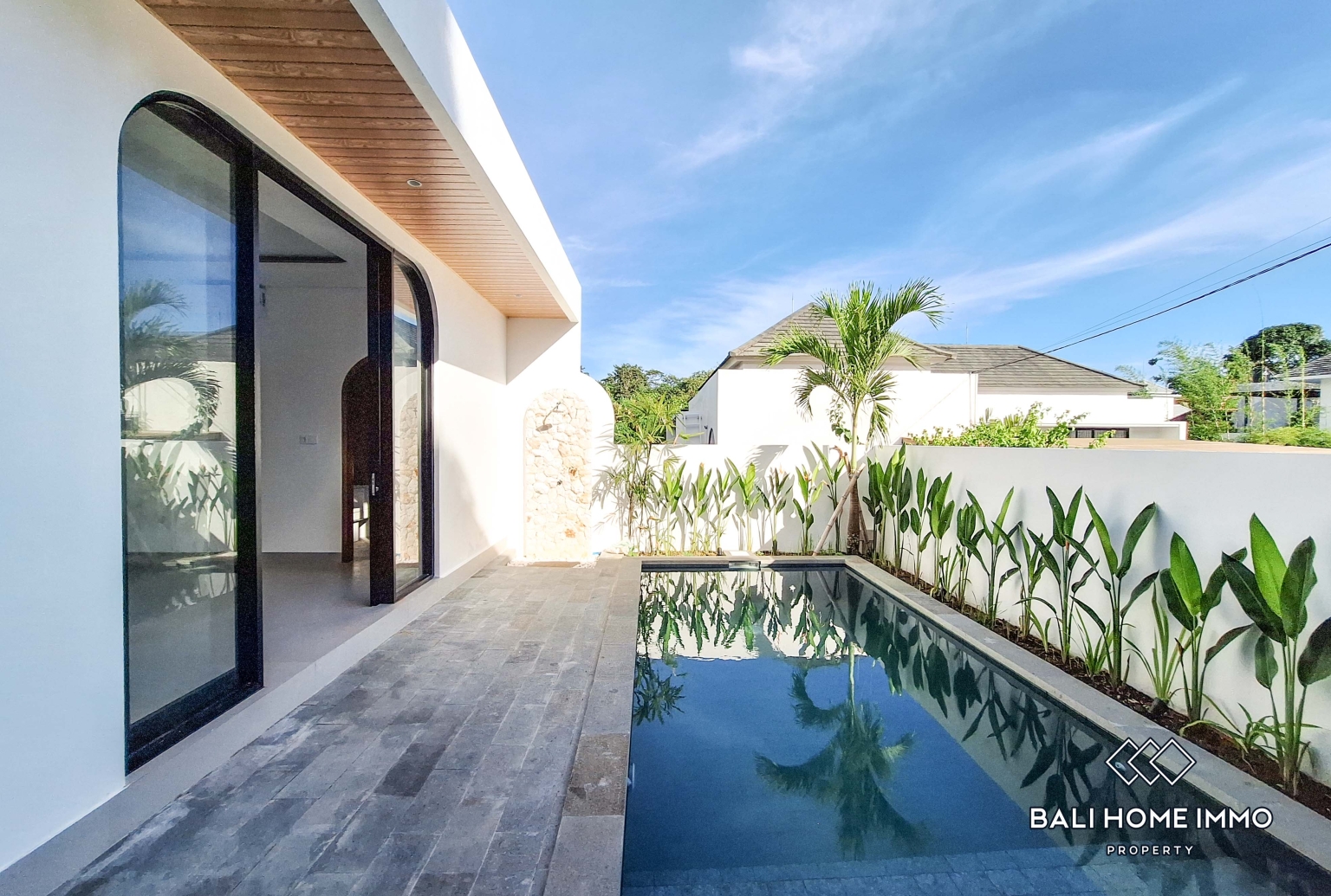 À l'extérieur, une piscine privée apporte une touche de fraîcheur et offre un espace de détente idéal pour se relaxer ou profiter du climat tropical balinais. L'espace extérieur de la villa s'intègre parfaitement à son design moderne tout en étant facile d'entretien.