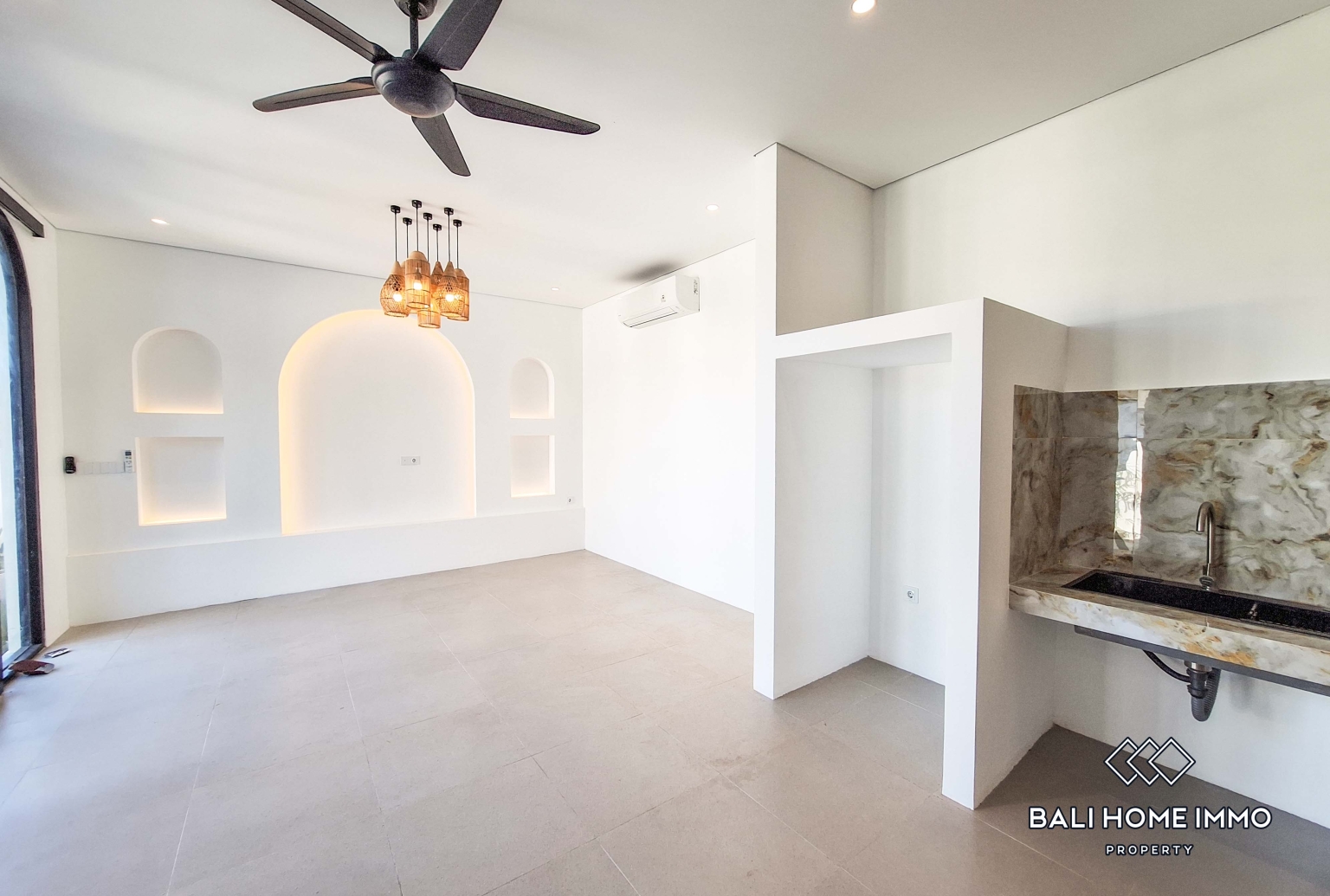 Cette villa neuve de deux chambres, non meublée, est idéale pour ceux qui recherchent une maison moderne, flexible et intime, dans un cadre paisible à proximité de l'animation de Pererenan.