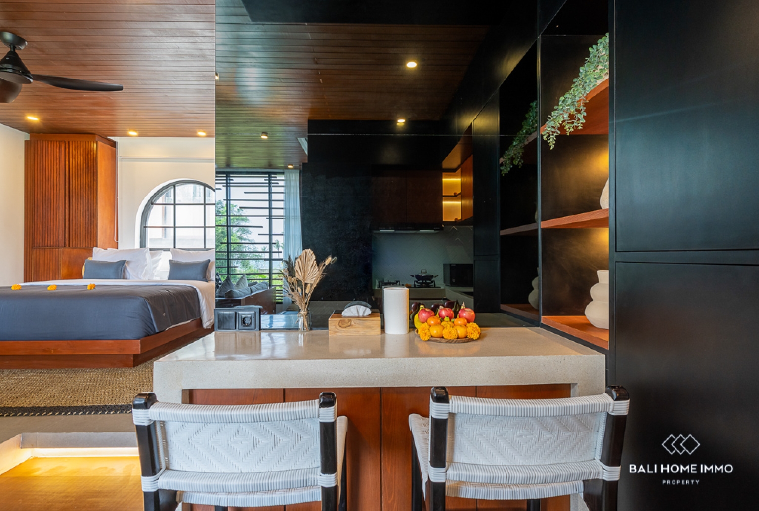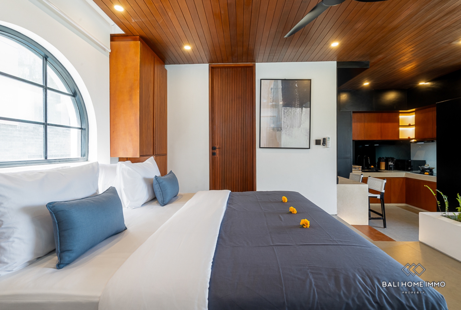 La chambre est conçue avec soin pour offrir confort et tranquillité, et est complétée par une salle de bains moderne équipée d'accessoires élégants et de détails raffinés. De grandes fenêtres laissent entrer la lumière naturelle, accentuant l'atmosphère aérée et accueillante. Le toit-terrasse privé, avec son jacuzzi, est un atout majeur de cet appartement. Vous pourrez vous détendre en profitant de la vue dégagée et de la douce brise marine. Bien que l'appartement ne dispose pas de piscine privée, le toit-terrasse offre un espace extérieur idéal pour se détendre. Situé au deuxième étage, il est parfait pour les personnes seules ou les couples recherchant un style de vie moderne et facile à entretenir en bord de mer, dans le cadre paisible de Cemagi.