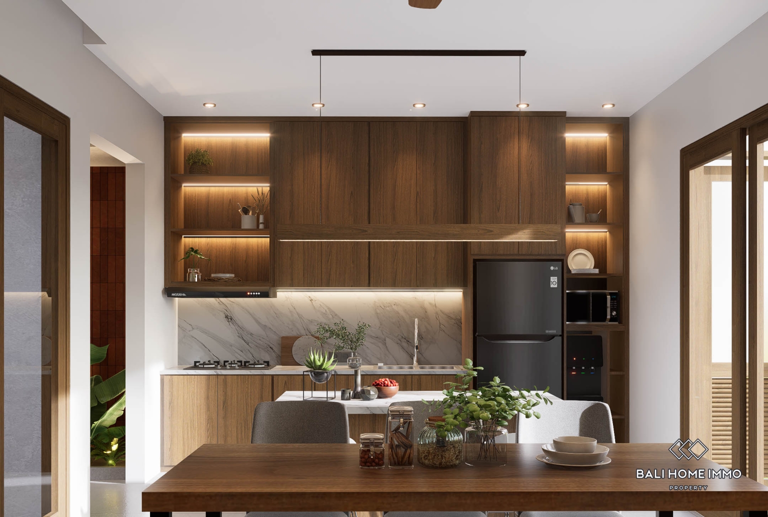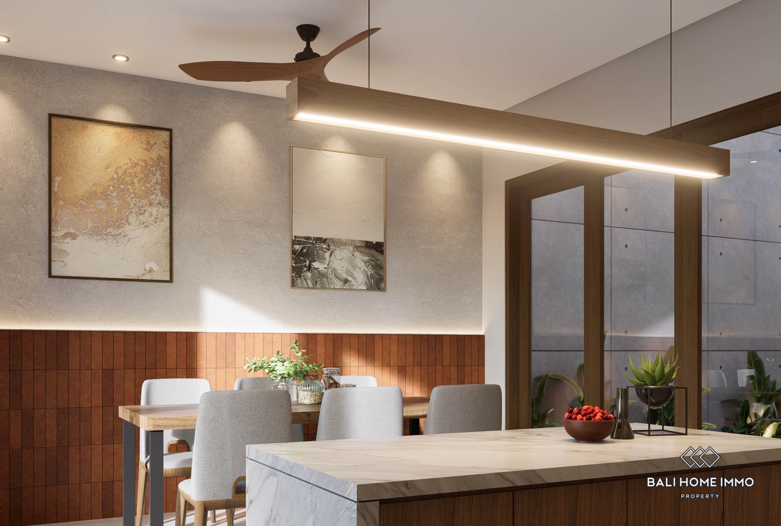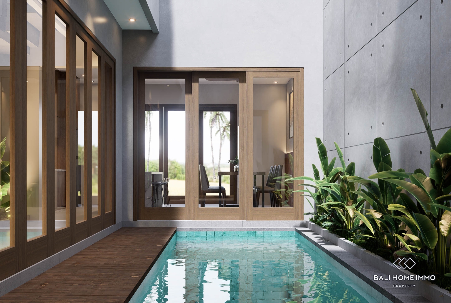 Le concept architectural met l'accent sur le confort, la fonctionnalité et un style de vie tropical. Le séjour, à la fois ouvert et intime, bénéficie d'une lumière naturelle abondante et d'une bonne ventilation, tout en préservant l'intimité et en permettant de réguler la température selon les besoins. Cet espace communique harmonieusement avec la cuisine fermée, conçue pour un usage quotidien et les longs séjours. À l'extérieur, la villa dispose d'une piscine privée de 12 m², d'une terrasse idéale pour se détendre ou recevoir, et d'un petit jardin à l'arrière qui apporte une touche de verdure sans nécessiter beaucoup d'entretien. Chaque logement comprend également une place de parking privée extérieure, un atout précieux dans un cadre résidentiel. L'agencement général est efficace et harmonieux, rendant la villa idéale aussi bien pour les propriétaires occupants que pour les voyageurs en quête d'un logement confortable et moderne à l'ambiance tropicale.
