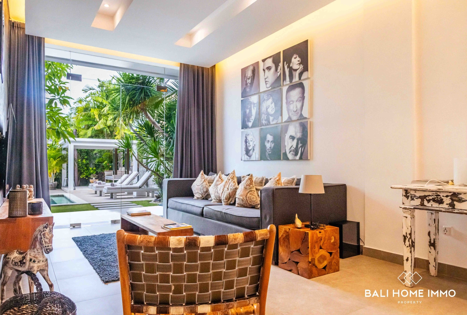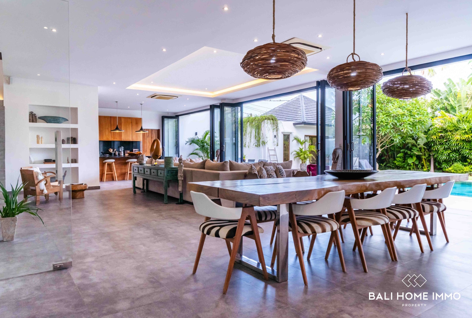 À l'extérieur, la villa comprend une grande piscine privée, un magnifique jardin tropical paysager et un gazebo propice à la détente, créant un havre de paix à quelques minutes seulement de l'animation de Berawa.