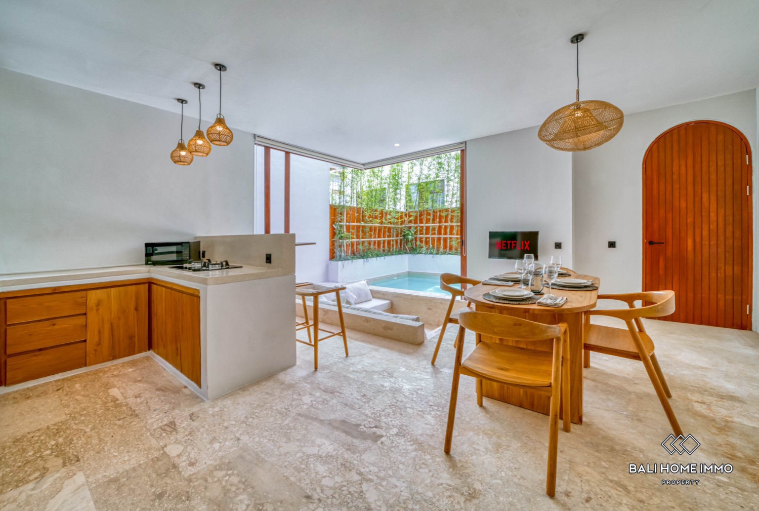 Services Included : Taxes Banjar + Securité (contribution de district), Service de Nettoyage, Entretien de la piscine, Entretien du Jardin, Ramassage des Poubelles, Charges mensuelles incl., Electricité, Internet Illimite