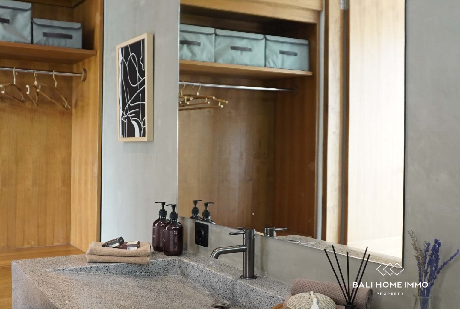 Située dans un quartier calme et paisible, la villa est à l'écart de l'agitation des rues, tout en restant proche des plages, cafés, restaurants et lieux de divertissement prisés de Canggu. Faisant partie d'un complexe résidentiel sécurisé, la propriété est vendue avec un permis de séjour (SLF Pondok Wisata) déjà établi, garantissant sa conformité légale et son aptitude à la location.