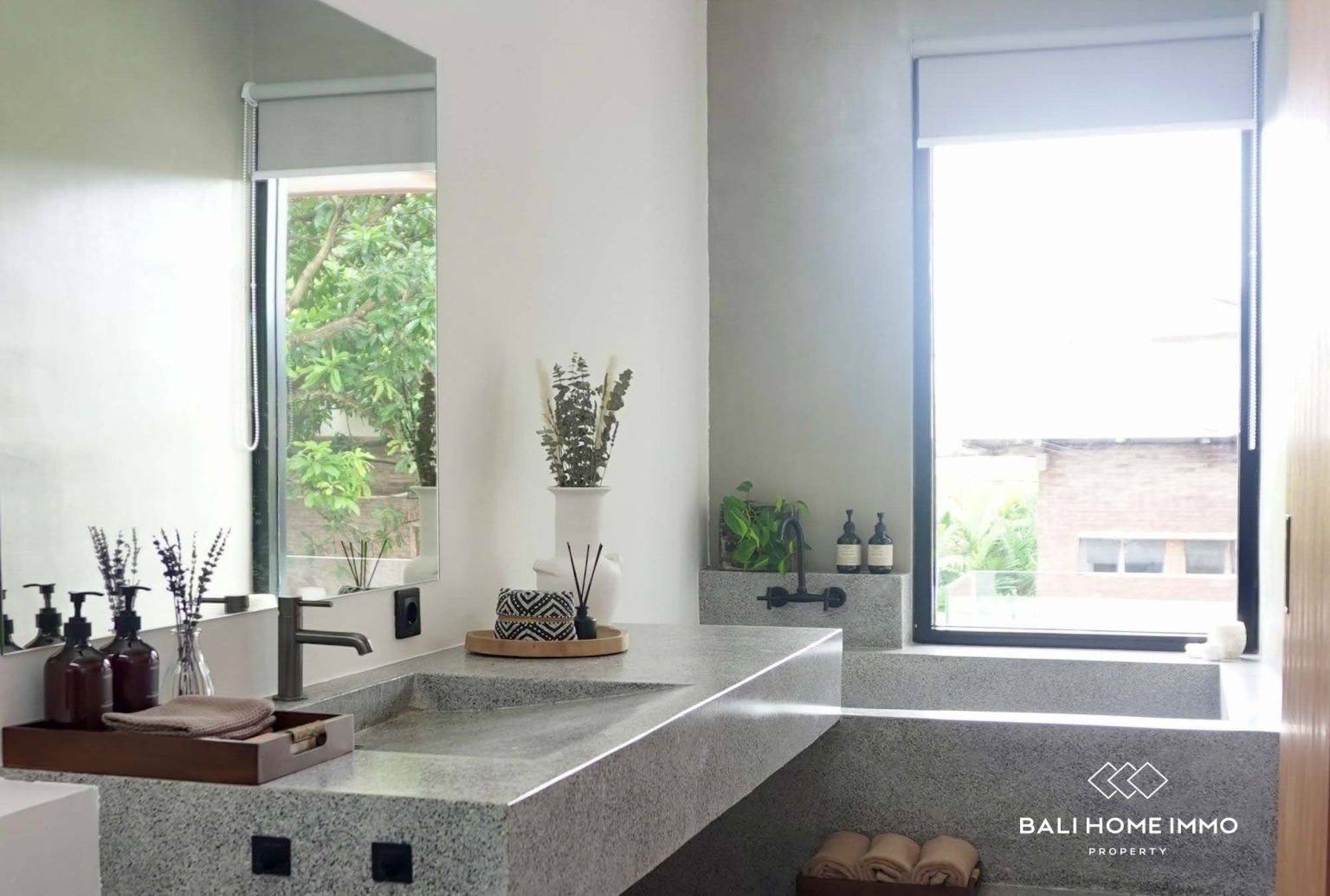 Cette magnifique villa de 2 chambres avec bureau, entièrement rénovée, est située dans un quartier résidentiel sécurisé de Canggu et proposée en bail emphytéotique de 28 ans. Conçue dans un esprit tropical moderne, la villa se distingue par ses lignes architecturales épurées, ses grandes baies vitrées et son atmosphère lumineuse et aérée, baignée de lumière naturelle.