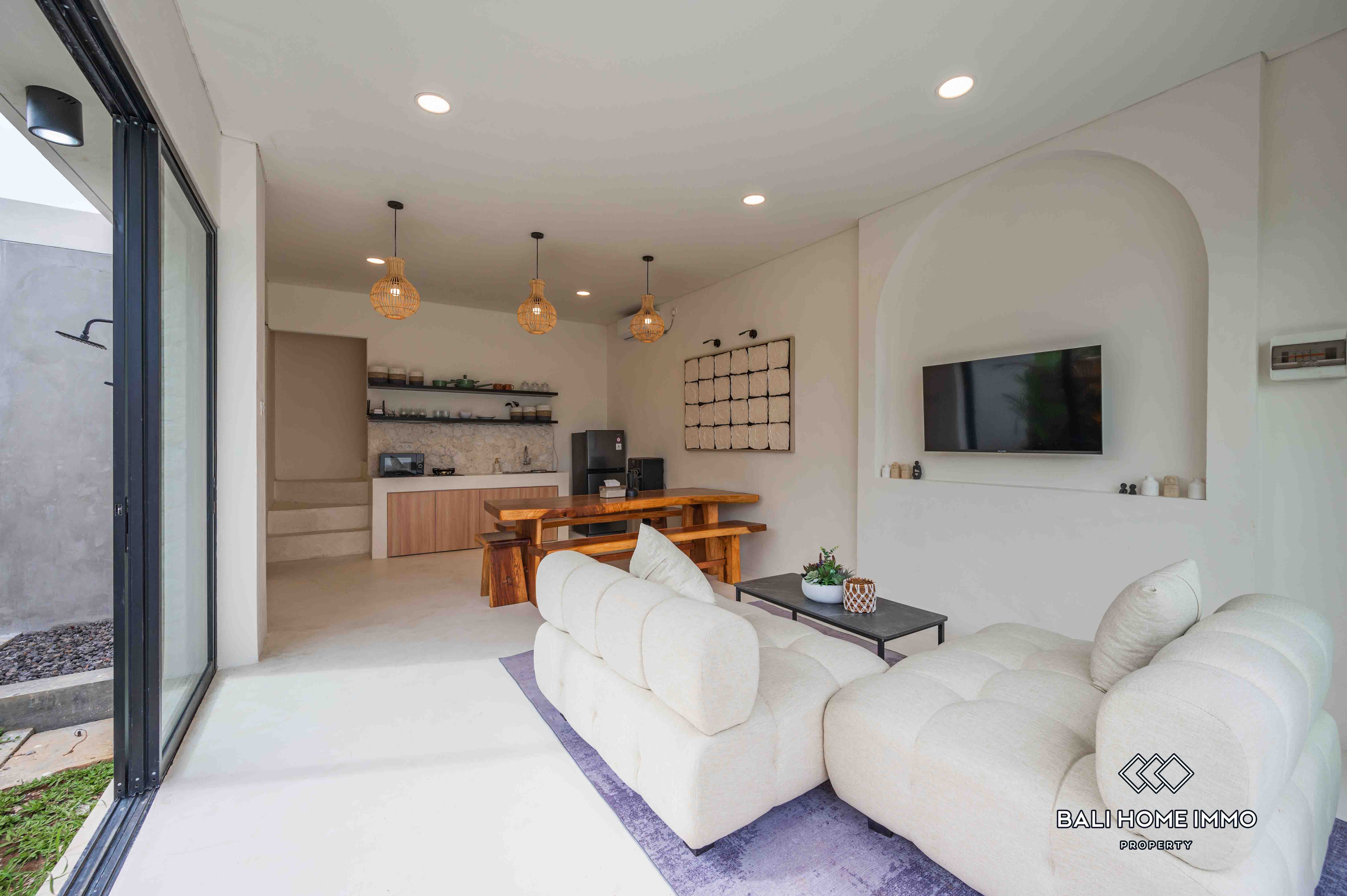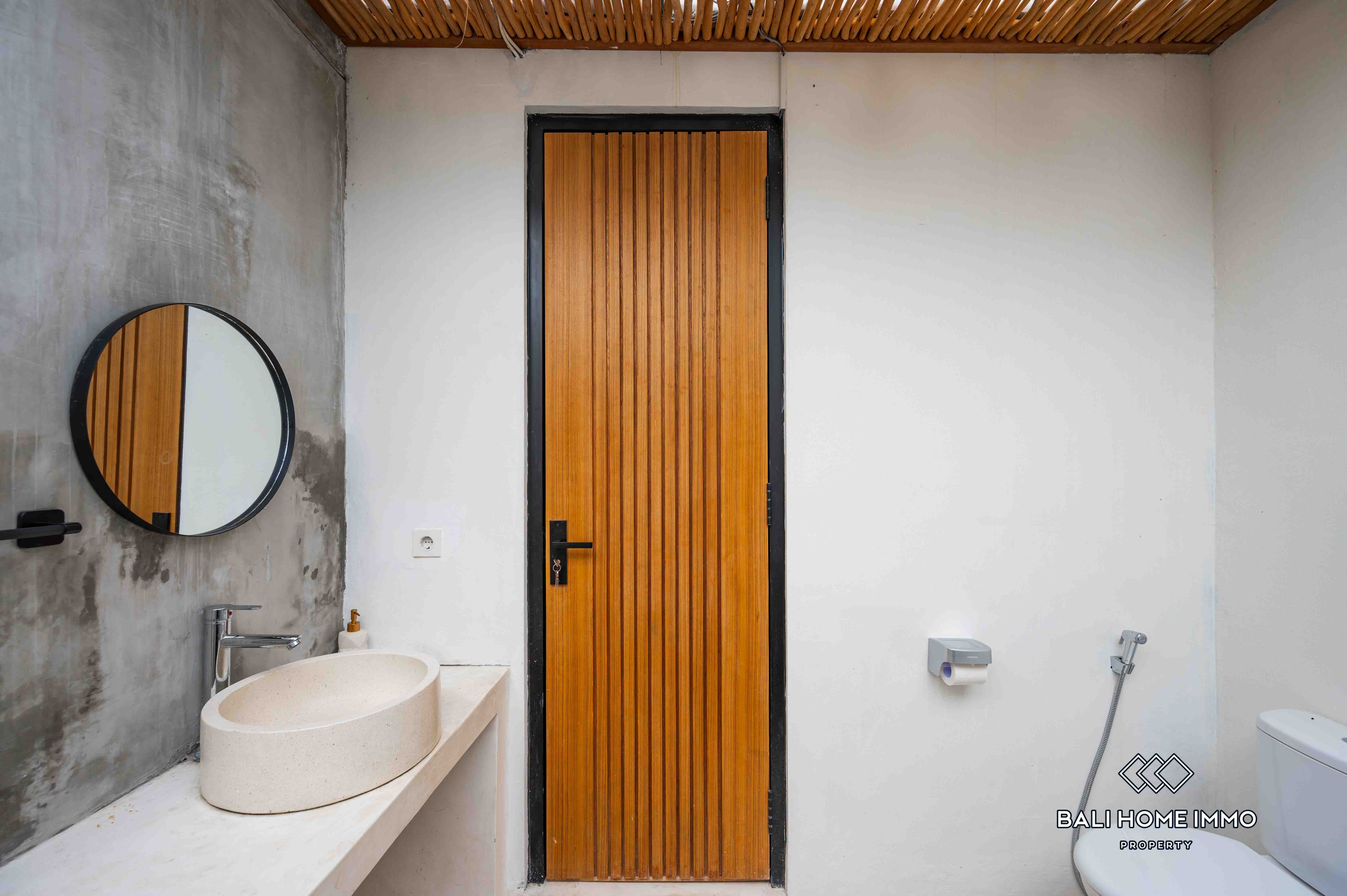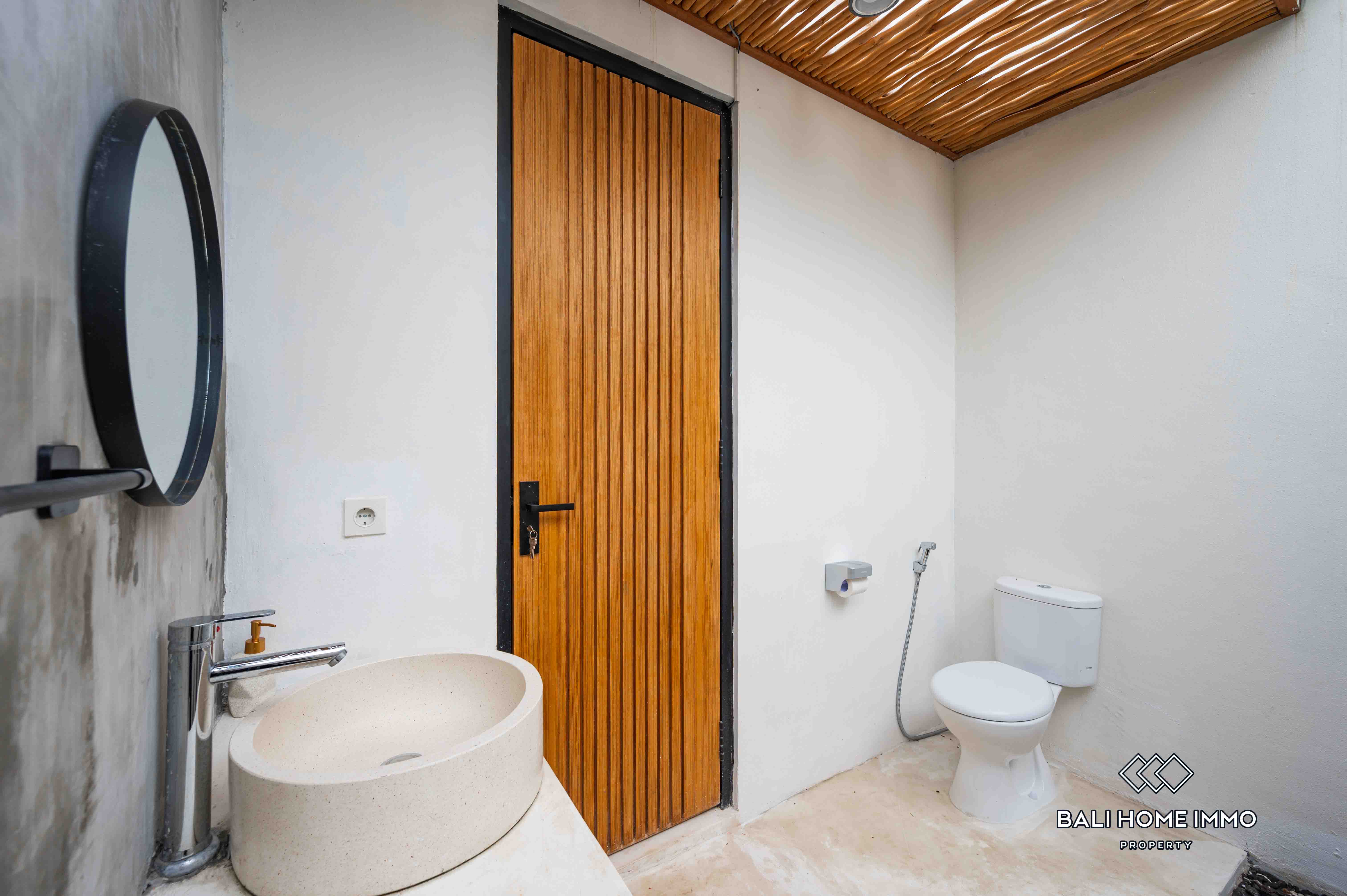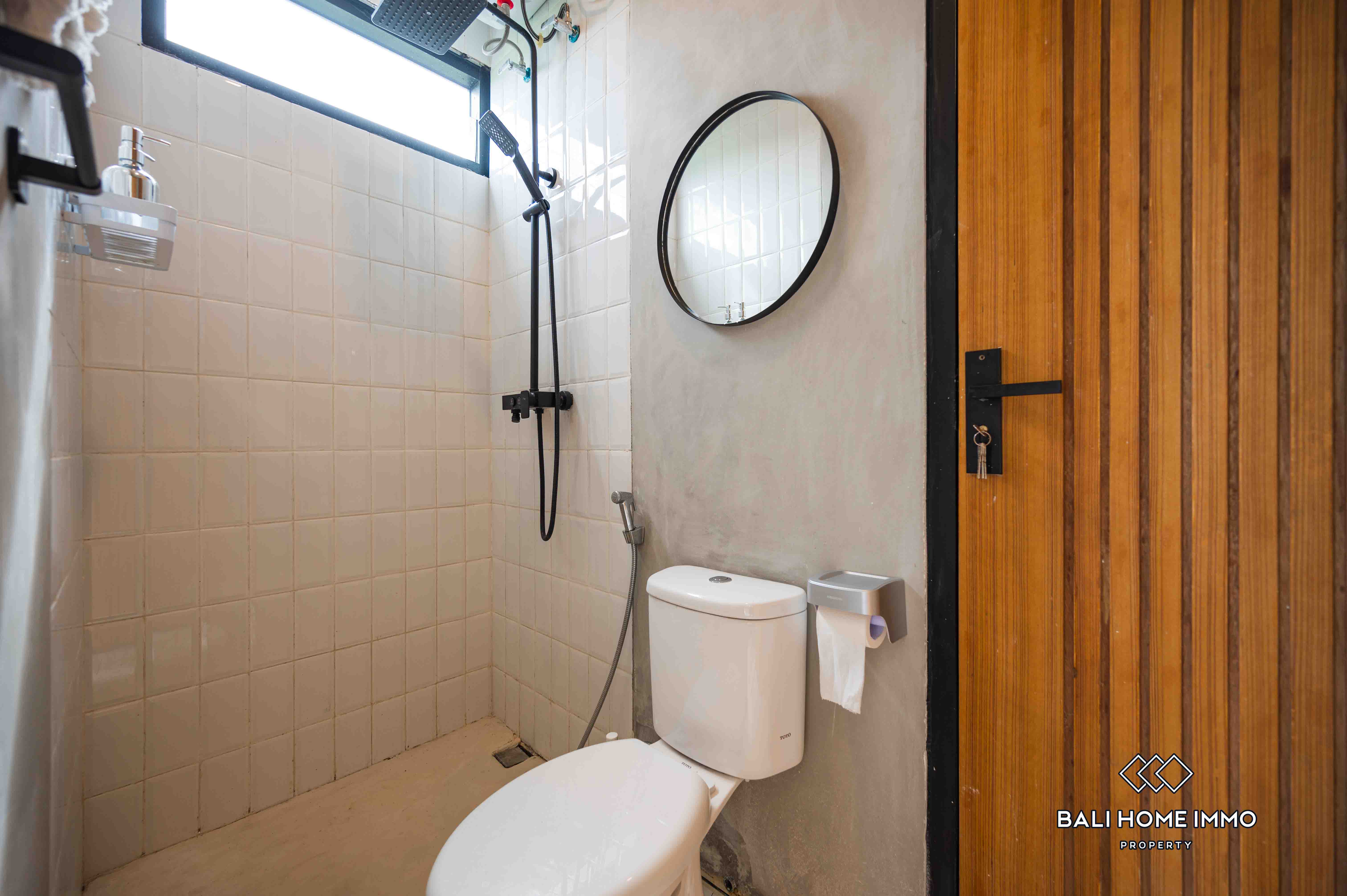 La villa dispose d'un salon fermé offrant une atmosphère chaleureuse et intime. Dotée de deux salles de bains privatives, elle assure confort et commodité à ses résidents. Entièrement meublée avec une décoration contemporaine, la villa dispose d'une belle piscine, idéale pour la détente et les loisirs. Avec un bail de 23 ans, cette villa représente une excellente opportunité d'investissement dans l'un des endroits les plus prisés de Bali.