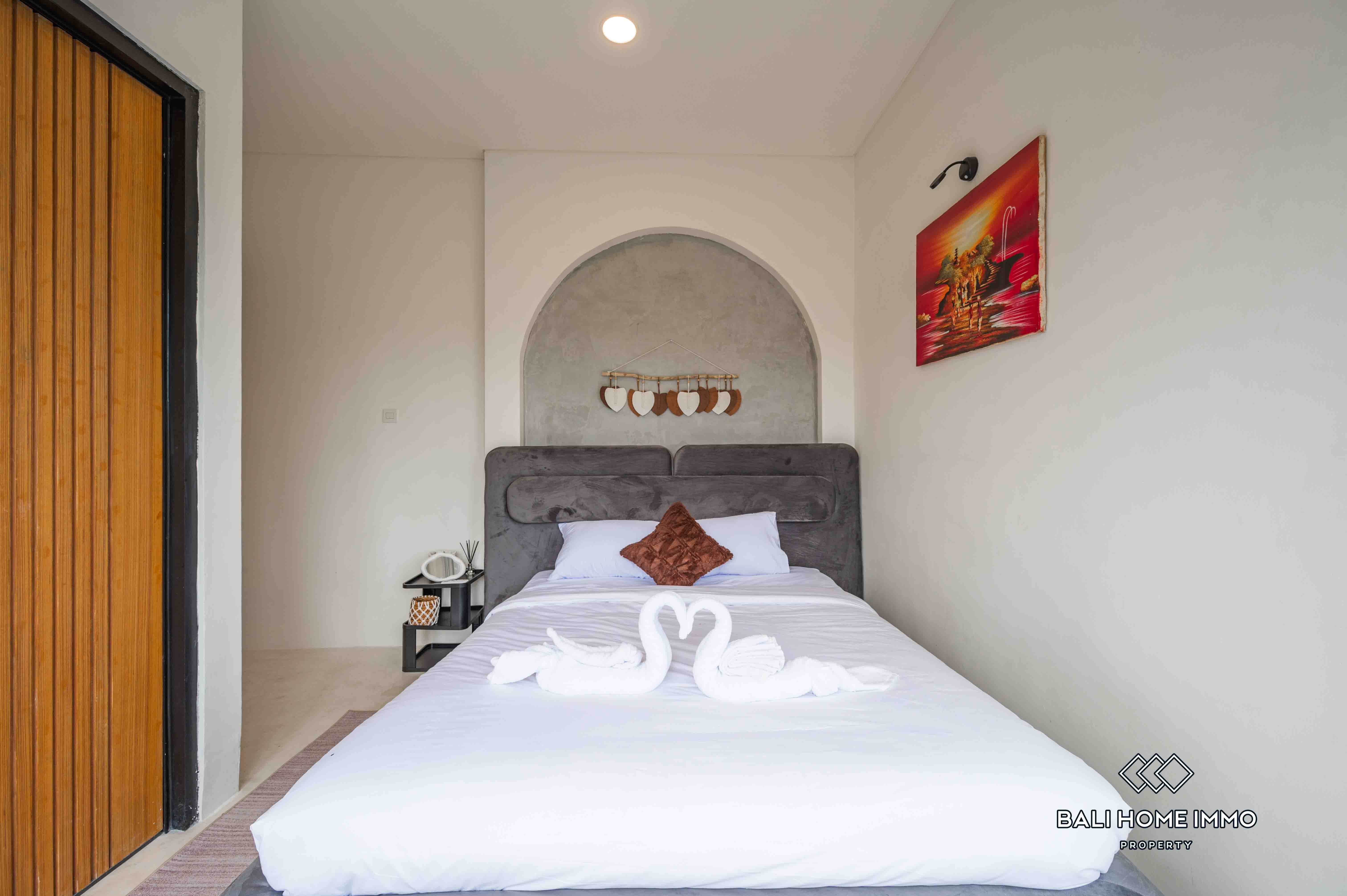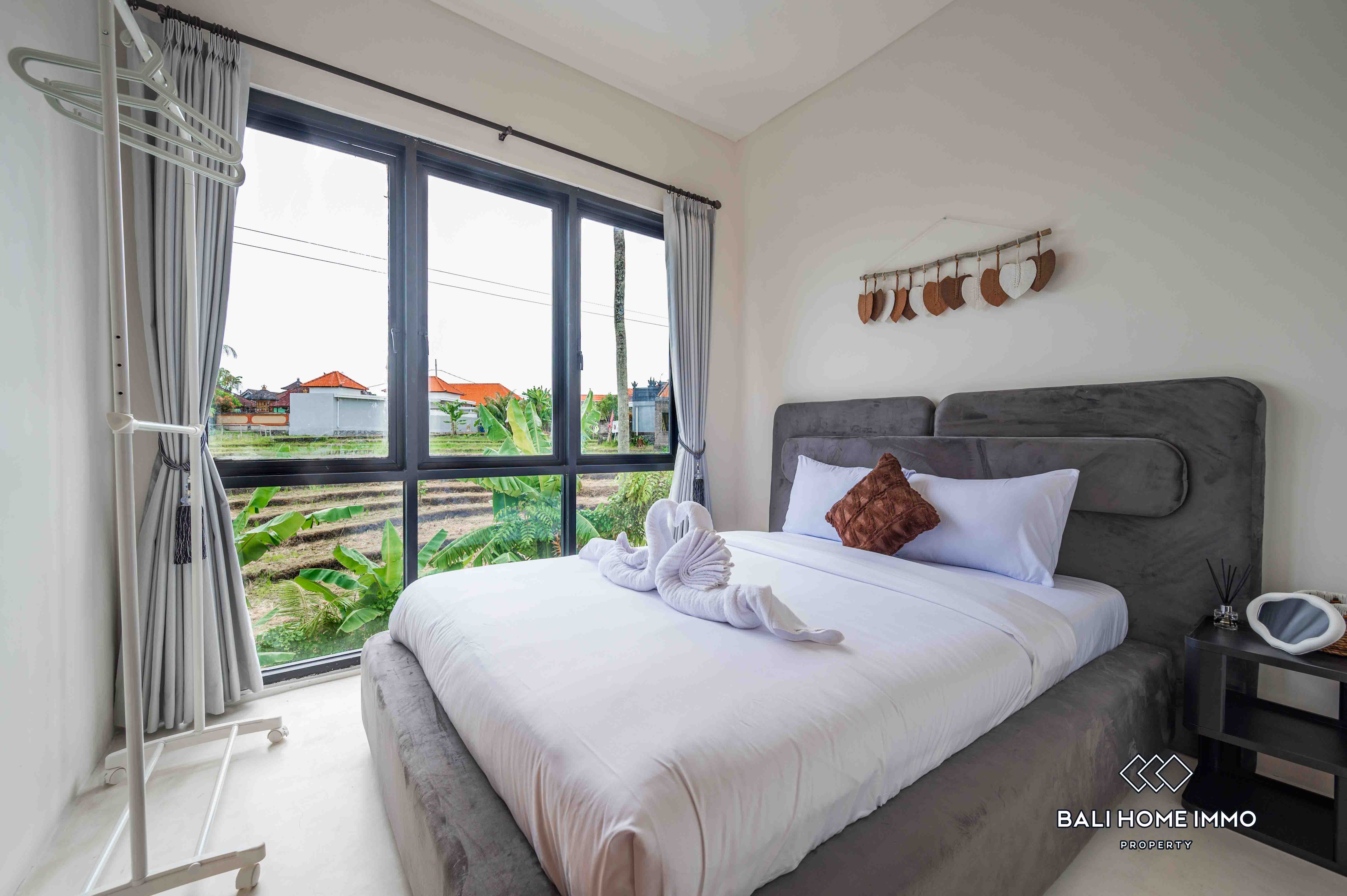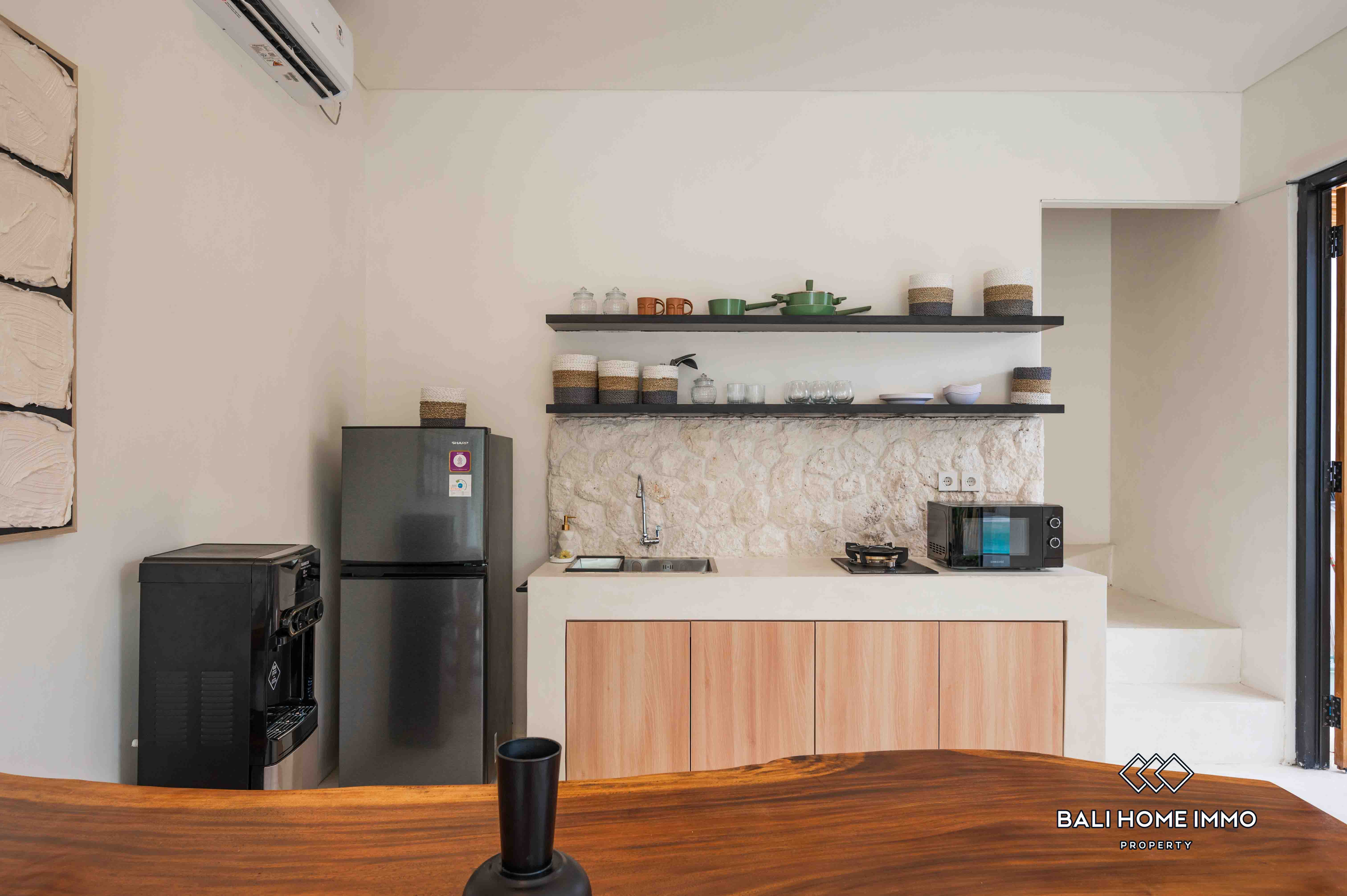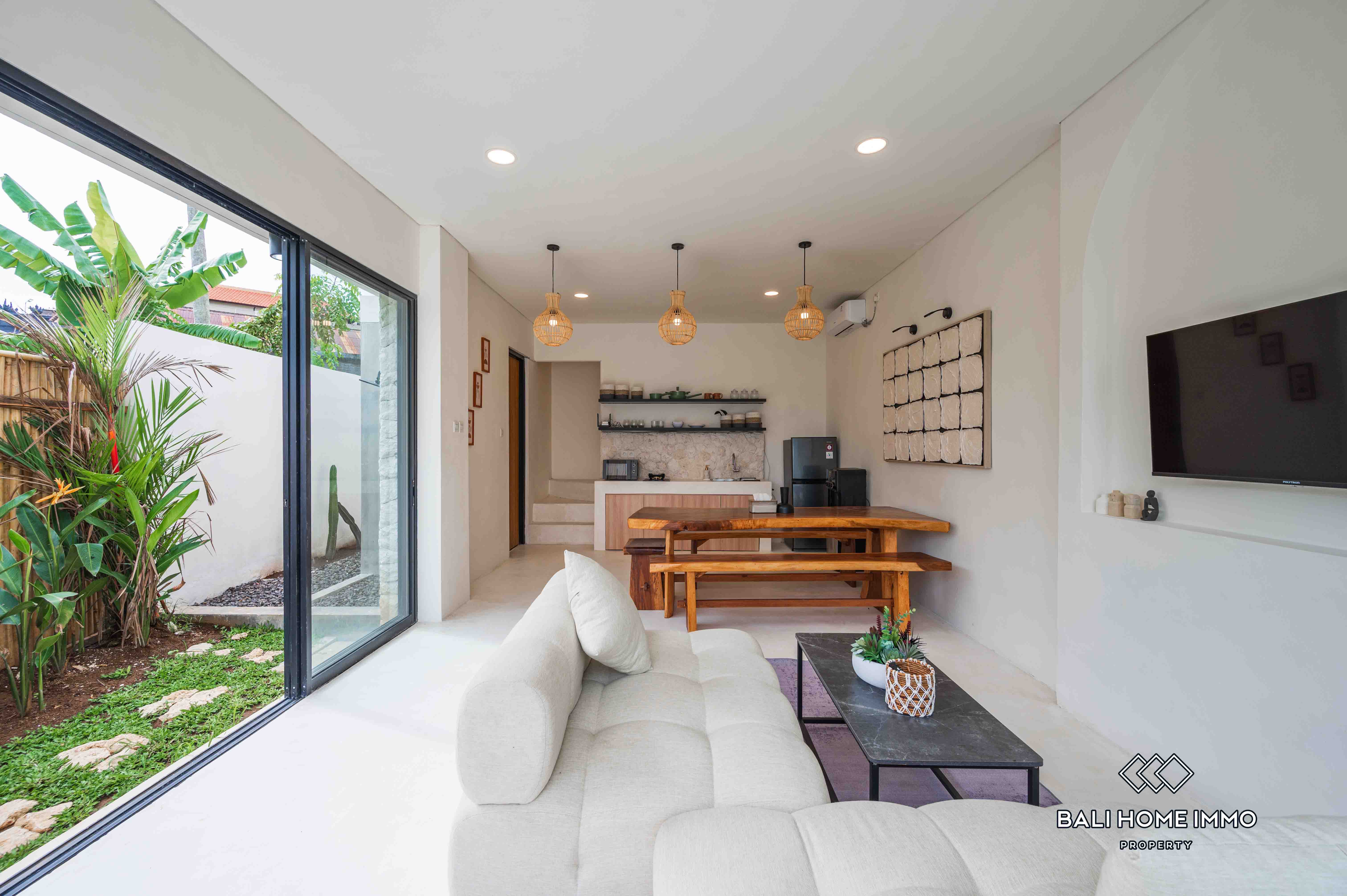 La villa dispose d'un salon fermé offrant une atmosphère chaleureuse et intime. Dotée de deux salles de bains privatives, elle assure confort et commodité à ses résidents. Entièrement meublée avec une décoration contemporaine, la villa dispose d'une belle piscine, idéale pour la détente et les loisirs. Avec un bail de 23 ans, cette villa représente une excellente opportunité d'investissement dans l'un des endroits les plus prisés de Bali.