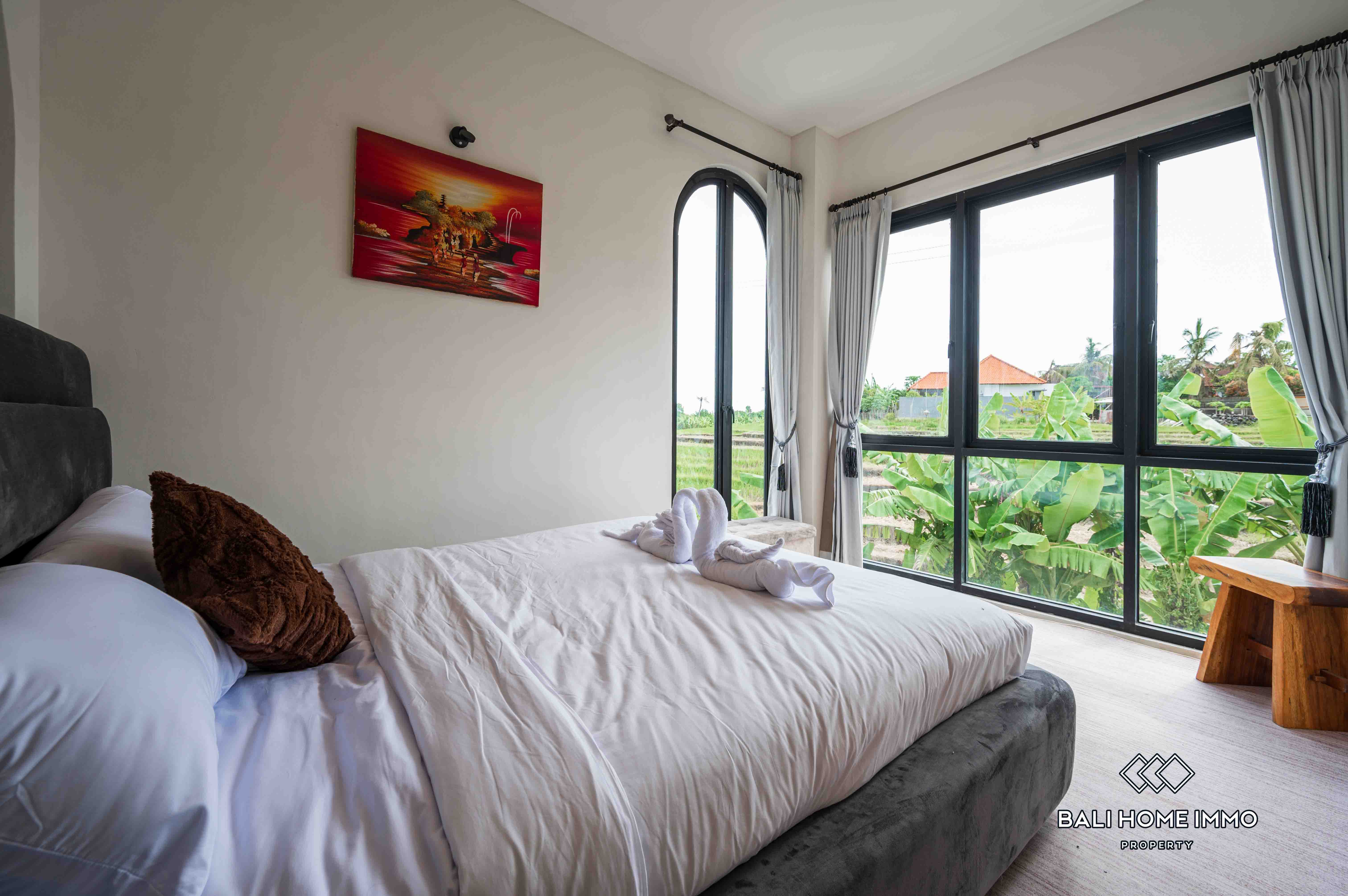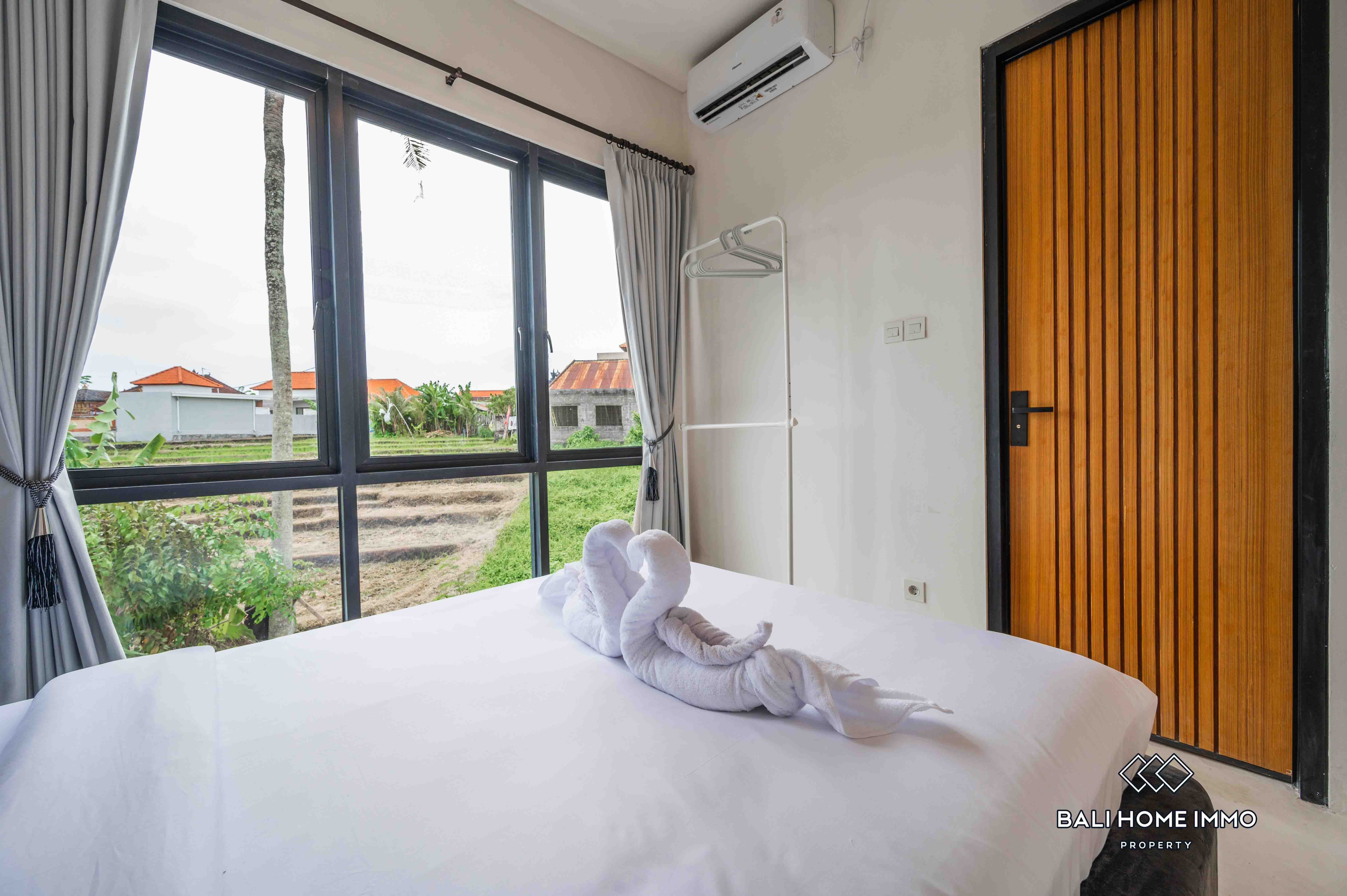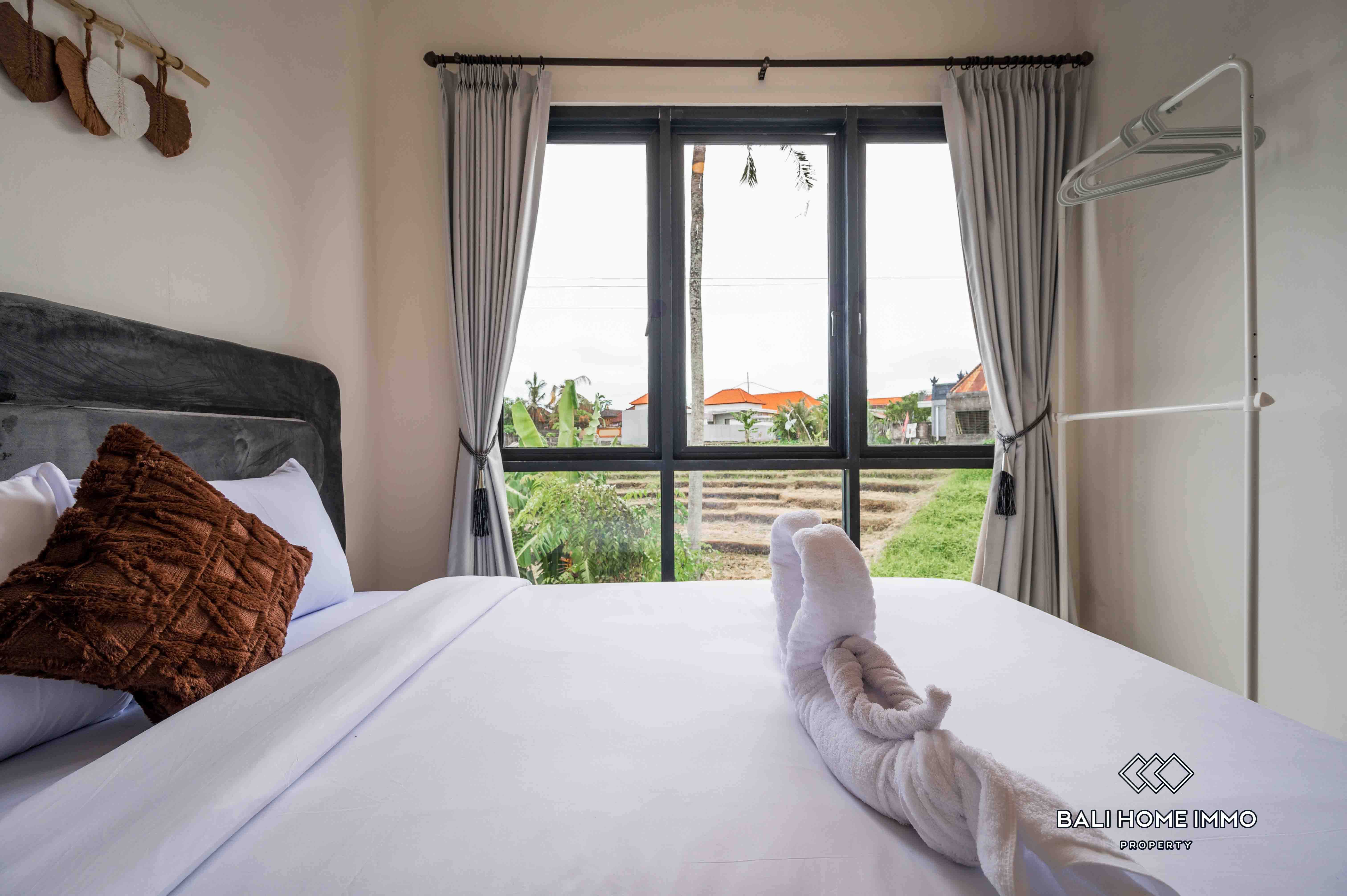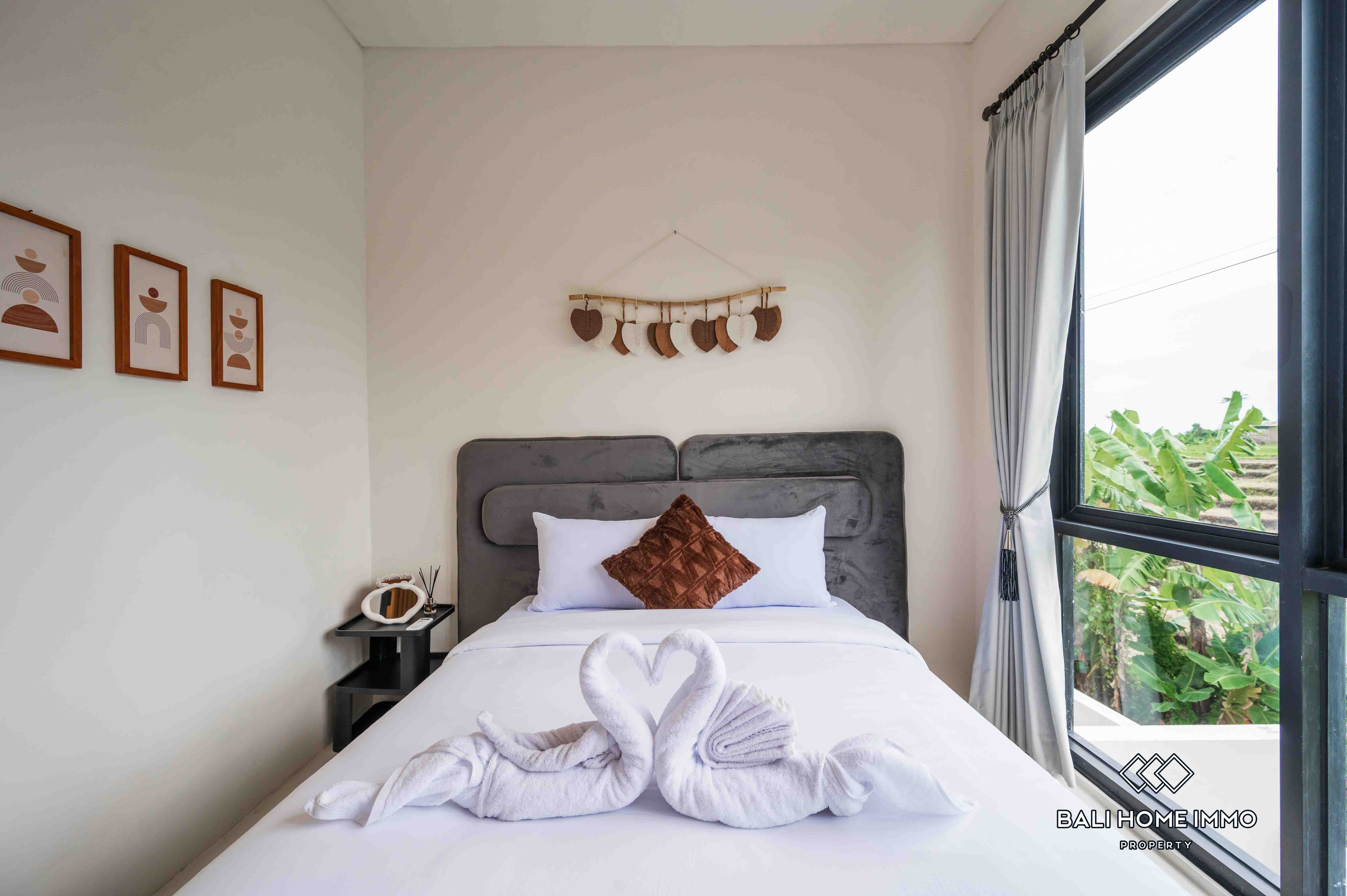 La villa dispose d'un salon fermé offrant une atmosphère chaleureuse et intime. Dotée de deux salles de bains privatives, elle assure confort et commodité à ses résidents. Entièrement meublée avec une décoration contemporaine, la villa dispose d'une belle piscine, idéale pour la détente et les loisirs. Avec un bail de 23 ans, cette villa représente une excellente opportunité d'investissement dans l'un des endroits les plus prisés de Bali.