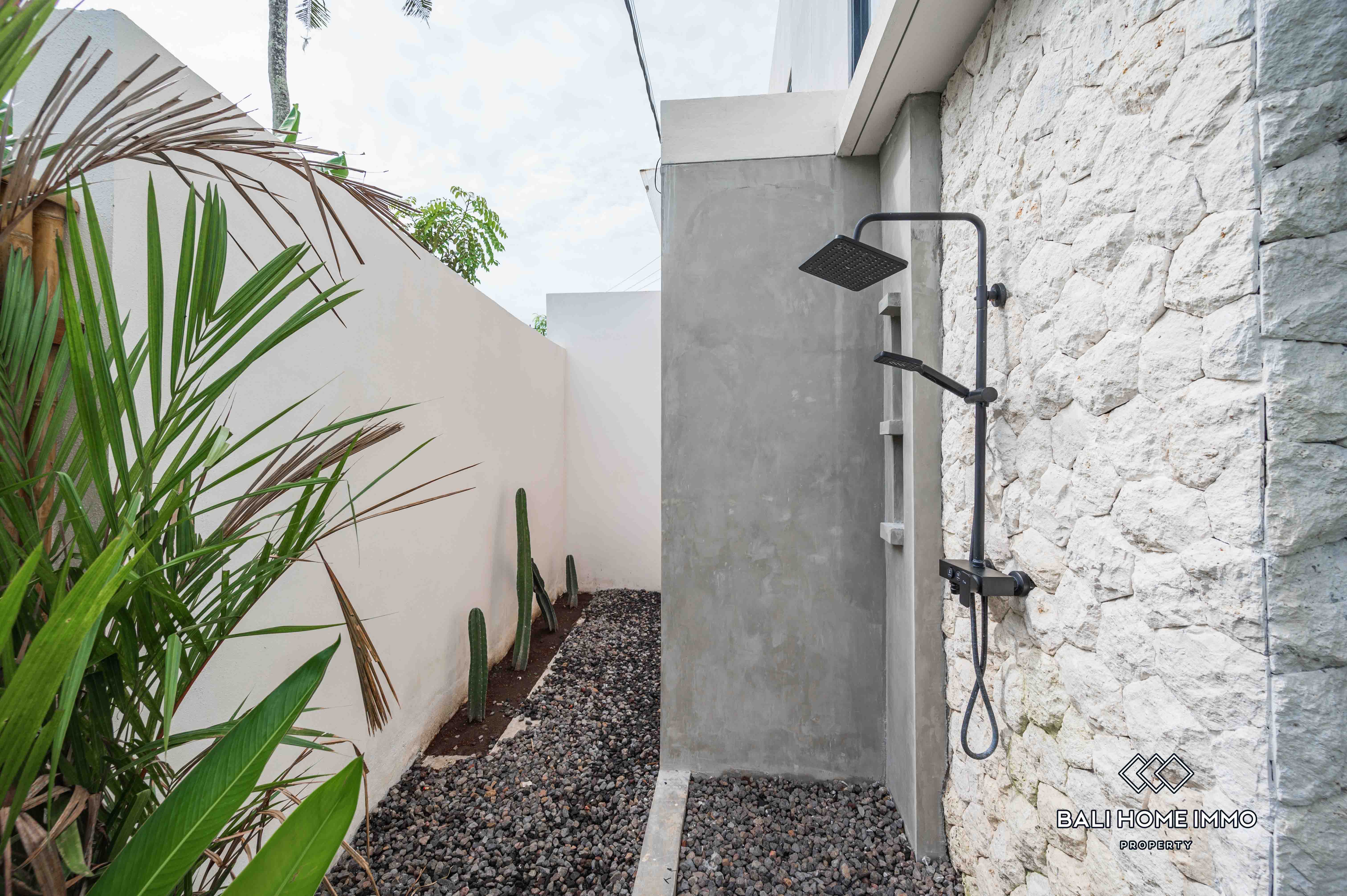 Située dans le paisible quartier résidentiel de Canggu, cette villa moderne offre un espace de vie confortable et élégant, à seulement 6 minutes en voiture d'une salle de sport. La propriété s'étend sur 1,76 ares avec un bâtiment de 222 m² construit en 2024, réparti sur deux étages.