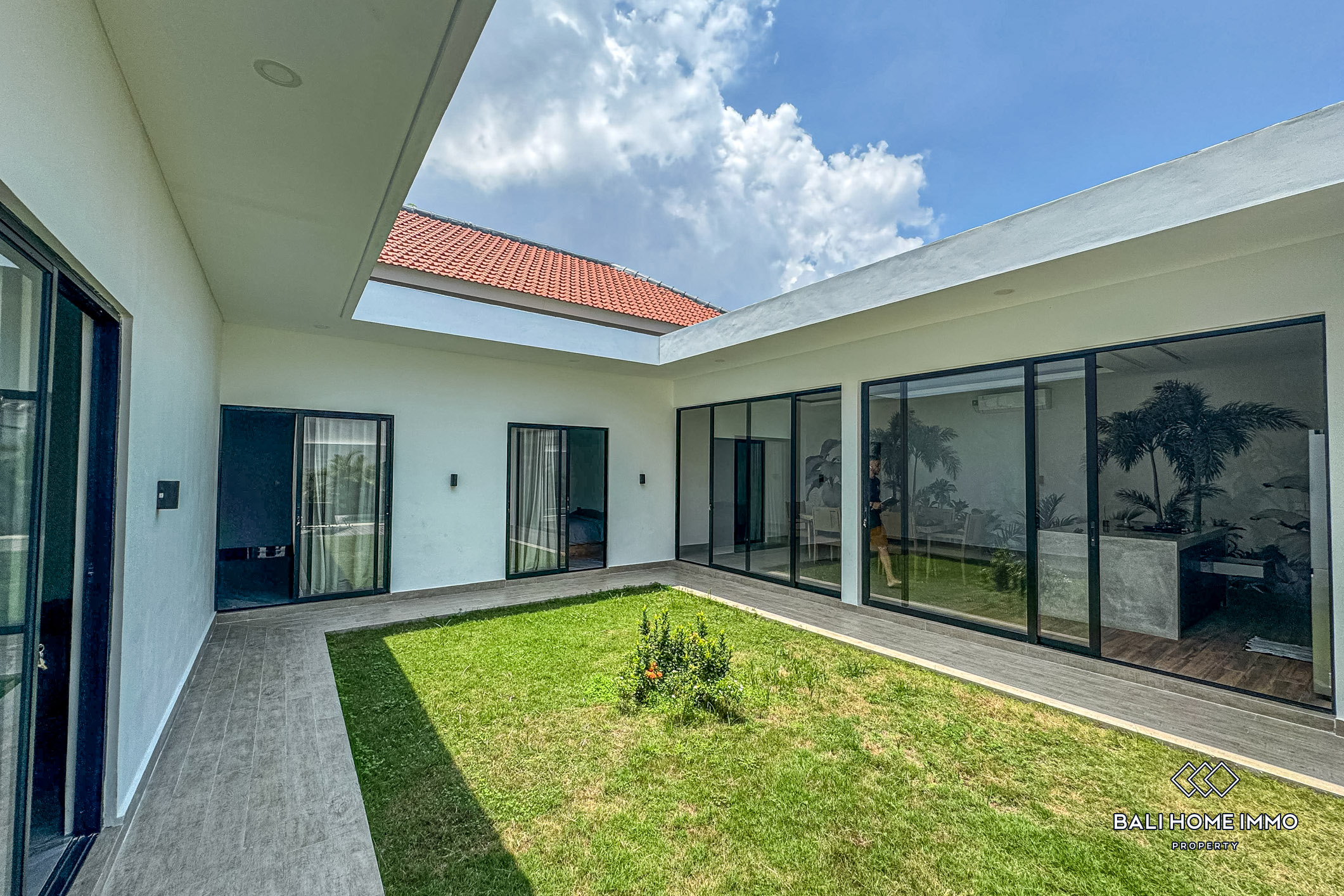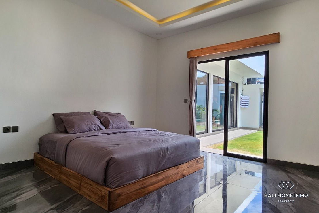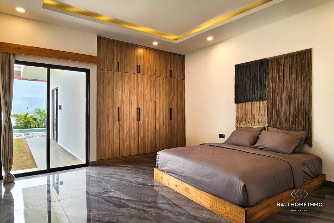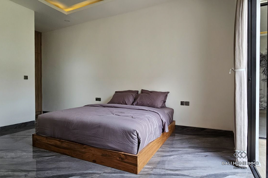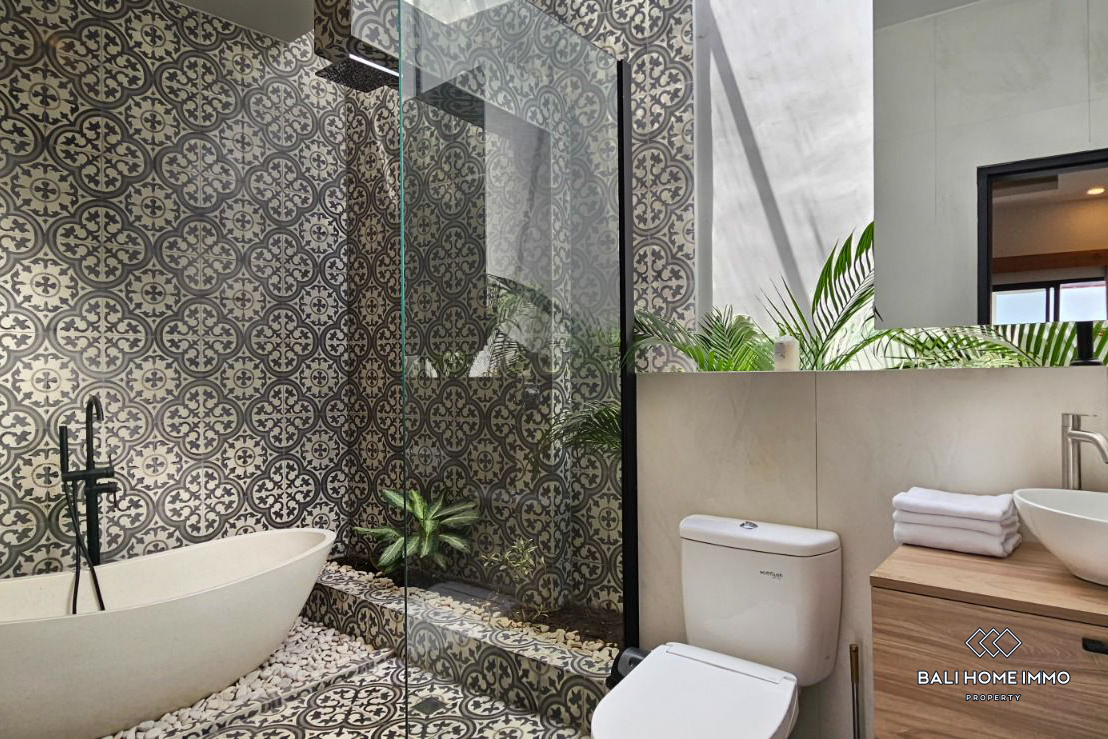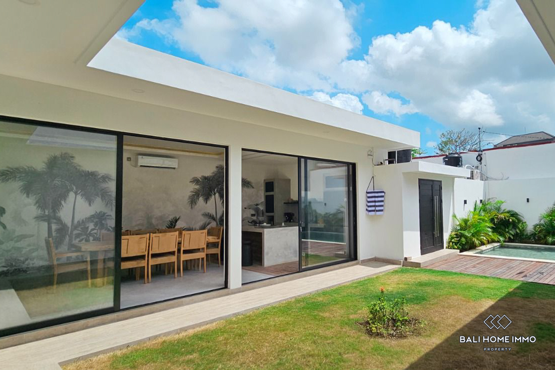 Dibangun di atas lahan seluas 330 meter persegi, vila satu lantai yang bergaya ini memiliki desain yang sederhana namun modern, dilengkapi perabotan lengkap dengan fasilitas berkualitas tinggi. Setiap kamar tidur dilengkapi dengan kamar mandi dalam, dan kamar tidur utama dilengkapi dengan bak mandi untuk menambah kemewahan. Salah satu fitur menonjolnya adalah taman luas yang jarang ditemukan dan kolam renang besar, yang memberikan pengalaman hidup luar ruangan yang luar biasa. Vila ini juga mengusung elemen tropis, dengan kamar mandi semi terbuka yang menampilkan ruang taman kecil untuk suasana yang menyegarkan. Ruang makan dan dapur tertutup ber-AC dan dilengkapi dengan peralatan premium dari Modena dan Hafele, yang memastikan fungsionalitas dan gaya.