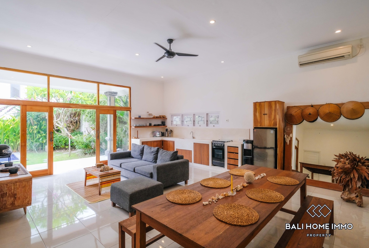 Dapur dan ruang makan berkonsep terbuka terhubung dengan mulus ke ruang tamu, sangat cocok untuk mengadakan makan malam, bekerja dari rumah, atau menikmati pagi yang santai dengan kopi sebelum pergi ke pantai. Vila ini dilengkapi perabotan lengkap, ditata dengan apik, dan siap huni, menjadikannya pilihan tanpa repot baik untuk pindah tempat tinggal maupun investasi.