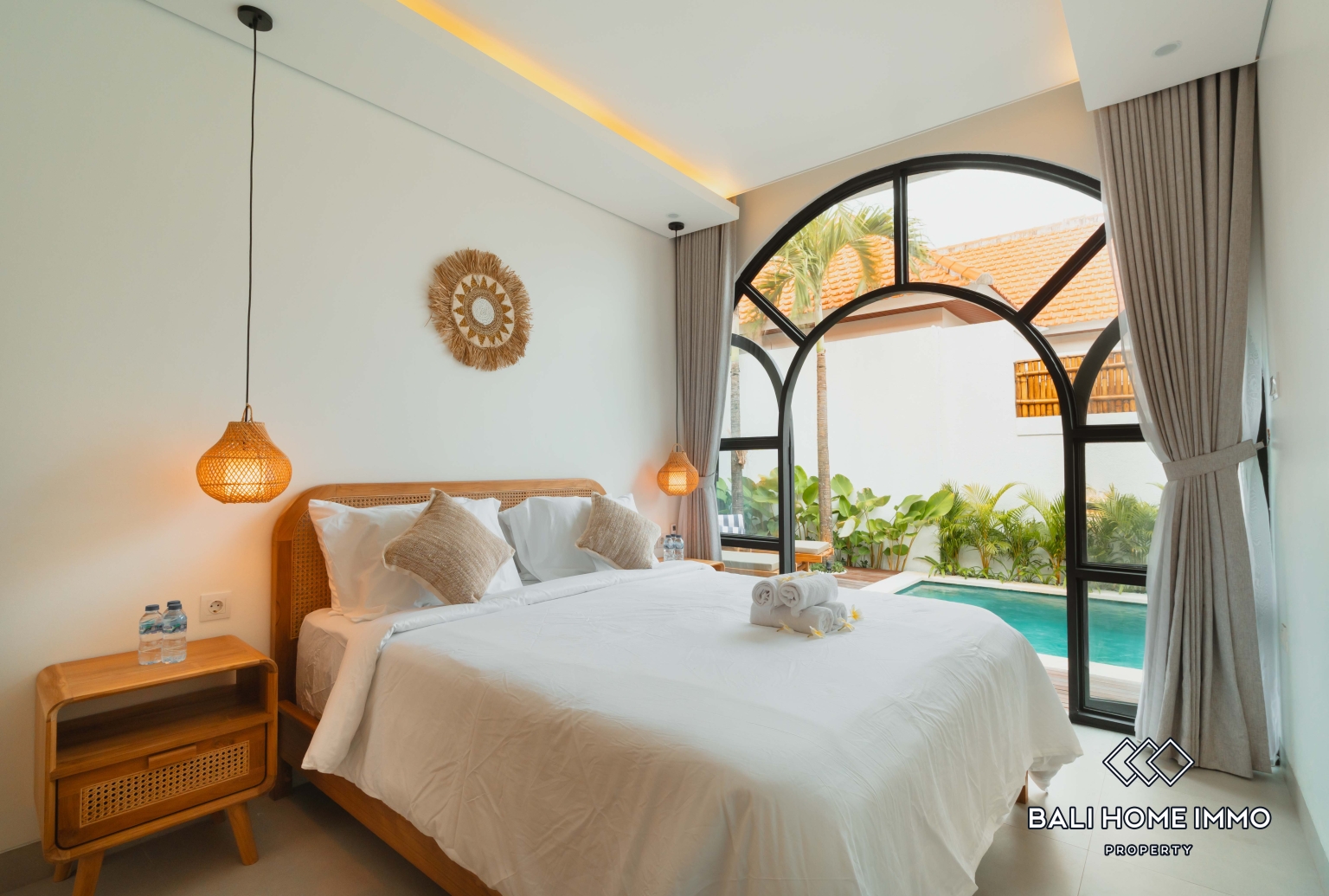 Vila ini memiliki tiga kamar tidur berukuran baik, masing-masing dilengkapi dengan kamar mandi dalam, memberikan kenyamanan dan ruang pribadi bagi setiap penghuni. Kamar tidur terang dan nyaman, menciptakan tempat peristirahatan yang tenang untuk bersantai di penghujung hari.