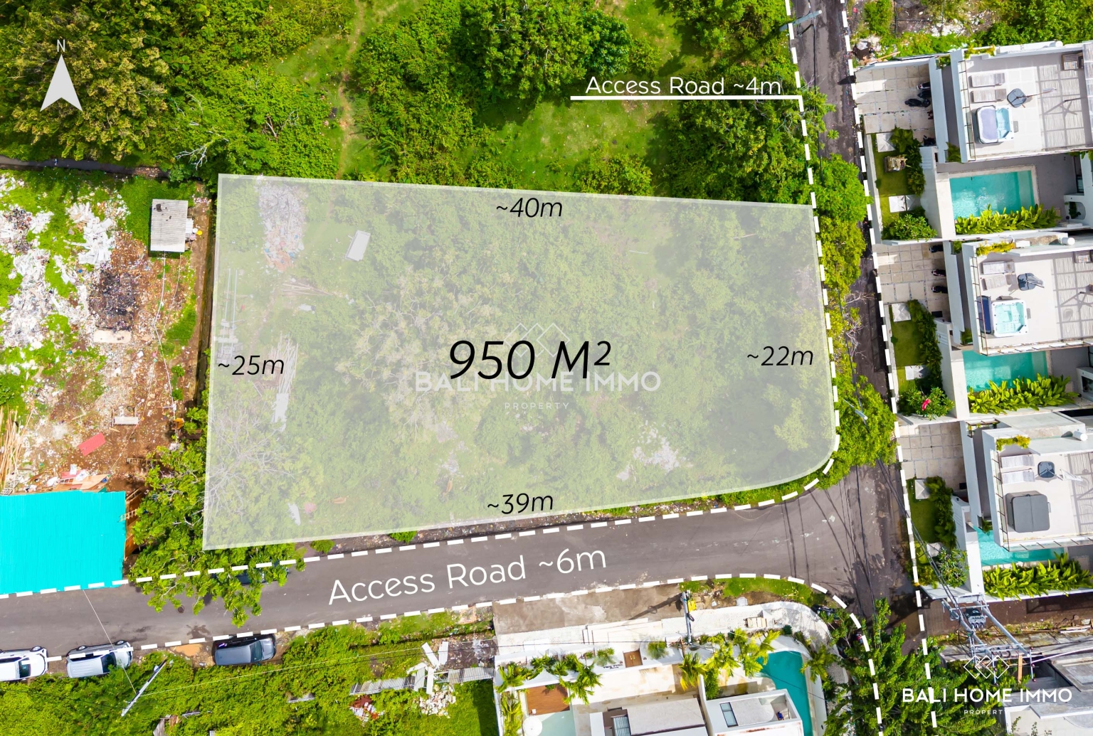 Dengan luas lahan yang cukup besar, yaitu 950 meter persegi, lahan ini menawarkan fleksibilitas yang sangat baik untuk pengembangan. Konturnya sedikit miring, memberikan potensi besar untuk mendesain properti yang memaksimalkan pemandangan laut yang indah. Konsep arsitektur yang kreatif dapat memanfaatkan sepenuhnya elevasi tersebut, memastikan pemandangan matahari terbenam yang menakjubkan dan aliran udara alami.