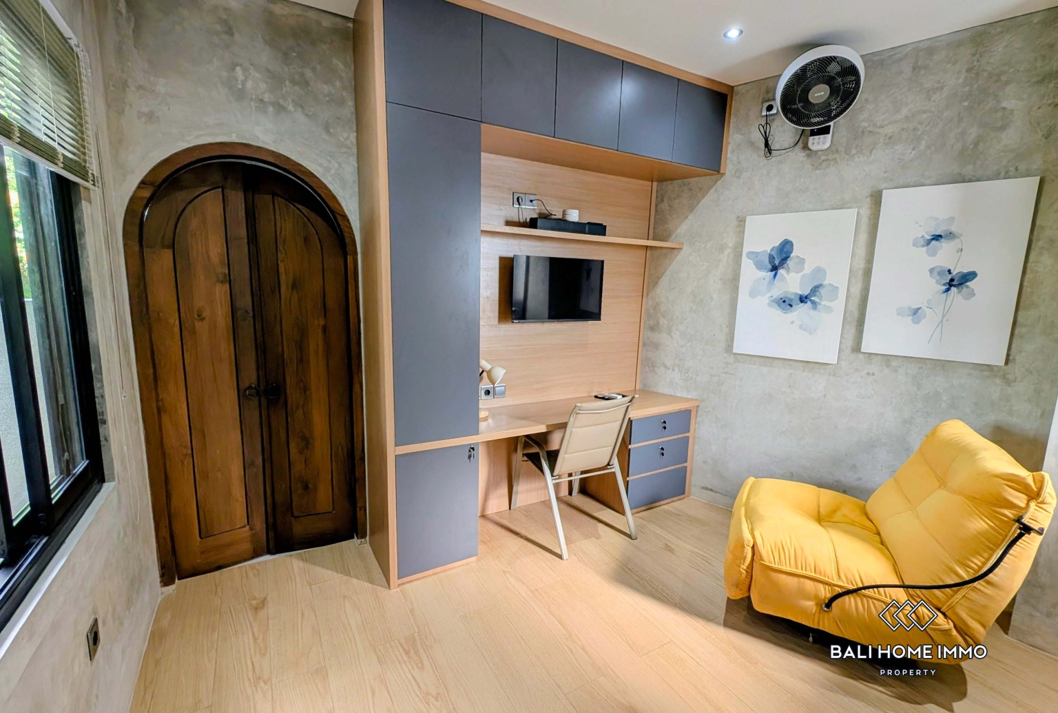 Vila ini memiliki tata letak yang terbuka dan lapang, dengan sentuhan akhir beton, jendela setinggi langit-langit, dan aksen kayu alami yang mempertegas estetika industrial-modernnya. Rumah utama memiliki dua kamar tidur dengan kamar mandi dalam, ruang tamu tertutup, dapur basah dan kering, serta ruang kerja/kantor yang berdampingan dengan kamar tidur dan balkonโideal untuk keluarga dan mereka yang gemar menjamu tamu.