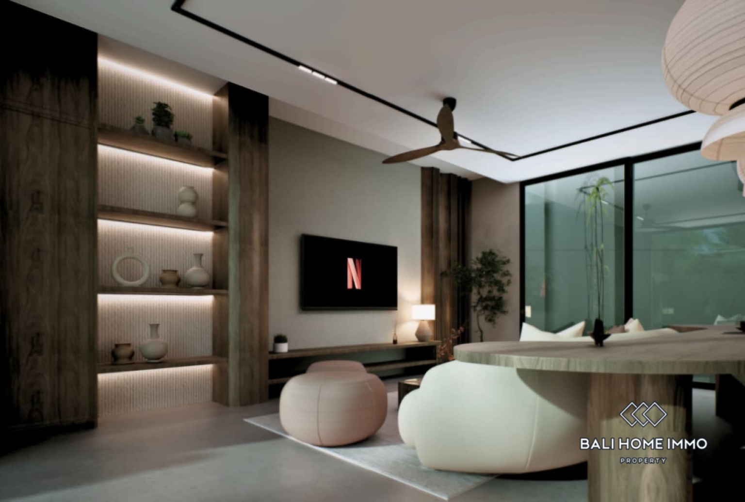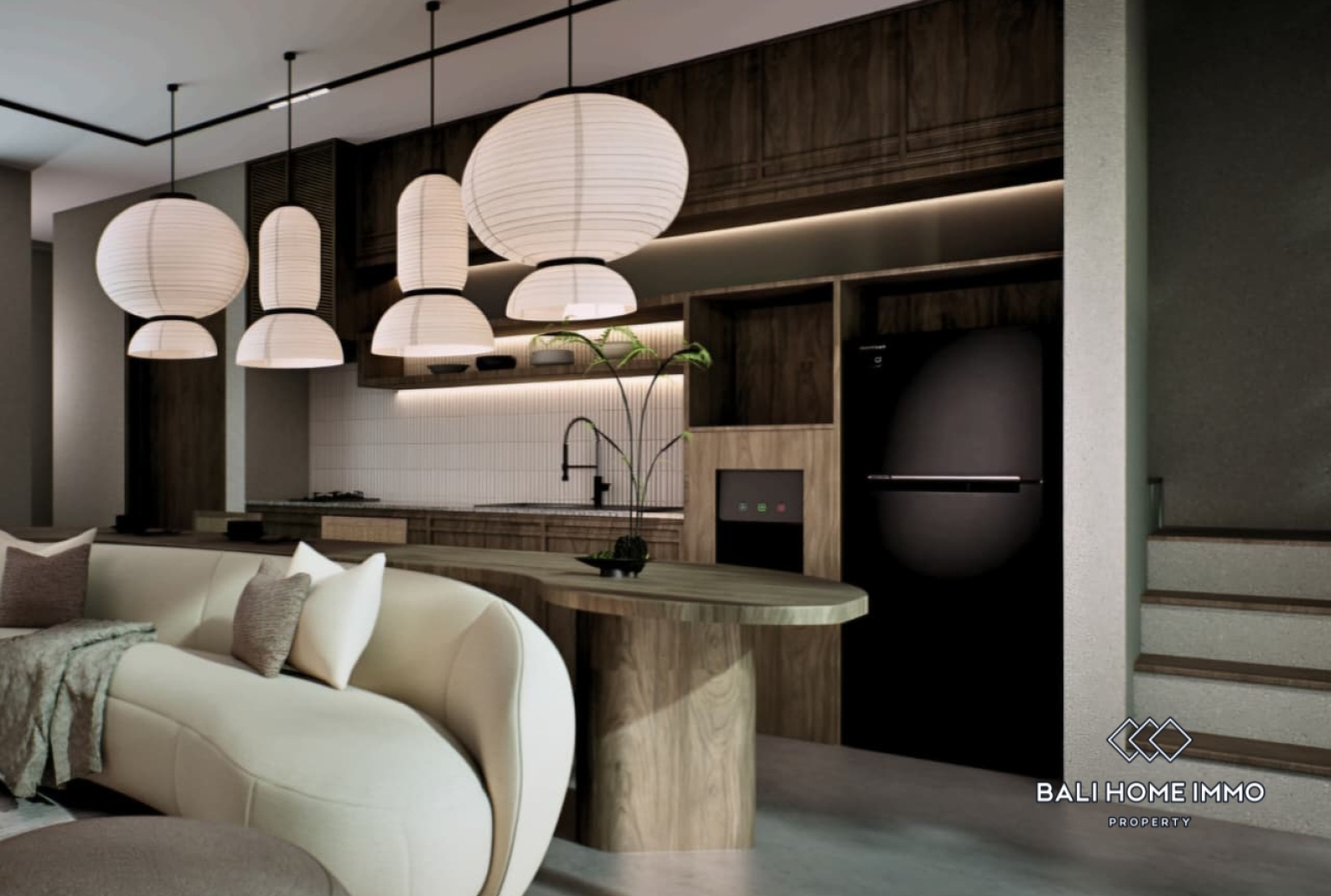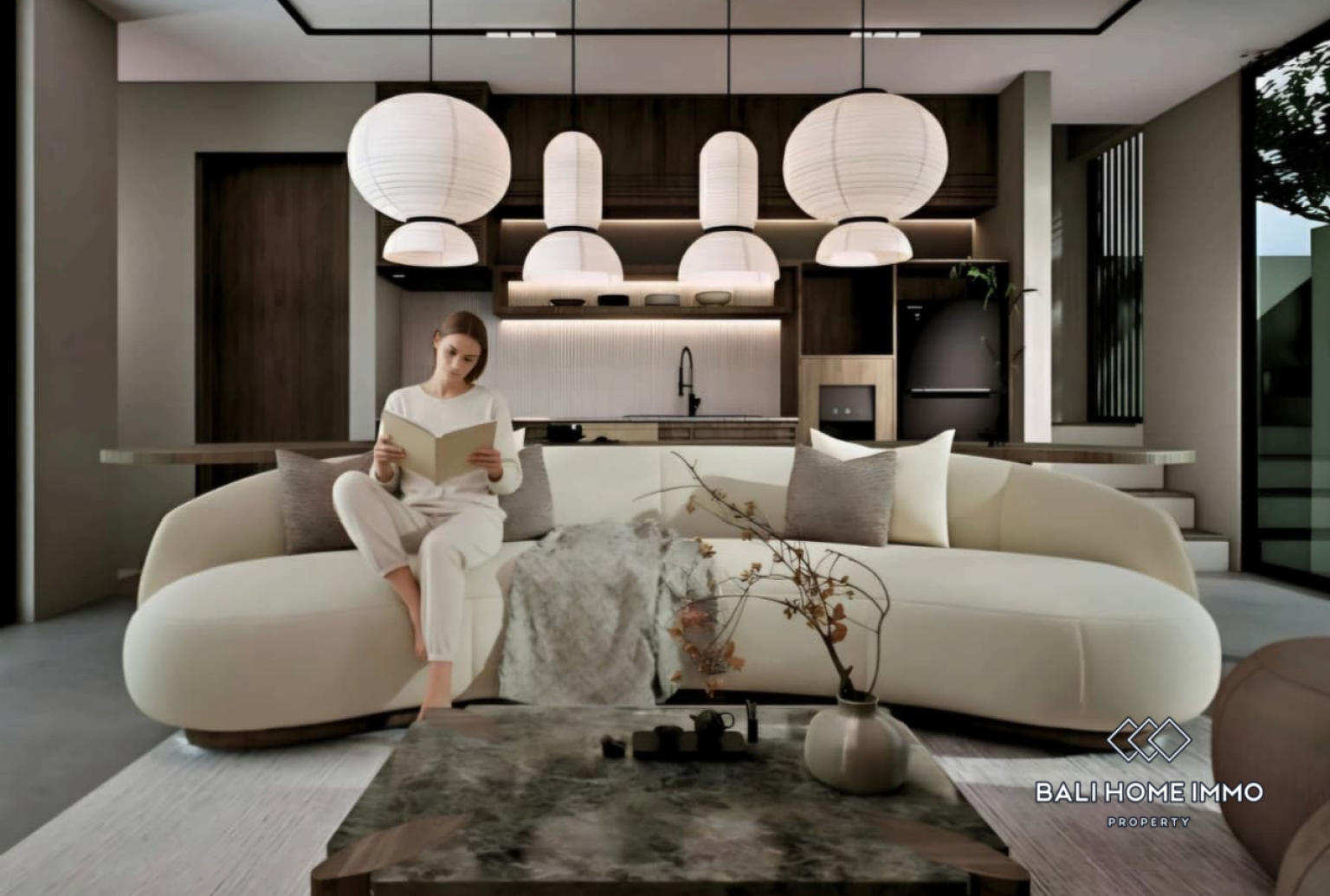 Vila ini memiliki kamar tidur yang nyaman, dilengkapi dengan ruang mezzanine serbaguna yang dapat berfungsi sebagai kamar tidur kedua, ruang kerja di rumah, atau area lounge kreatif. Interiornya mengusung suasana tropis yang hangat, memadukan tekstur alami dan warna-warna lembut untuk menciptakan suasana santai namun elegan. Bukaan besar mengundang cahaya alami dan aliran udara ke seluruh area ruang tamu, sementara tata letak terbuka terhubung dengan mulus ke bagian luar.