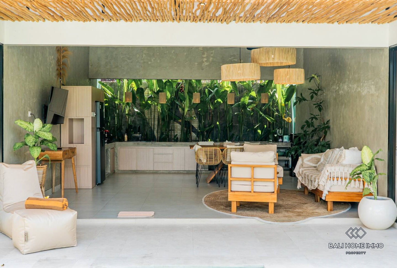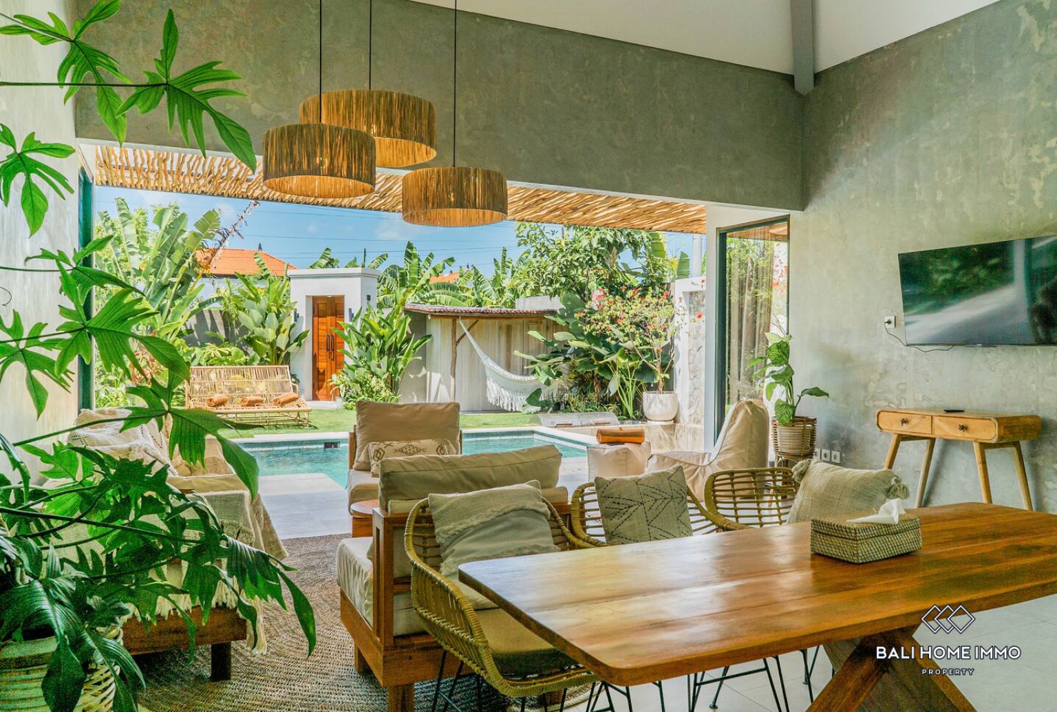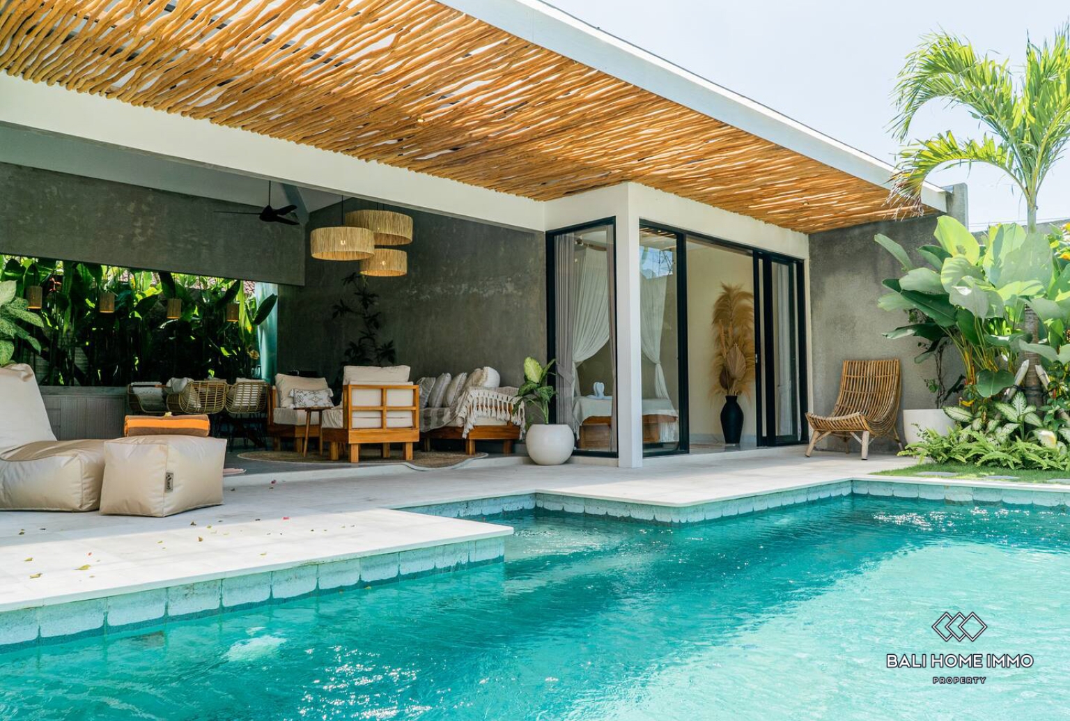 Dibangun pada tahun 2022 di atas lahan seluas 277,8 m2, hunian satu lantai ini merupakan mahakarya desain tropis modern, yang berfokus pada aliran yang mulus antara ruang dalam dan luar ruangan. Vila ini memiliki akses selebar 3 meter dan tempat parkir terbuka pribadi untuk kenyamanan maksimal. Saat memasuki vila, Anda akan disambut oleh taman rumput hijau yang terawat indah dan kolam renang berbentuk unik, lengkap dengan area bersantai yang nyamanโtempat yang sempurna untuk menikmati koktail saat matahari terbenam atau kopi pagi yang tenang. Jantung rumah ini adalah ruang tamu berkonsep terbuka dan dapur modern yang langsung menghadap kolam renang dan taman, memungkinkan angin sepoi-sepoi yang konstan dan banyak cahaya alami. Di kedua sisi ruang tamu, Anda akan menemukan dua kamar tidur luas, masing-masing dirancang dengan estetika tropis kontemporer dan dilengkapi dengan kamar mandi semi-terbuka yang dilengkapi dengan bak mandi mewah dan lemari pakaian pribadi.