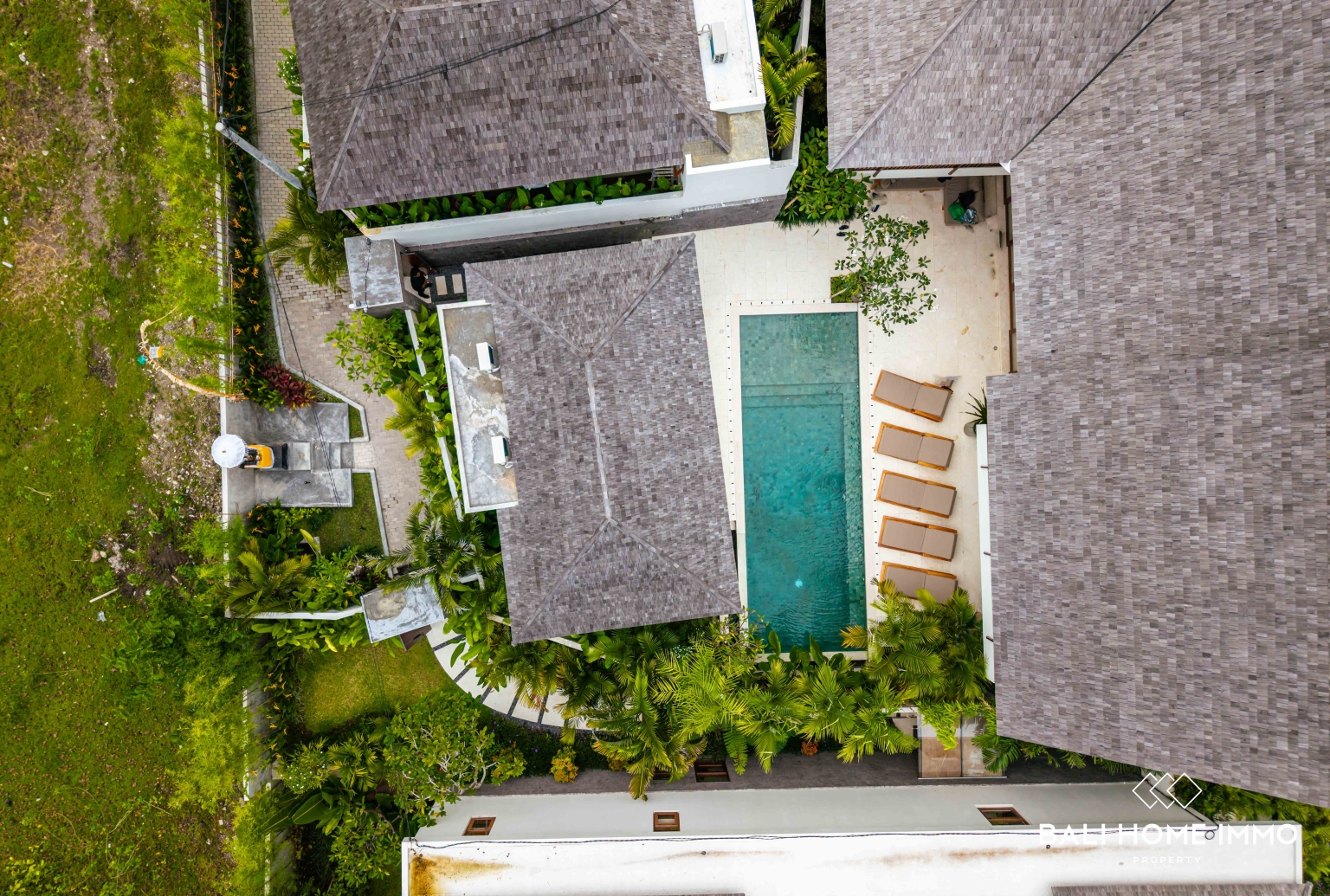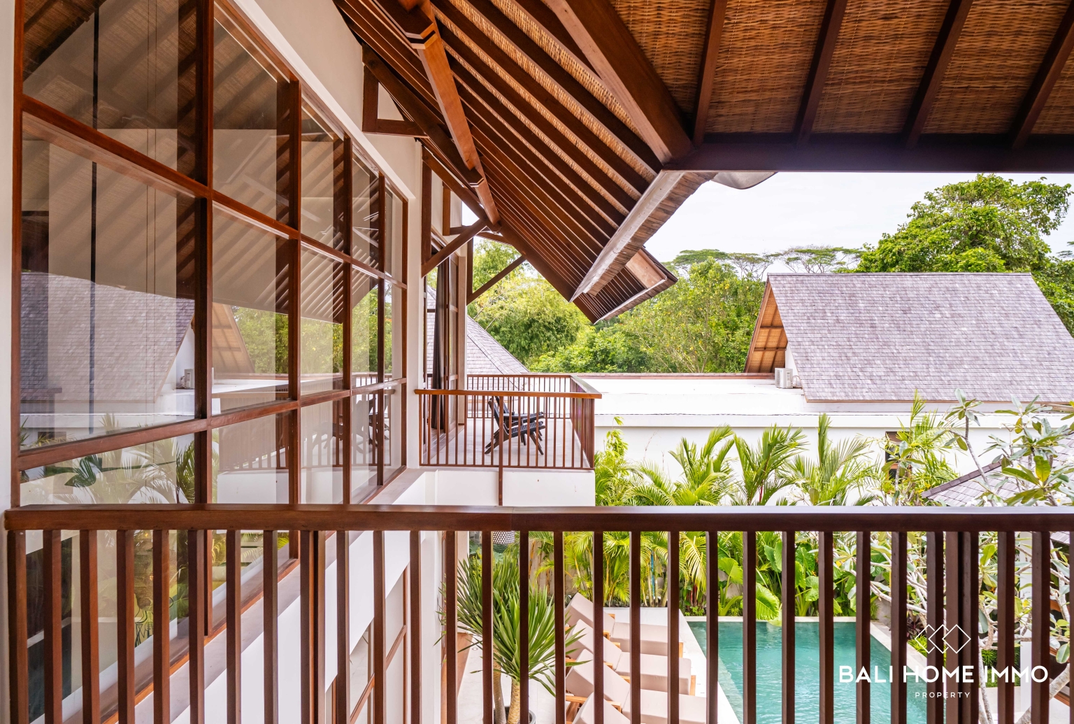 Di luar, nikmati taman tropis yang rimbun, kolam renang, dan jalur paviliun, yang menciptakan tempat peristirahatan yang tenang dan cocok untuk bersantai atau bersenang-senang.
