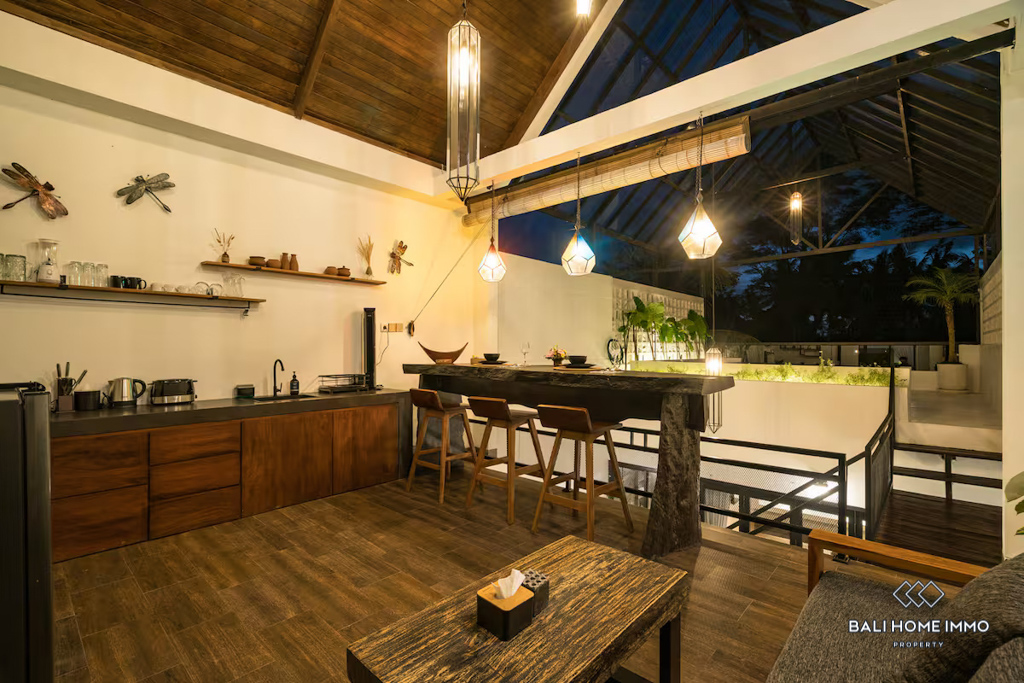 Vila modern dua lantai dengan satu kamar tidur di area Ubud ini menawarkan ruang tamu yang nyaman dan dirancang dengan apik. Kamar tidurnya dilengkapi kamar mandi dalam pribadi dan pemandangan langsung ke sawah, menciptakan suasana damai untuk memulai hari. Dilengkapi perabotan lengkap dan siap huni, vila ini juga memiliki dapur dan ruang tamu berkonsep terbuka yang terasa cerah dan nyaman, sempurna untuk kehidupan sehari-hari maupun hiburan.