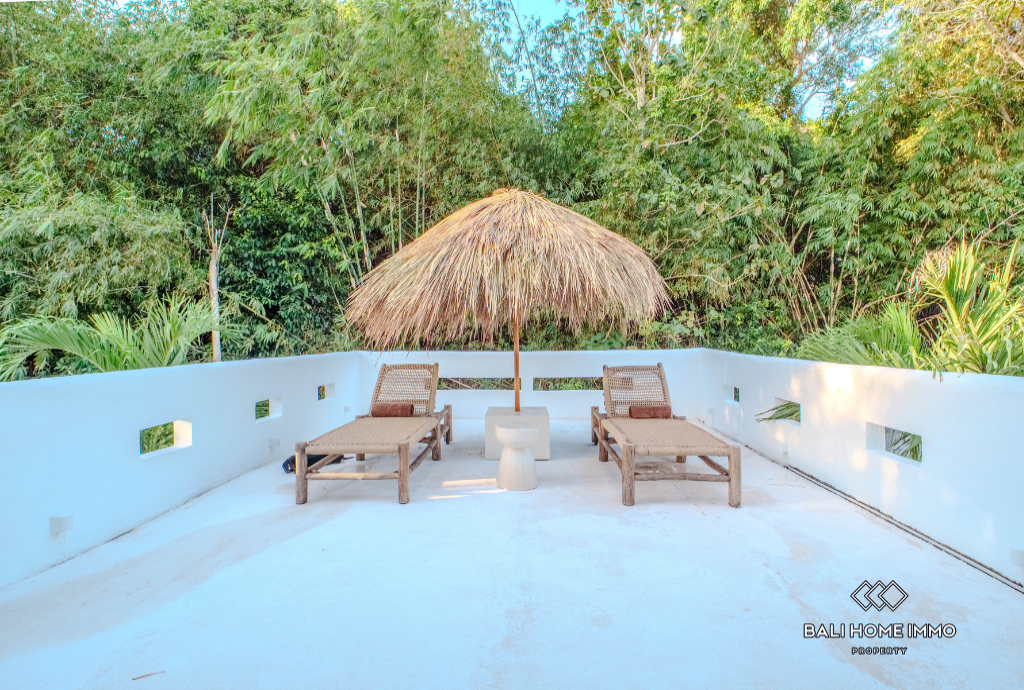 Masing-masing dari tiga kamar tidur dirancang dengan cermat dengan mengutamakan kenyamanan dan privasi, dilengkapi kamar mandi dalam untuk pengalaman hidup sehari-hari yang lancar. Ruang tamu terbuka terhubung dengan mudah dengan teras balkon besar yang disinari matahari โ ideal untuk menghibur atau bersantai sambil menikmati pemandangan lingkungan yang rimbun. Ruang santai luar ruangan menawarkan suasana yang sempurna untuk malam Bali yang hangat, menciptakan suasana yang mengundang untuk bersantai dan berkumpul.