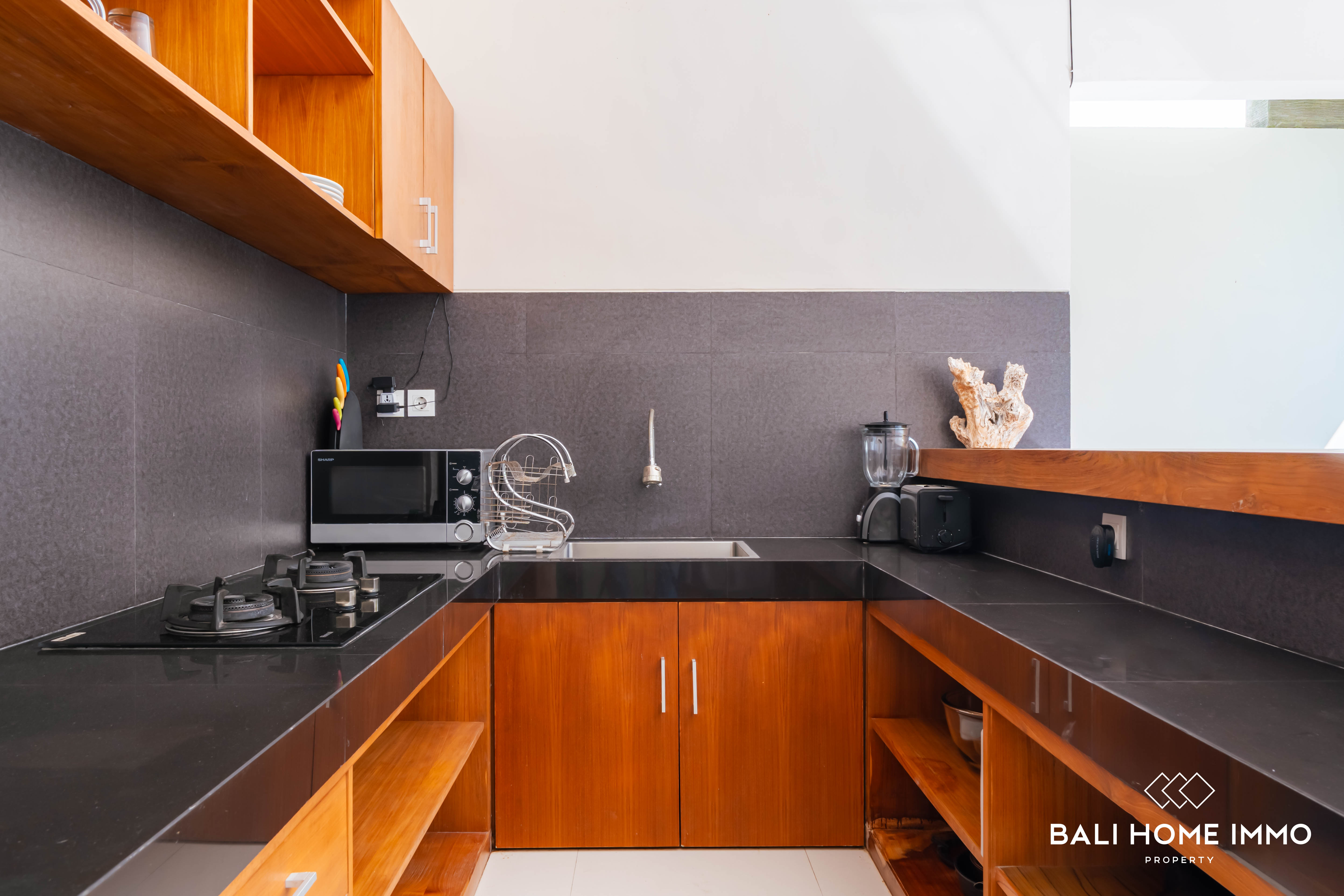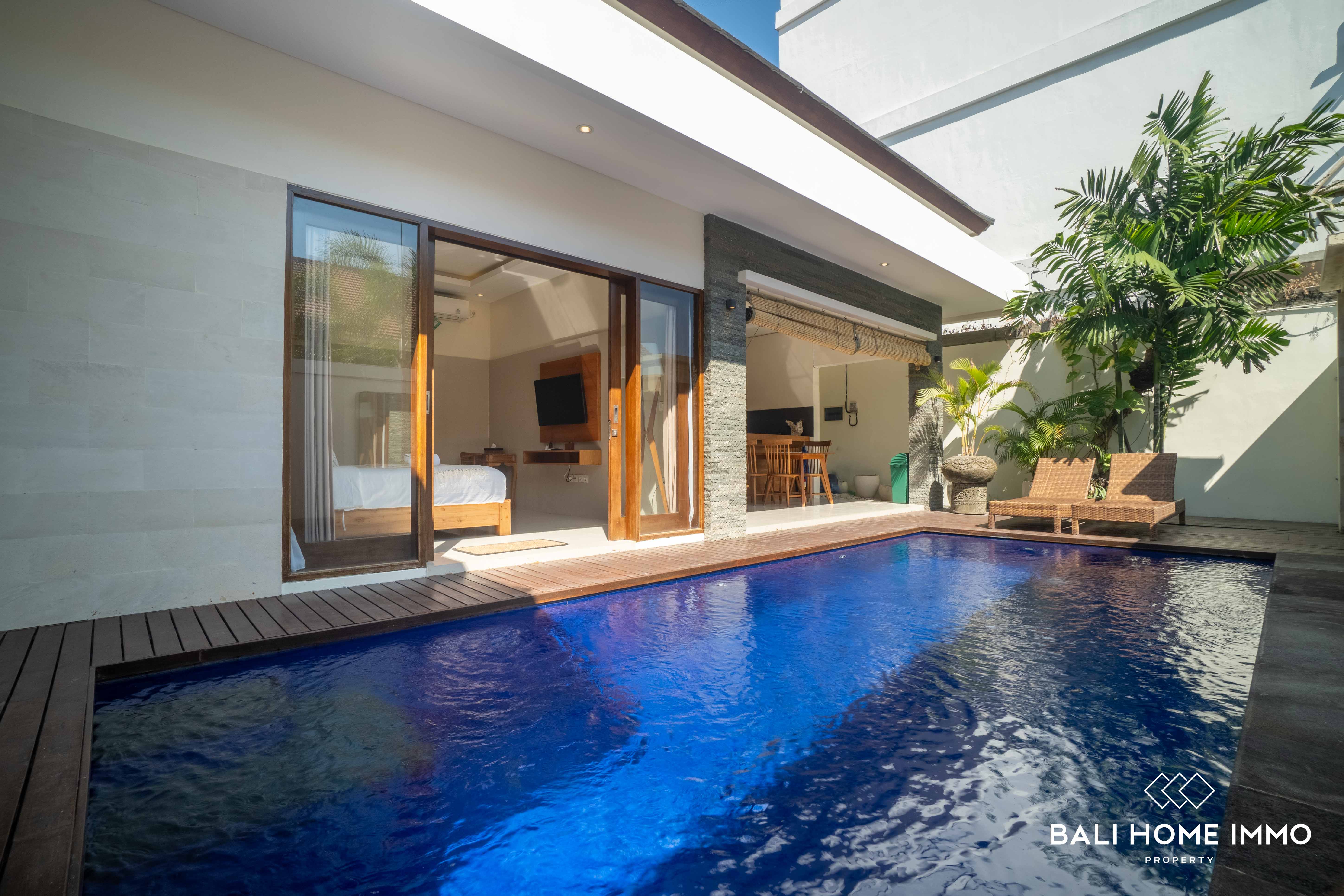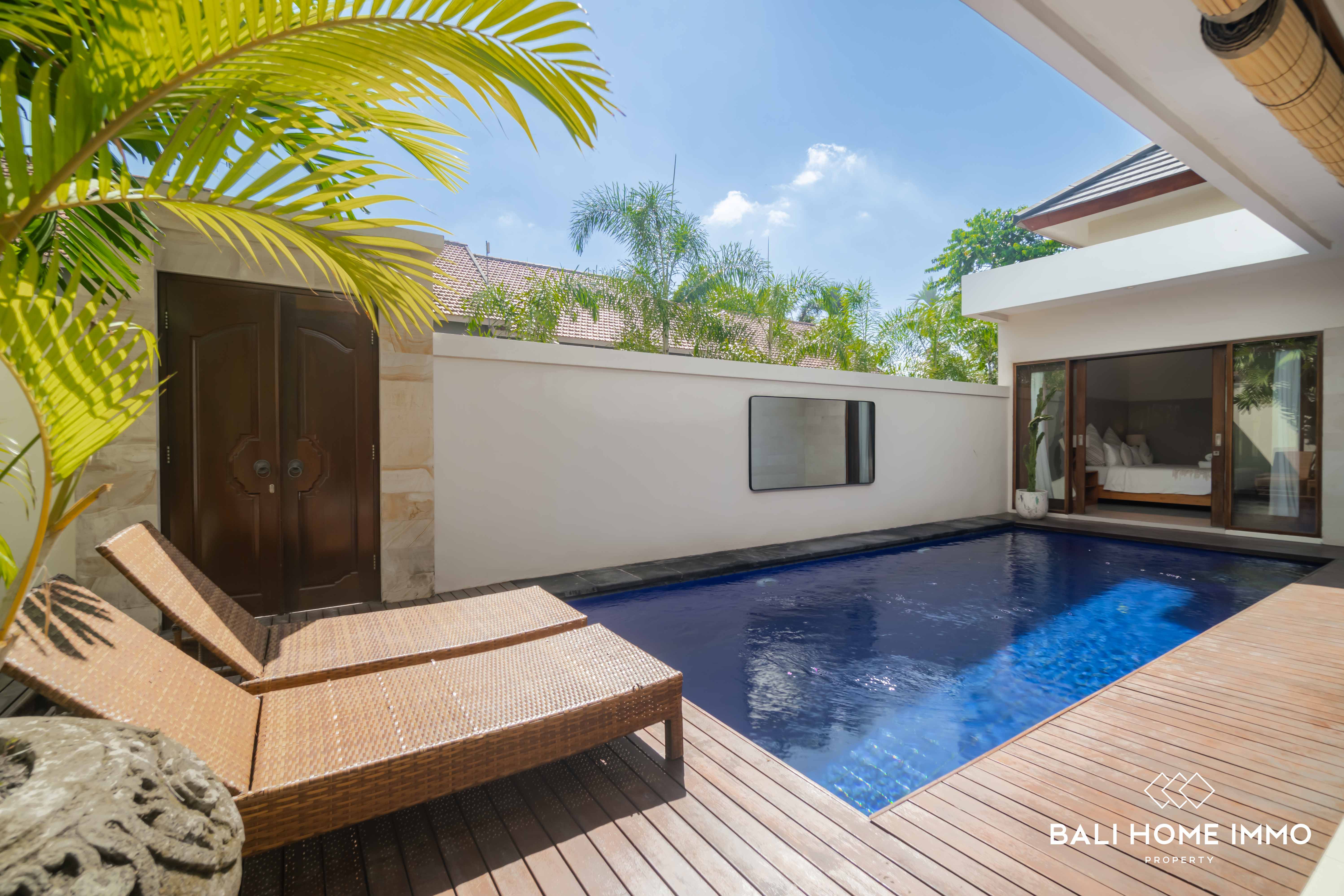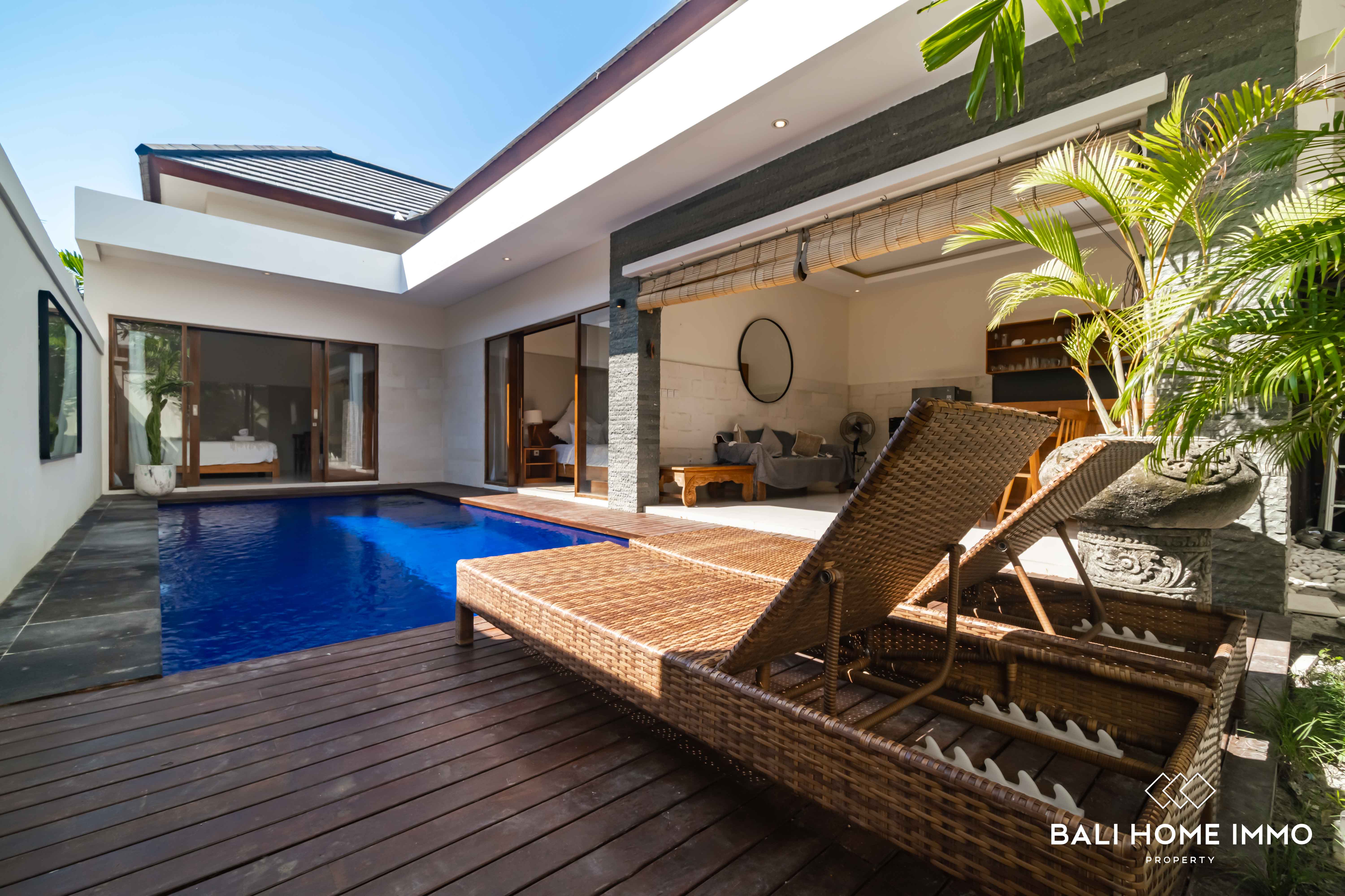 As you step inside, you'll be welcomed by an open living room, creating an airy and inviting atmosphere. The design embraces modern aesthetics, seamlessly blending with the residential surroundings, making it a tranquil haven in the heart of Canggu. The outdoor swimming pool as the focal point that enhances the allure of this property. The single-floor layout adds a touch of convenience, ensuring easy navigation throughout the space.