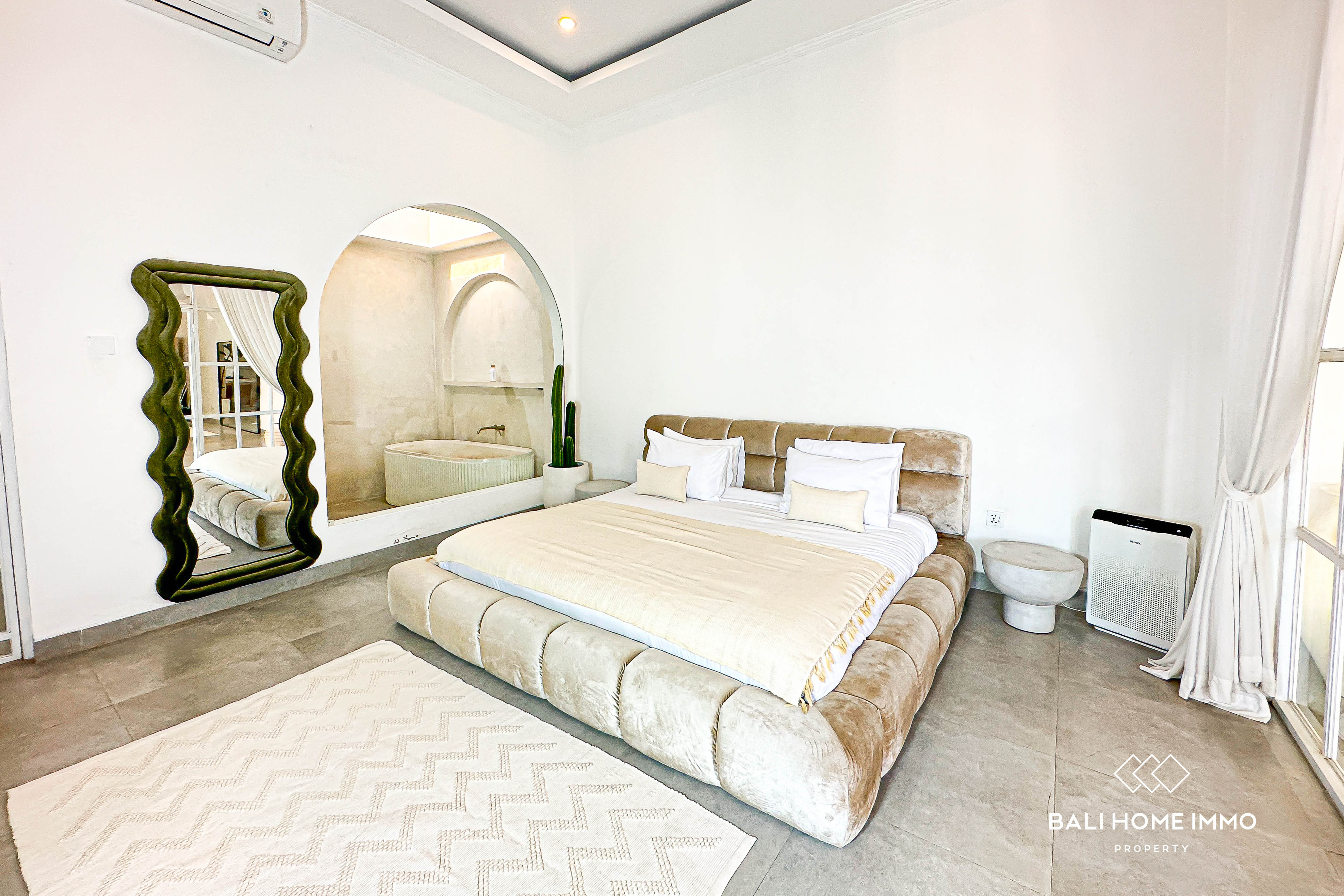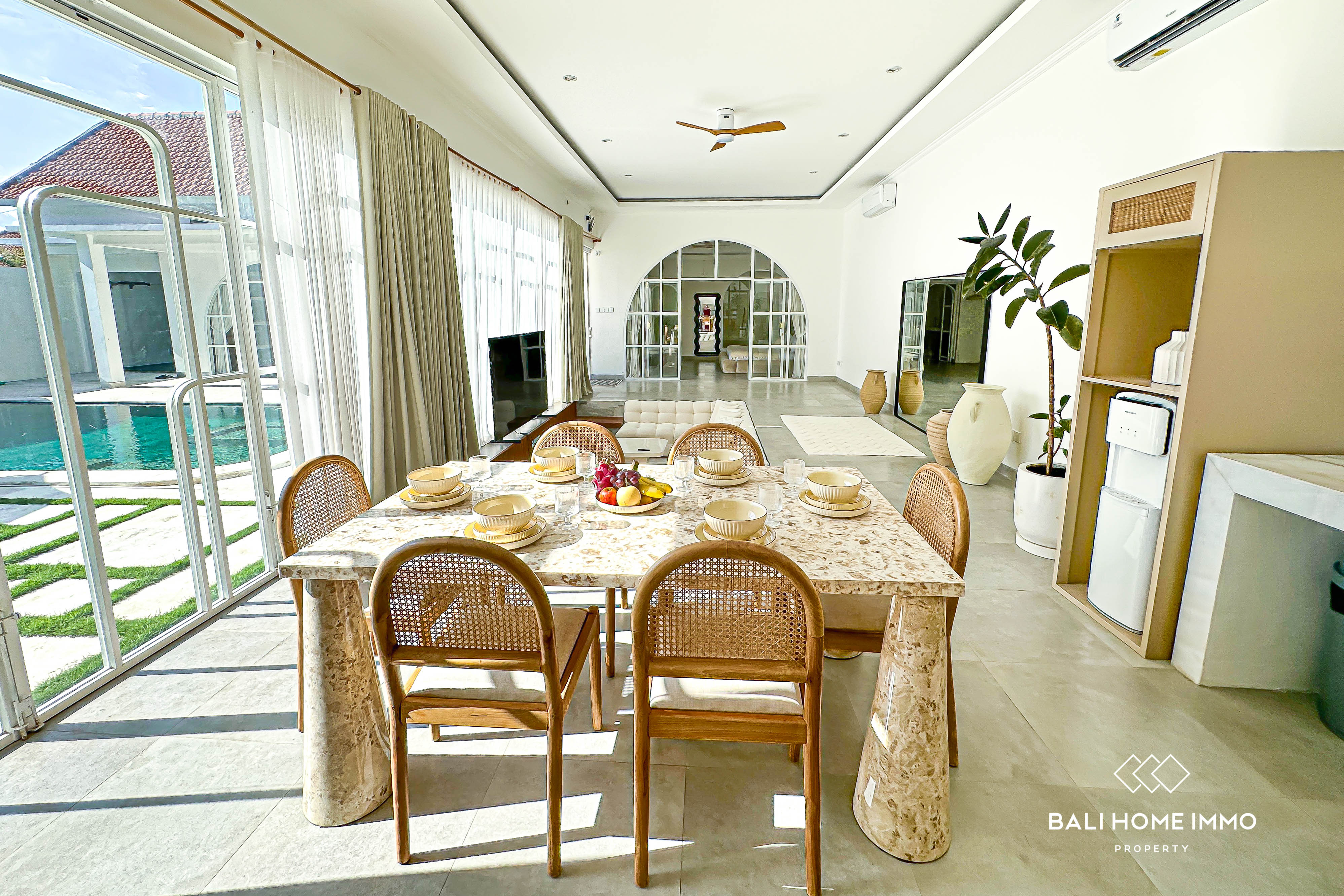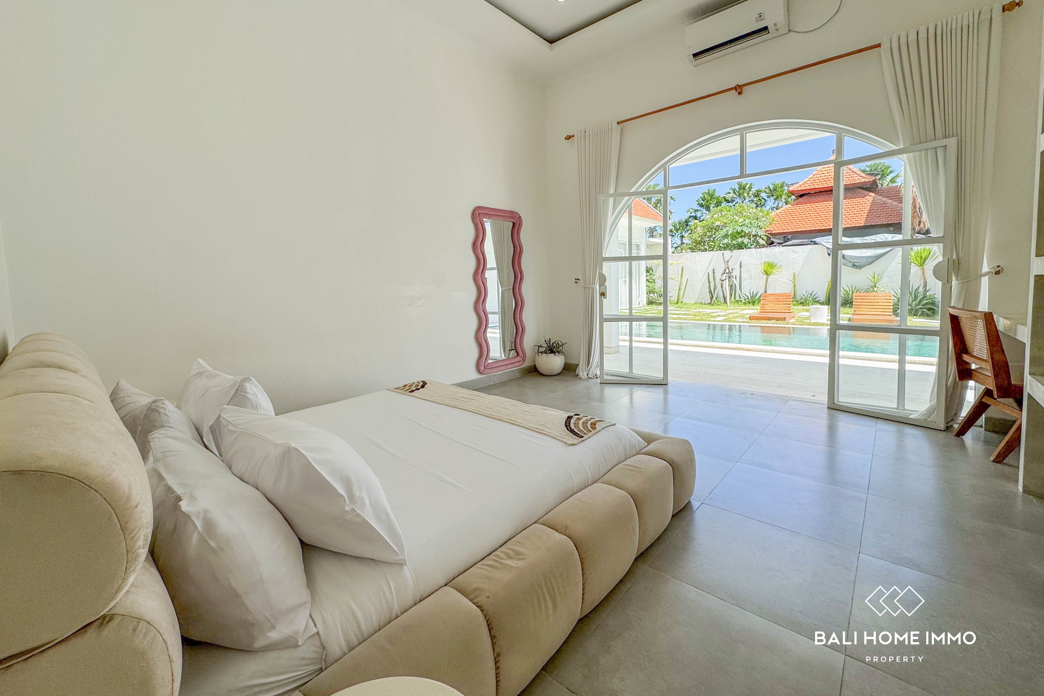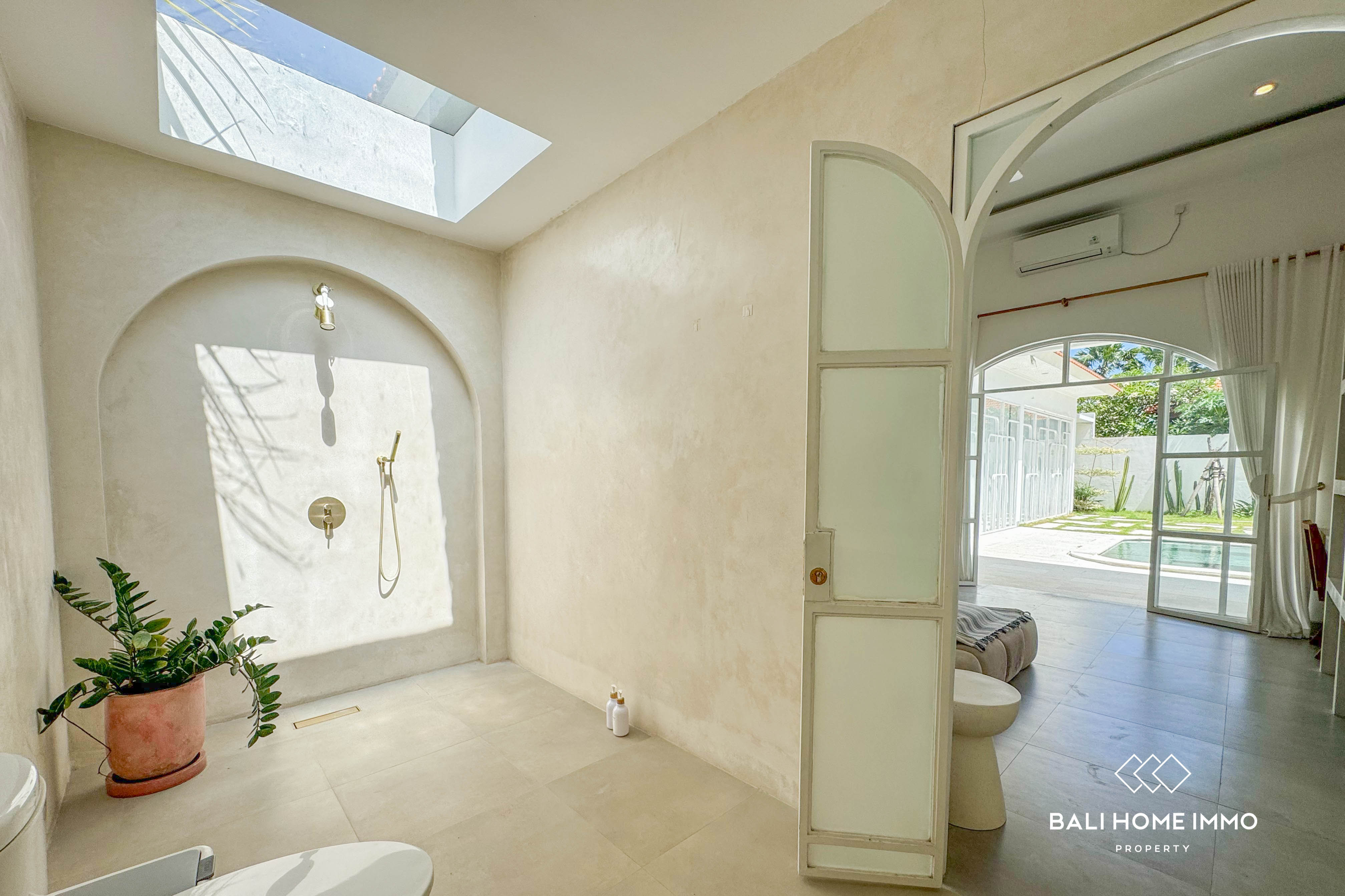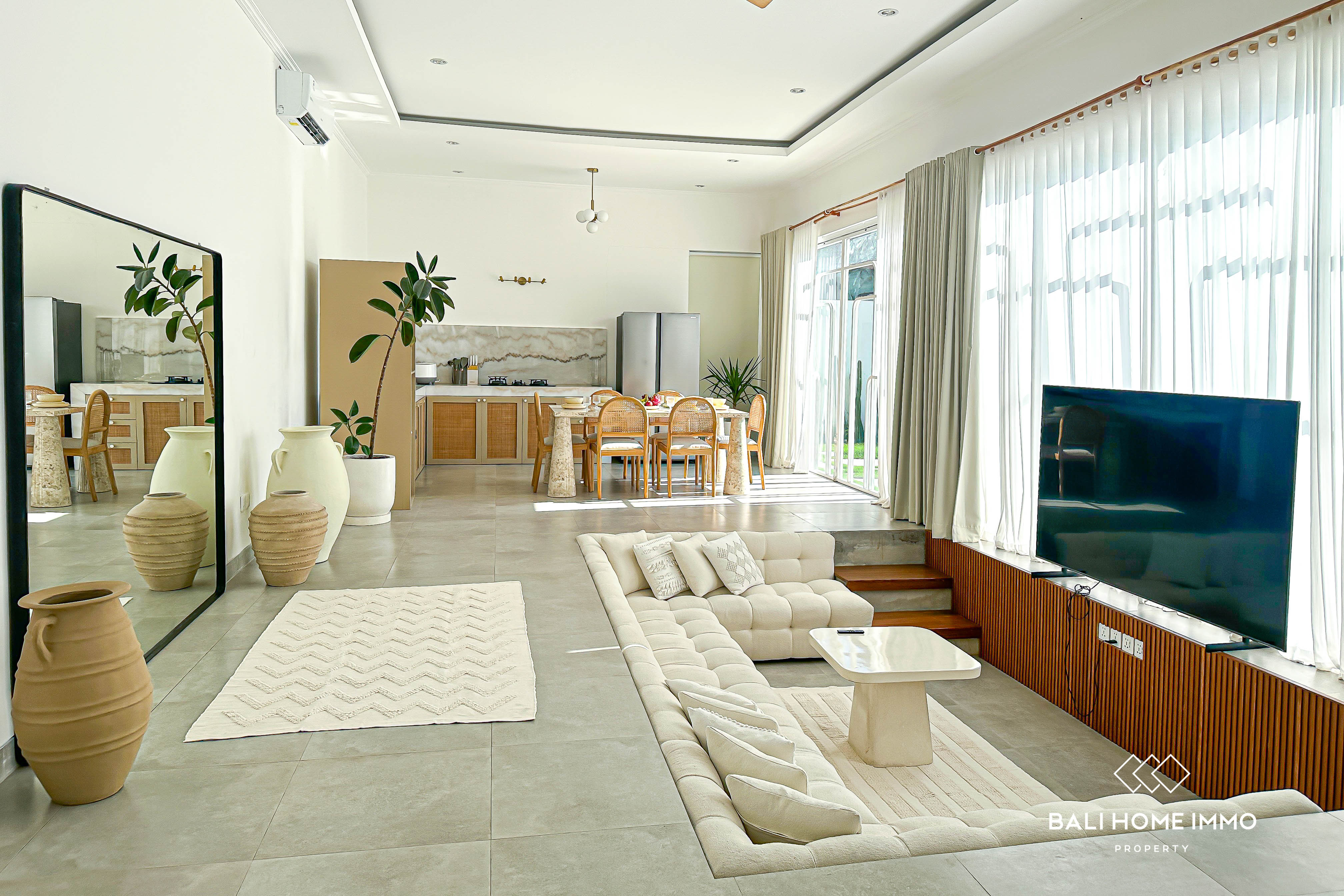 This impressive 3-bedroom villa in Berawa is the perfect blend of modern design and vibrant living. Each of the three generously sized bedrooms features its own en-suite bathroom, offering ultimate comfort and privacy. The villa boasts an open-concept living area that includes a spacious dining and kitchen space, all designed to give you a sense of openness and freedom. With large glass doors that open up to the private pool area, you can enjoy a seamless connection between indoor and outdoor living. The interior is fully air-conditioned, providing a cool and comfortable environment year-round.