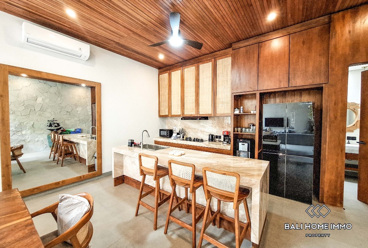 Located just eight minutes from Batu Bolong Beach, the villa allows easy access to Cangguโs cafรฉs, restaurants, shops, schools and lifestyle hubs, while remaining set within a residential area ideal for families.