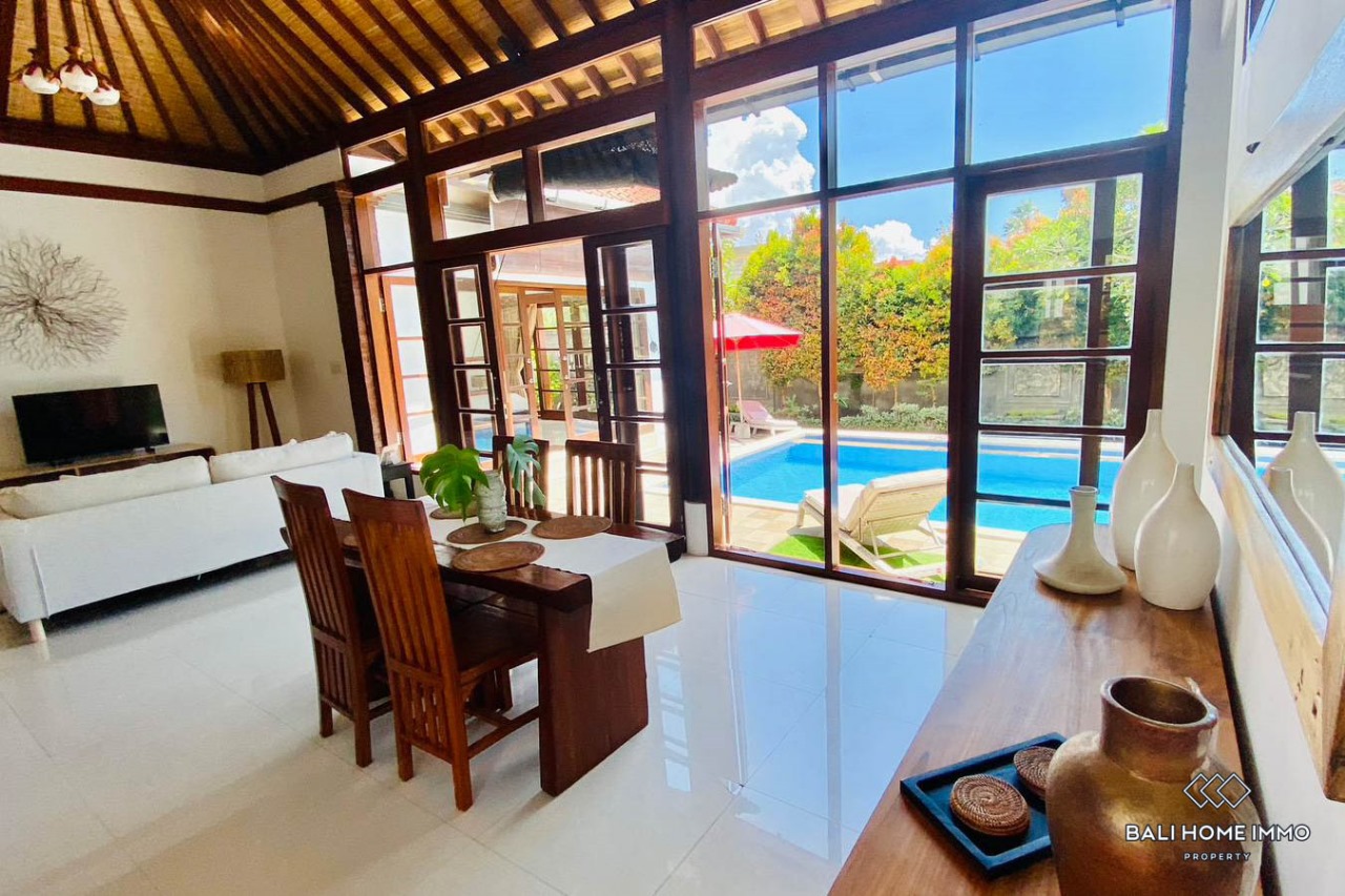 Nestled within a peaceful residential area, the property features an enclosed living room for added privacy and relaxation. Two ensuite bathrooms ensure convenience and comfort for residents. Outdoors, a private swimming pool awaits, providing the perfect spot to unwind and cool off.