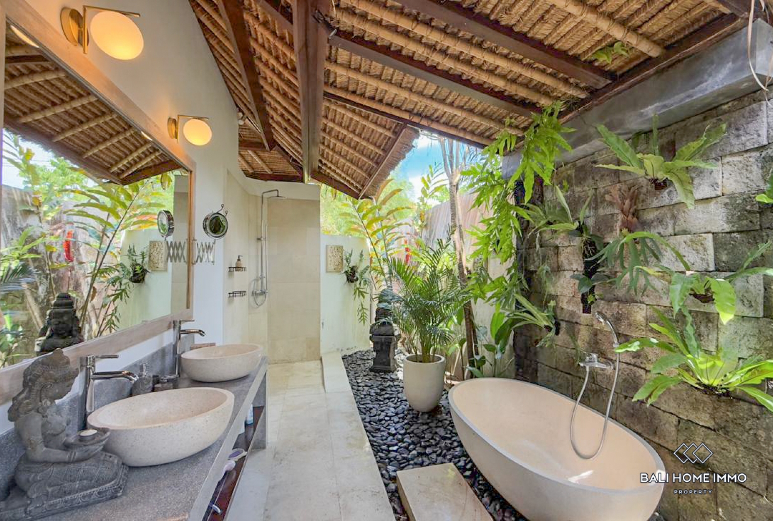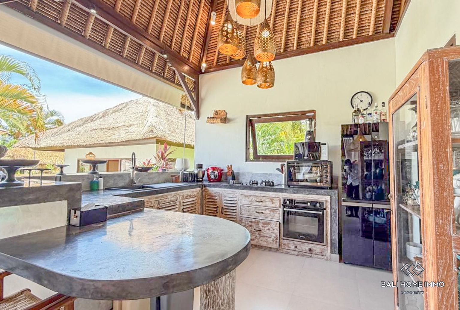 Set on a generous 12.5 are of land, the villa offers exceptional space and greenery rarely found in monthly rental properties. The property features three bedrooms, each with an ensuite semi-open bathroom, thoughtfully arranged across three separate buildings consisting of the living area, kitchen, and bedroom pavilions. This layout enhances privacy, natural airflow, and a true tropical living experience. The open living and kitchen area overlooks a 12-meter-long swimming pool, surrounded by a large landscaped garden filled with lush tropical plantation. Newly renovated in October 2025, the villa combines modern architecture with Balinese design elements, enriched by beautiful handcrafted details throughout. The master bedroom includes a bathtub, while excellent air circulation ensures the villa remains bright, fresh, and comfortable all year round.
