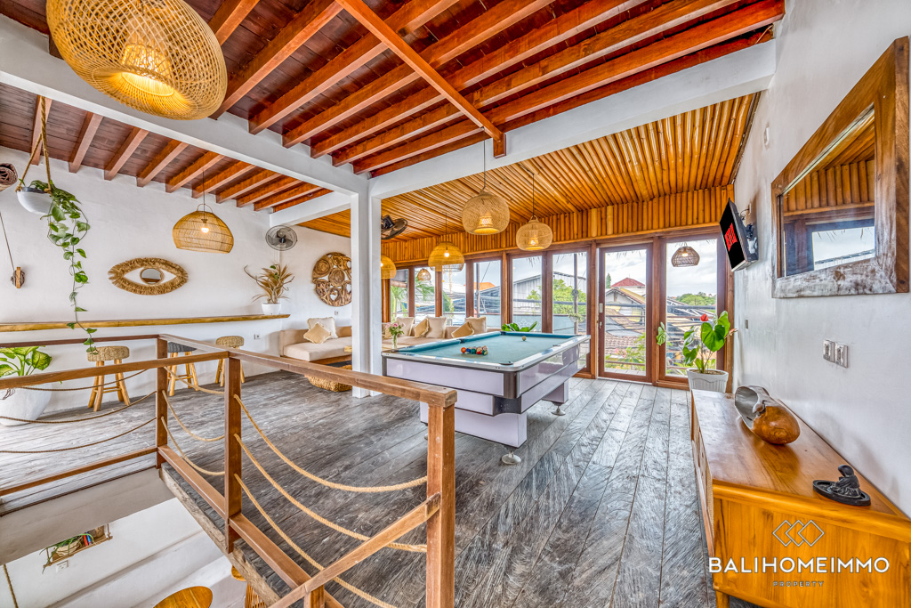 This stunning villa is located in the trendy area of Canggu. Situated just an 8-minute drive from the beach, this villa offers the perfect mix of relaxation and convenience. The property is surrounded by an abundance of amenities, including a variety of restaurants, cafes, beach clubs, and shops. Spanning 3 levels with 290 sqm of building and 1,9 are of land, the villa offers ample space for you to unwind.ย