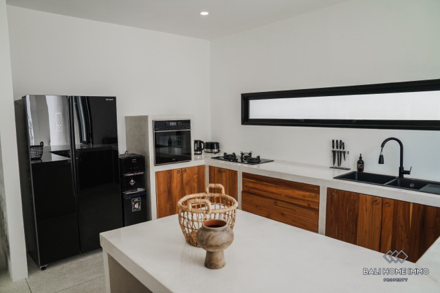 Nestled in the peaceful residential side of Canggu, this modern two-floor four-bedroom villa offers a contemporary tropical lifestyle wrapped in privacy, comfort, and understated elegance. Designed with clean lines and stylish functionality, the villa is a true haven for those seeking a serene escape while remaining close to Baliโs most vibrant destinations. Each of the four bedrooms comes with its own ensuite bathroom, creating personal sanctuaries that ensure relaxation and privacy for all guests or family members. The enclosed living room flows seamlessly into a fully equipped kitchen, making daily life effortlessly comfortableโwhether you're preparing a quiet breakfast or hosting dinner for loved ones.