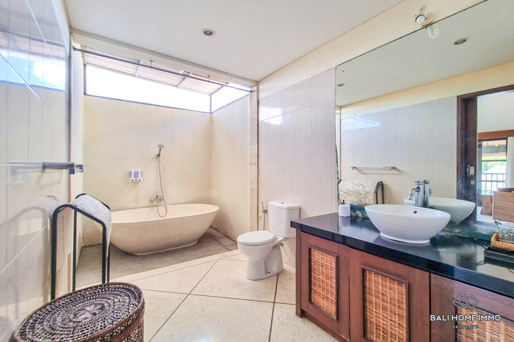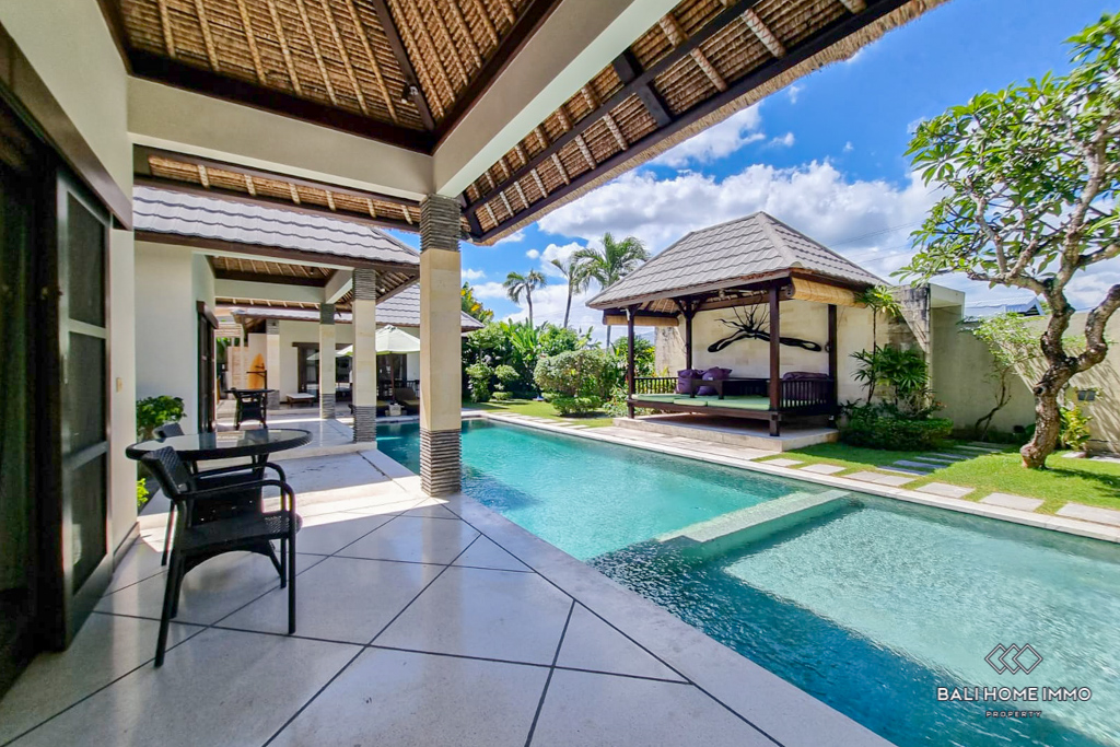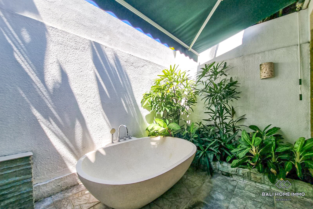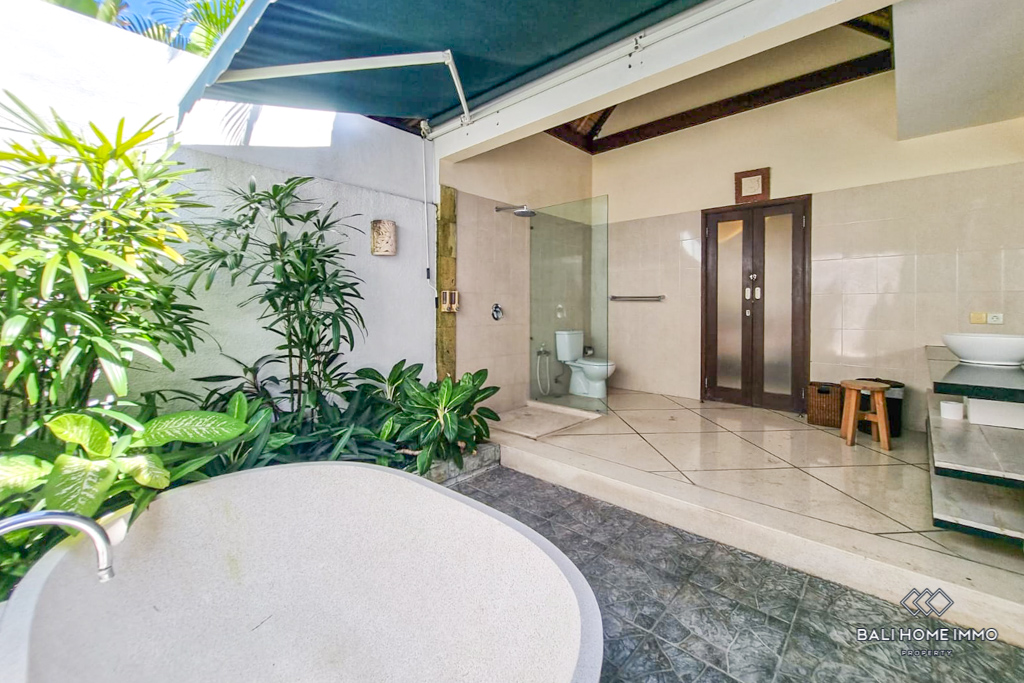Built for both practicality and luxury, the villa boasts two fully equipped kitchens, a guest toilet, a staff room, ample storage space, and a charming gazebo for outdoor lounging. The outdoor area includes a parking space for one car, ensuring convenience for residents and visitors. With its inviting ambiance and timeless design, this villa is ideally located in the heart of Berawa, just minutes from supermarkets, trendy cafes, renowned restaurants, and top international schools, making it a perfect home or investment opportunity in Bali.
