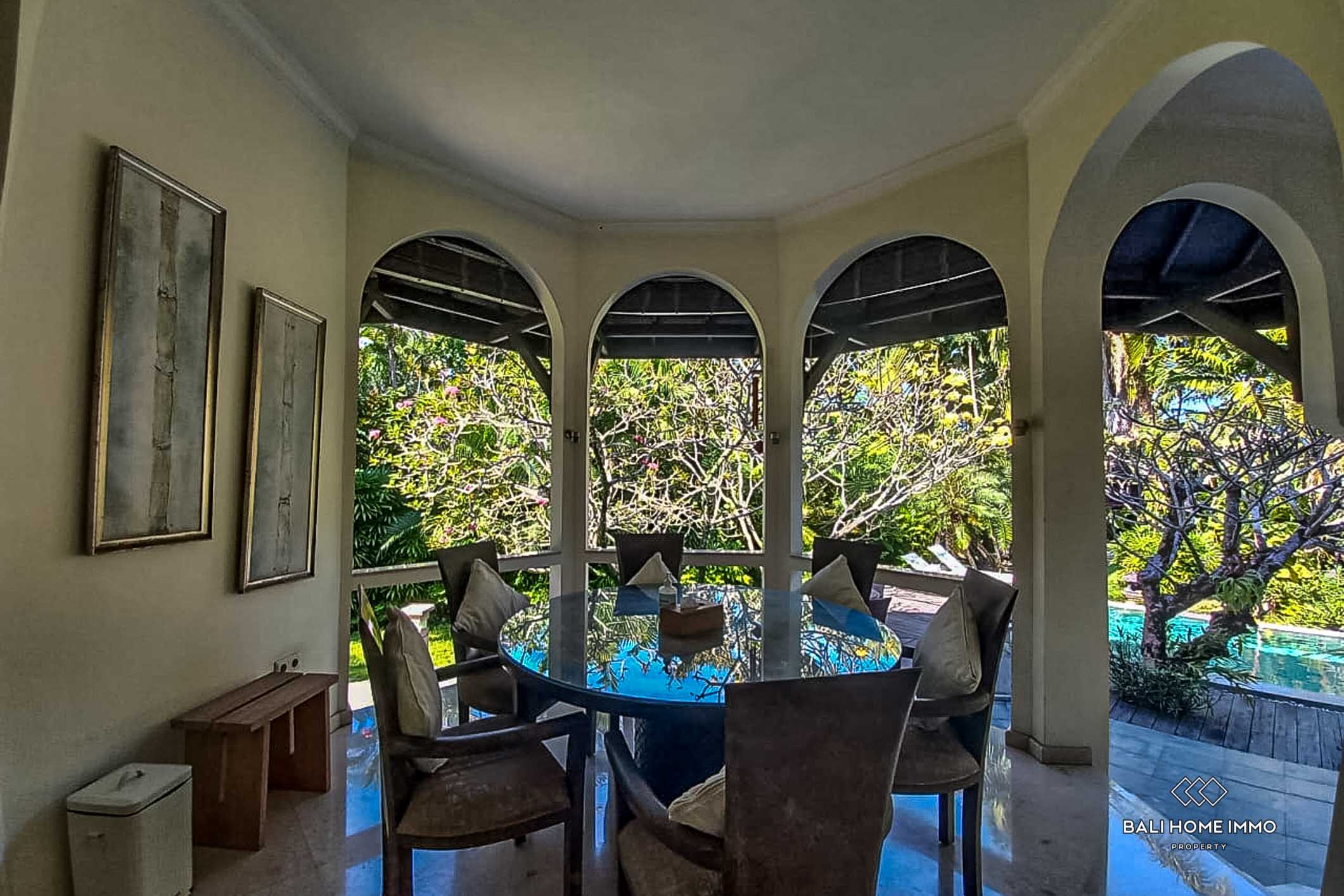 Spacious family villa is hidden in the heart of Seminyak, within walking distance from a wide variety of restaurants and only a 5-minute drive from Petitenget Beach, Motel Mexicola, Potato Head, and more. The villa spans 15 are and features a colonial-inspired design with oval-shaped rooms, boasting an open-air living and dining area that flows seamlessly into the pool, a fully equipped kitchen with ample counter storage, and 3 bedrooms with well-sized en-suites, as well as plenty of outdoor space for entertaining. With its excellent location and amenities, the villa is a solid choice for family retreats. ย ย ย ย ย ย ย ย ย ย ย