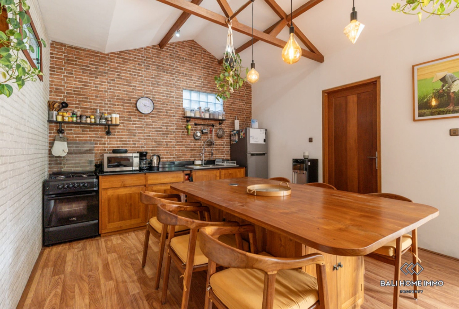 Outside, a private swimming pool is surrounded by a lush garden, providing a tranquil retreat for unwinding or entertaining. The villa also includes an enclosed parking area suitable for bikes, adding practicality and security. Located in a highly desirable area of Kerobokan, the property is just minutes away from a variety of popular cafes and restaurants, offering easy access to vibrant dining and social scenes while still maintaining a peaceful residential atmosphere.