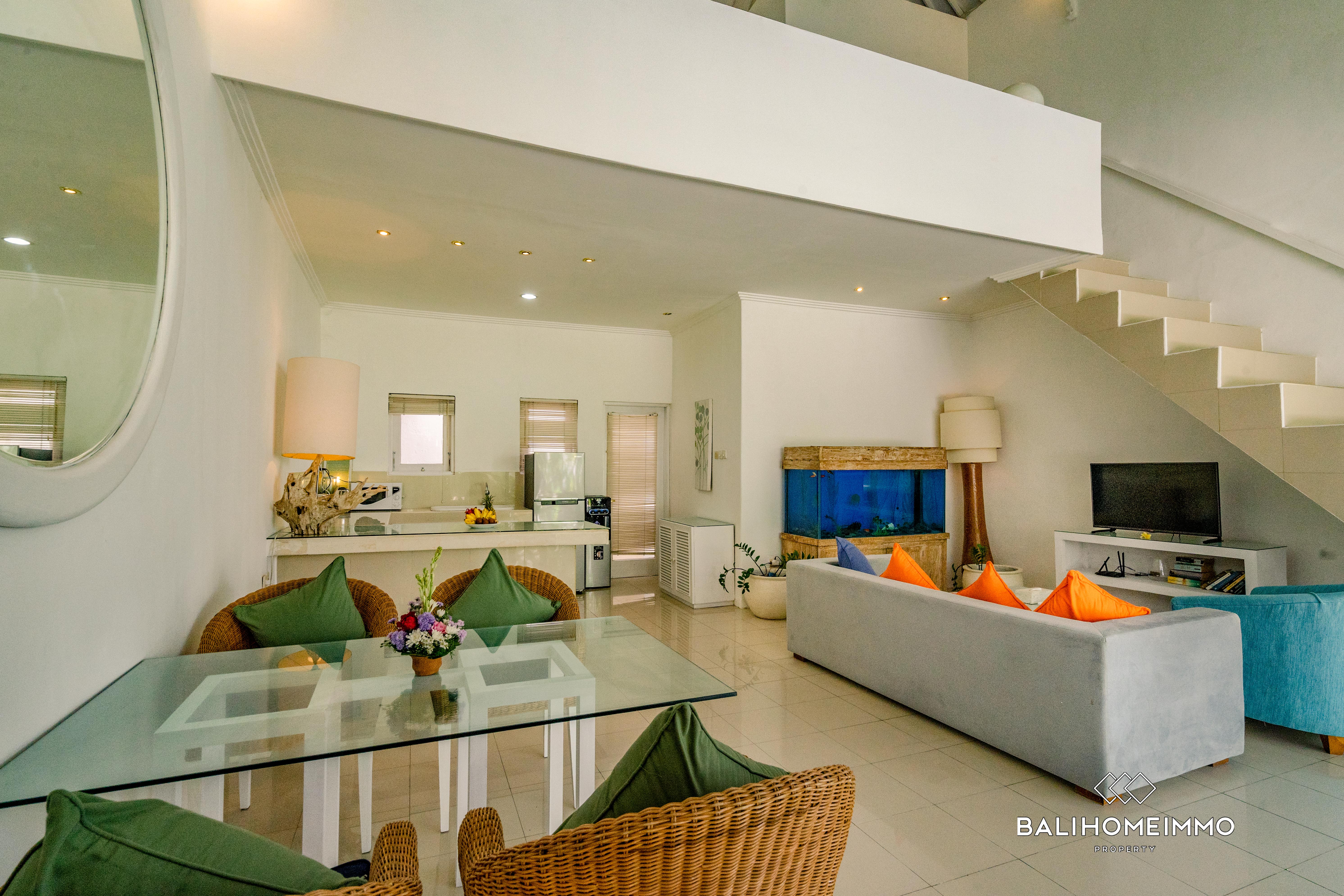 The villa features a refreshing private pool and a large shared pool, with open living spaces perfect for relaxing. It's your ideal Bali getaway - close to everything but still wonderfully private. This is island living at its best.