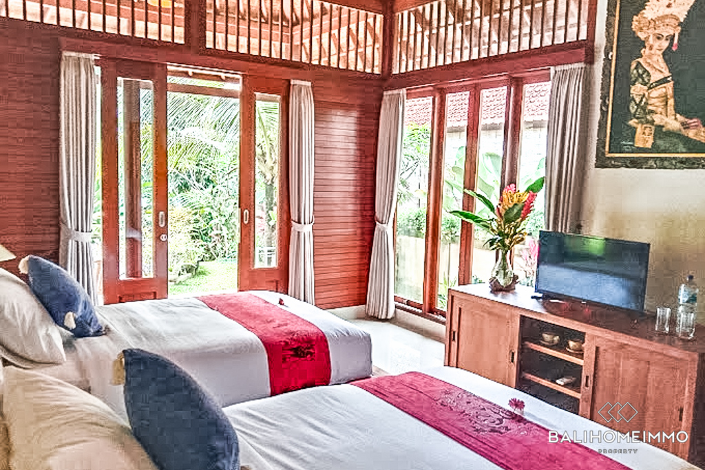 Nestled in the heart of Ubud, this charming Balinese-style villa is the ideal retreat for those seeking a tranquil getaway, only a 5-minute drive from several touristic activities, such as temples, a museum and rice fields. With 200 sqm of building on 5 are of land, this property offers plenty of room for you and your guest to relax and unwind.