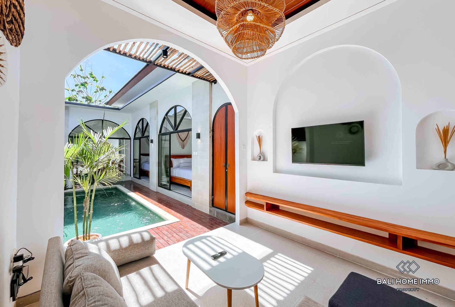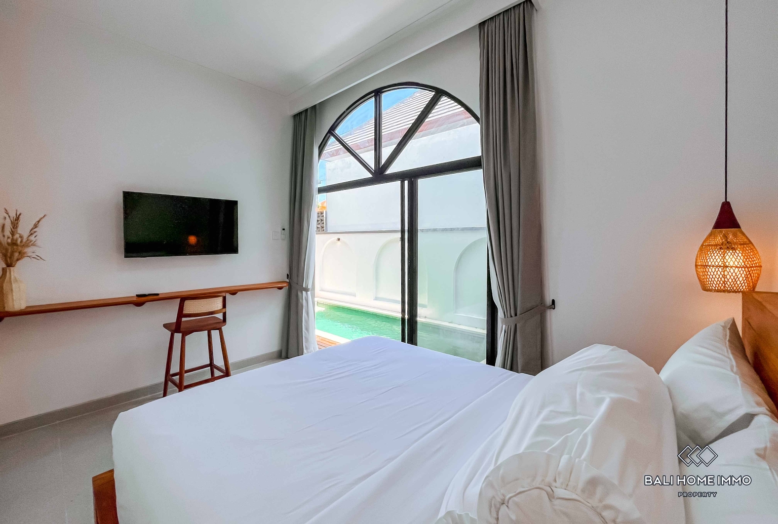Set on 110 mยฒ of land, the villa features a private swimming pool, an open living area, and a fully enclosed kitchen designed for everyday comfort. Both bedrooms are bright and spacious, offering privacy and relaxation with large windows that bring in plenty of natural light. The seamless connection between indoor and outdoor spaces creates a refreshing and cozy atmosphere that perfectly complements Baliโs tropical lifestyle.
