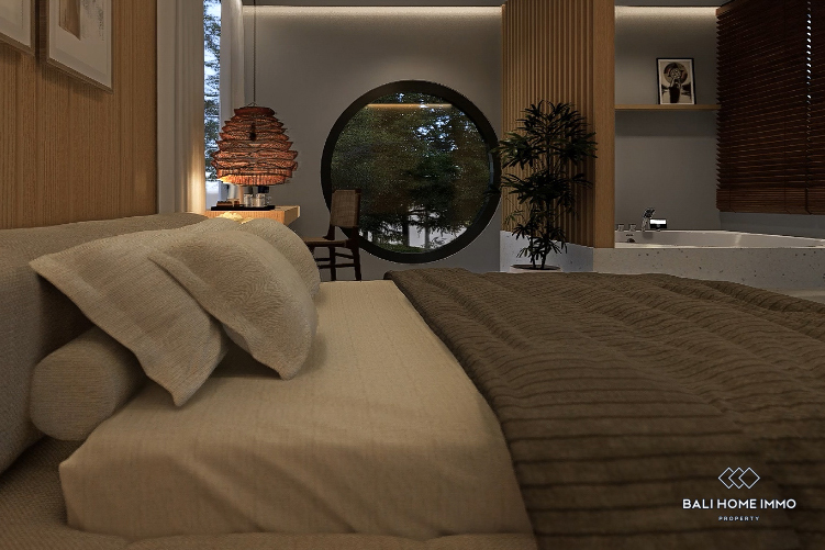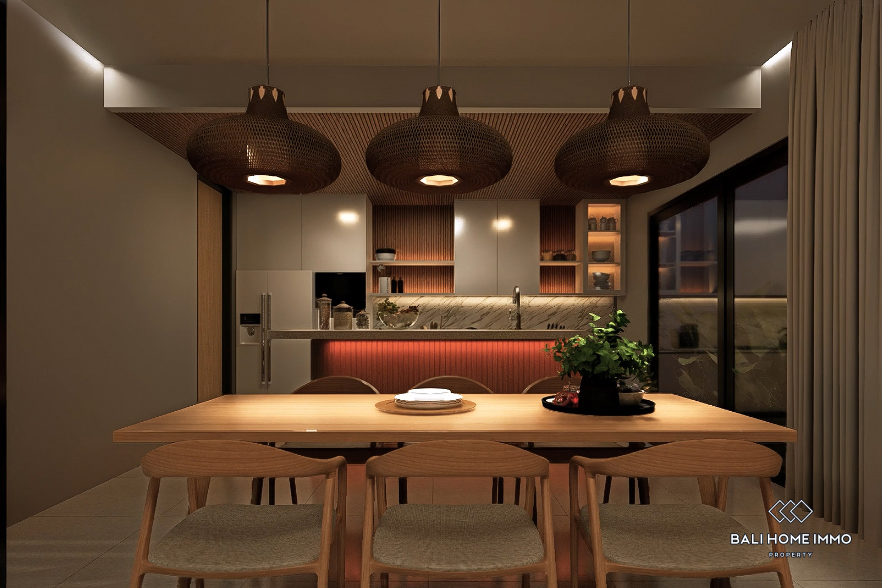 Inside, the property is designed with premium interiors, including an enclosed living and dining area and a fully equipped modern kitchen with a dishwasher. Available for monthly rental, it is an ideal choice for families, couples, or digital nomads seeking a luxurious long term home in one of Bali’s most extraordinary locations.