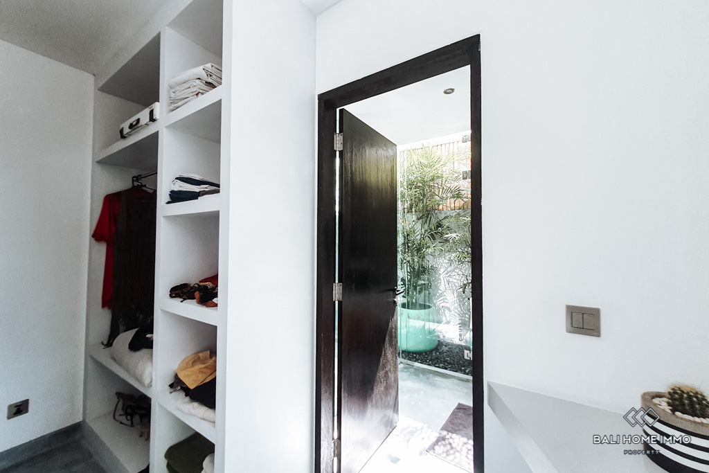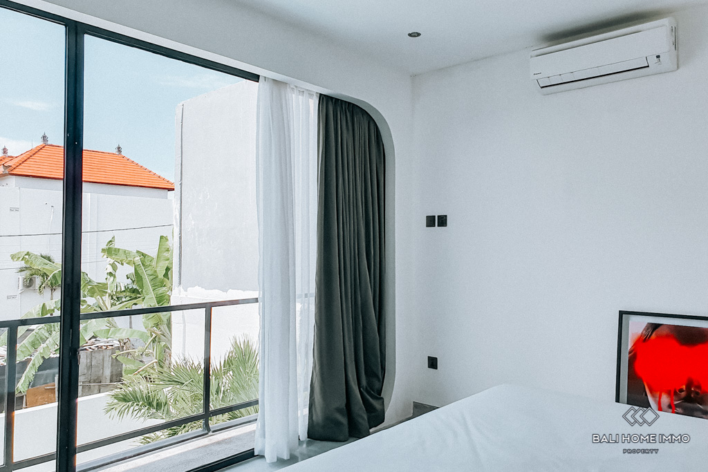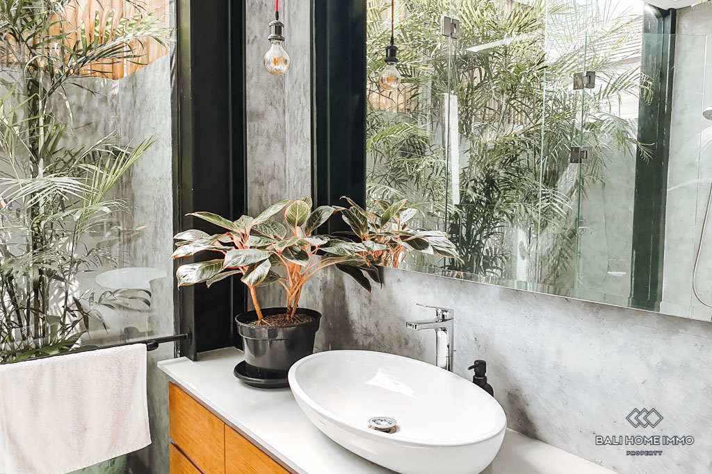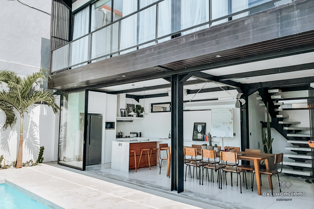 This beautiful industrial style townhouse is located strategically in Bumbak, Umalas. It offers a spacious living / dining area with fully openable sliding door and 2 AC units on the ground floor. The western-style kitchen is fully equipped with an oven, microwave, 2-door fridge,ย and 8-seater dining table. It's the perfect home for couples or small family, especially for those who like to host friends. The villa is also equipped with a decent-size storage that can be used as a laundry room. The master bedroom offers a walk-in closet and a spacious bright bathroom with double-sink and a classy bathtub. The guest bedroom is equipped with a walk-in closet, lockable storage room, and spacious bright bathroom. Both bedrooms can access the balcony. All of the electricity sockets in the villa are universal, which makes it easy for everyone around the world to charge their electronics.ย The warm intimate lighting at night makes this villa feels cozy and romantic.