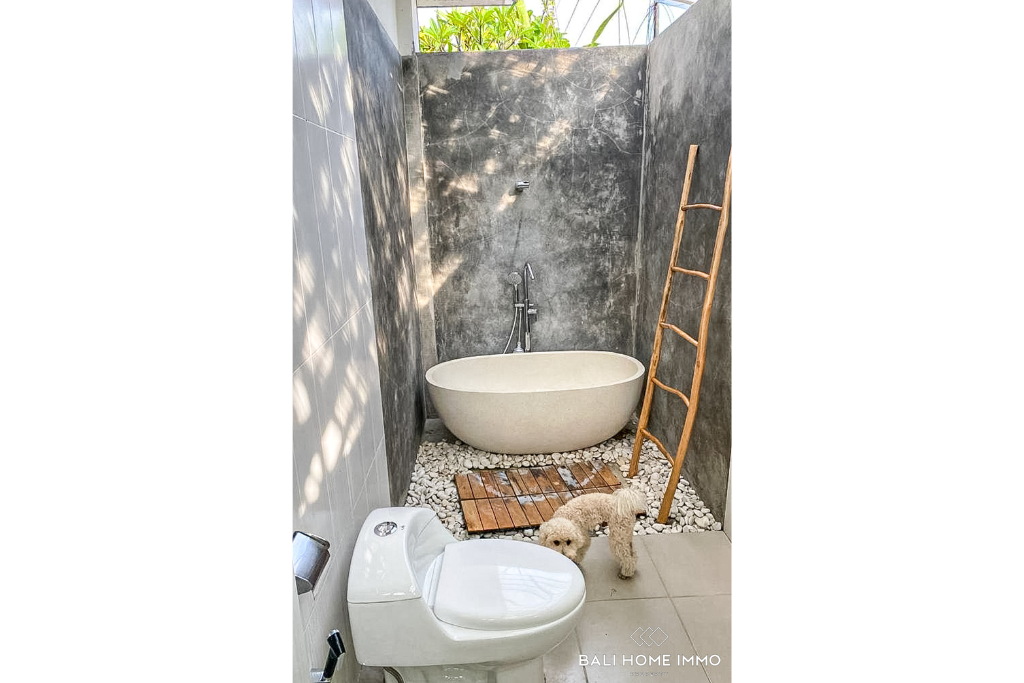 Strategically located in Umalas, this exquisite villa beckons those seeking a harmonious blend of comfort and style. Just a 15-minute drive from the nearest beach, this two-story haven is perfectly situated in a residential area, offering serenity and convenience in equal measure.