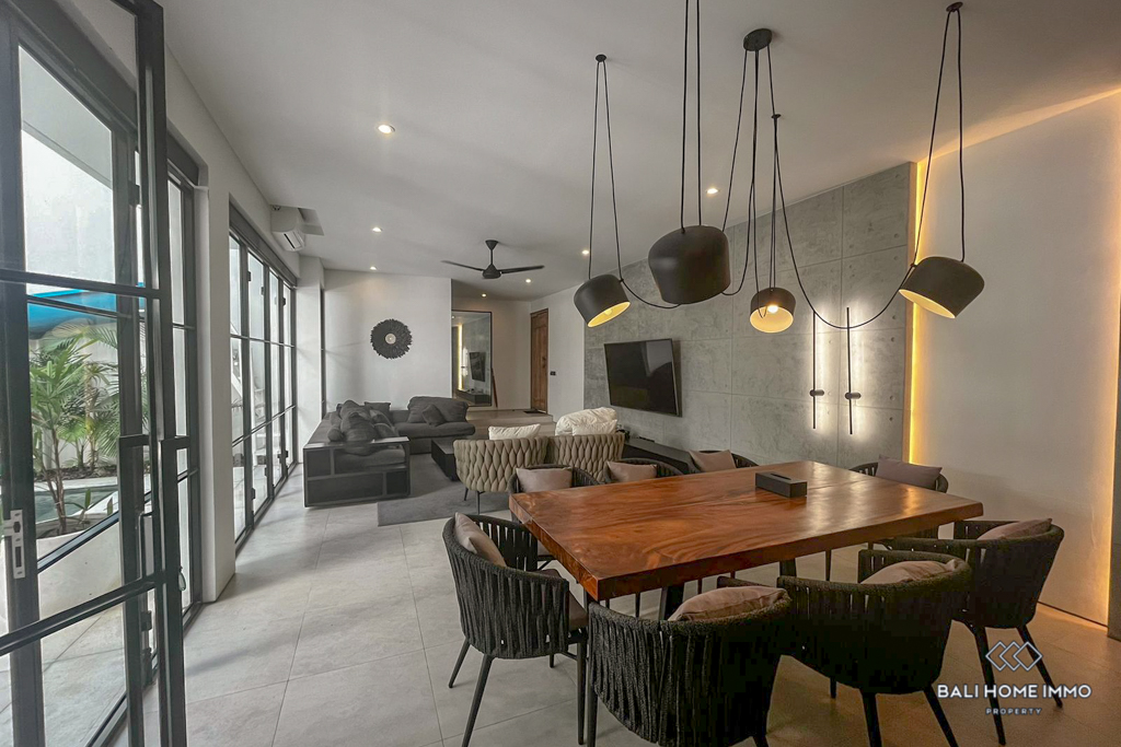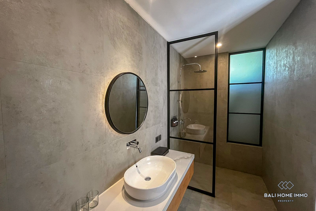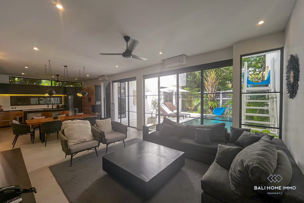 With its sleek modern design and prime location in a residential area, this villa offers a tranquil retreat while still being in close proximity to the bustling amenities of Umalas. Furnished with style and practicality in mind, this property is ready for immediate occupancy, making it an ideal choice for those seeking a temporary residence in the Umalas neighborhood.