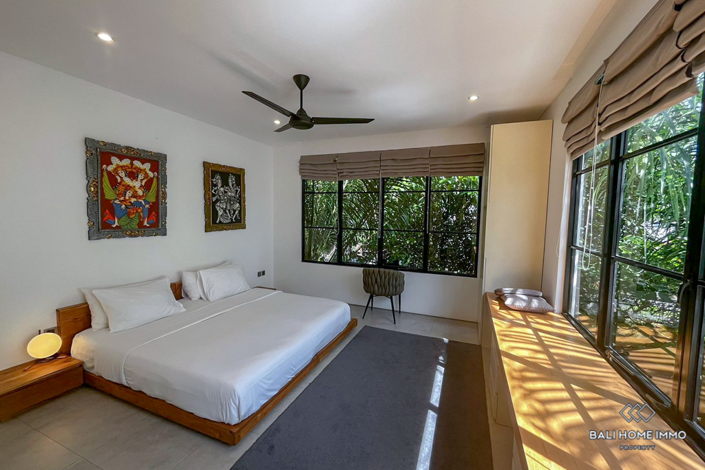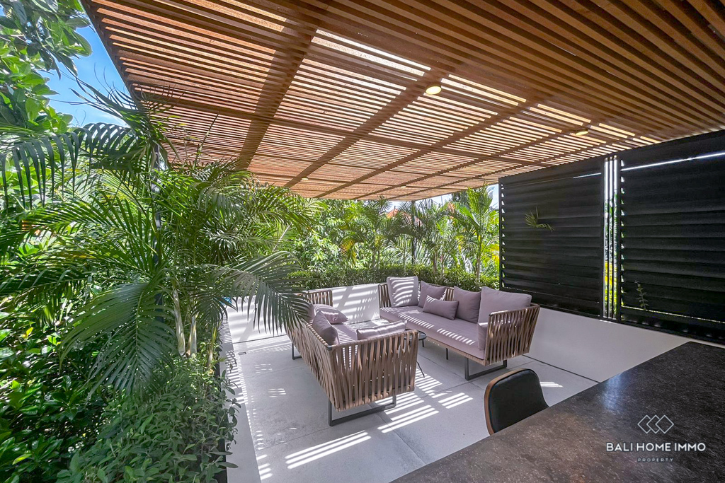 Nestled in the charming residential enclave of Umalas, a mere 14-minute drive from the nearest beach, this three-story villa offers a perfect synthesis of modern design and comfortable living. Situated on a cozy 2 are plot, the property unfolds over an expansive 450 square meters of meticulously crafted living space.