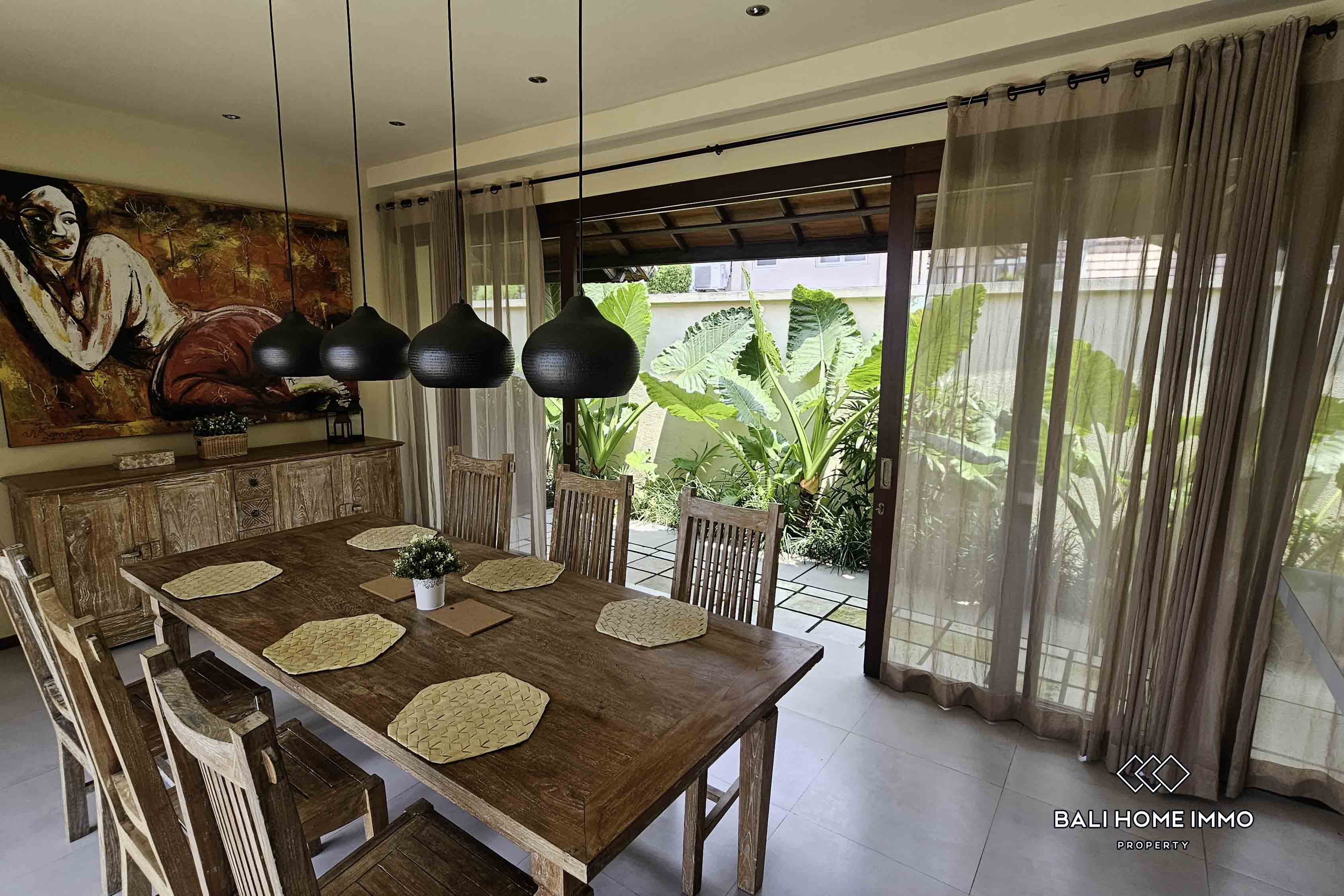 Set on a generous 570 square meter plot, the villa is surrounded by lush greenery and boasts a beautifully maintained garden and a private swimming pool perfect for enjoying Baliโs year-round sunshine. Additional amenities include a dedicated storage room and an outdoor car park, providing both practicality and convenience. With its ideal location, expansive outdoor space, and thoughtfully designed interiors, this property is an excellent choice for a serene Bali lifestyle or a smart rental investment opportunity.