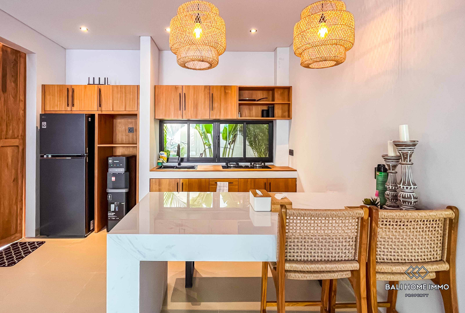 This stunning brand new two bedroom villa is nestled in the tranquil area of Ungasan, offering the perfect combination of modern living and tropical serenity. Thoughtfully designed with elegant interiors, it features an enclosed living room and a fully equipped kitchen that blend comfort and functionality. The bright and inviting atmosphere makes it an ideal home for both short and long term stays in Bali.