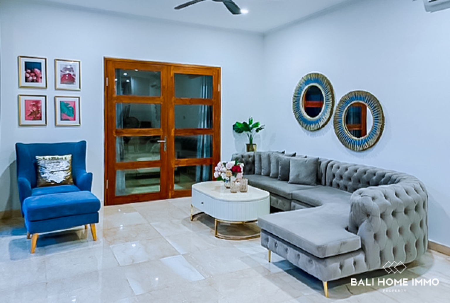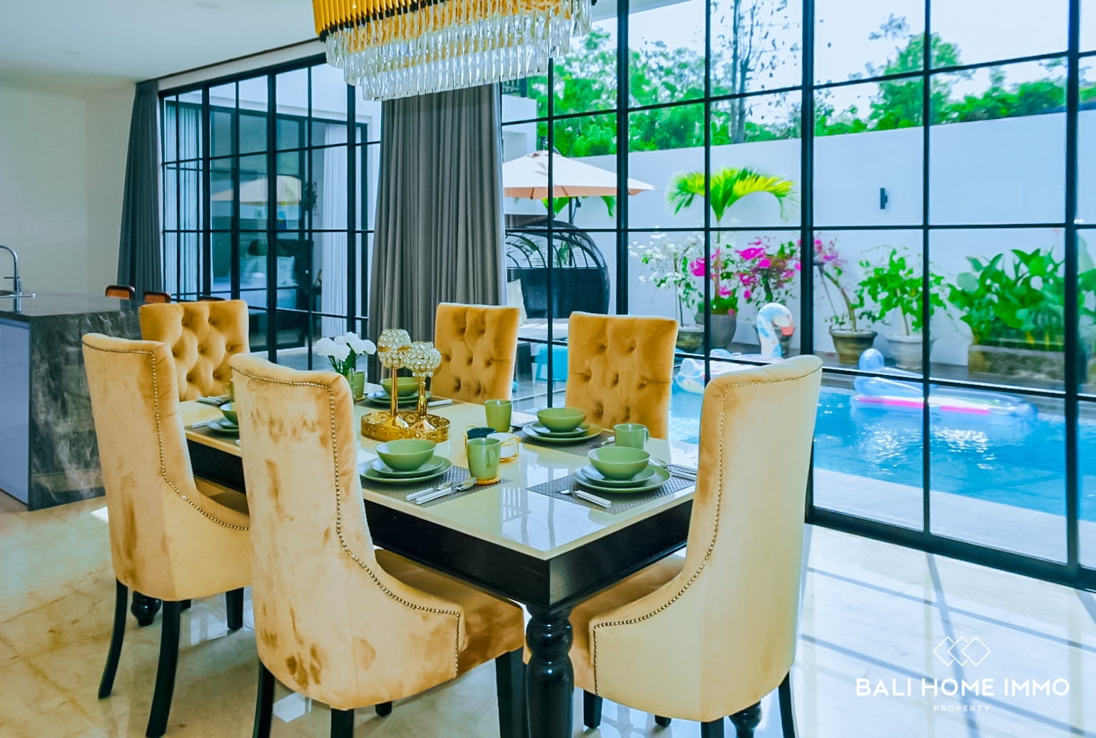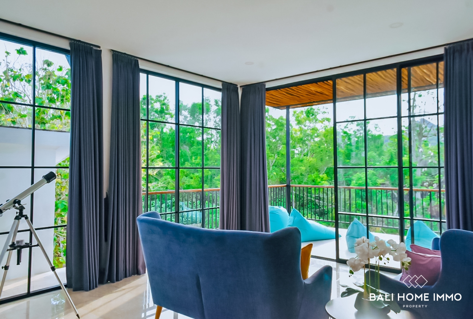 Discover this stunning 4 bedrooms villa located in the peaceful area of Ungasan, Bali, offering a perfect blend of modern design and tropical living. The villa features an enclosed living room with large glass windows, allowing abundant natural light to fill the space while maintaining a comfortable, air conditioned environment, ideal for both relaxation and everyday living.