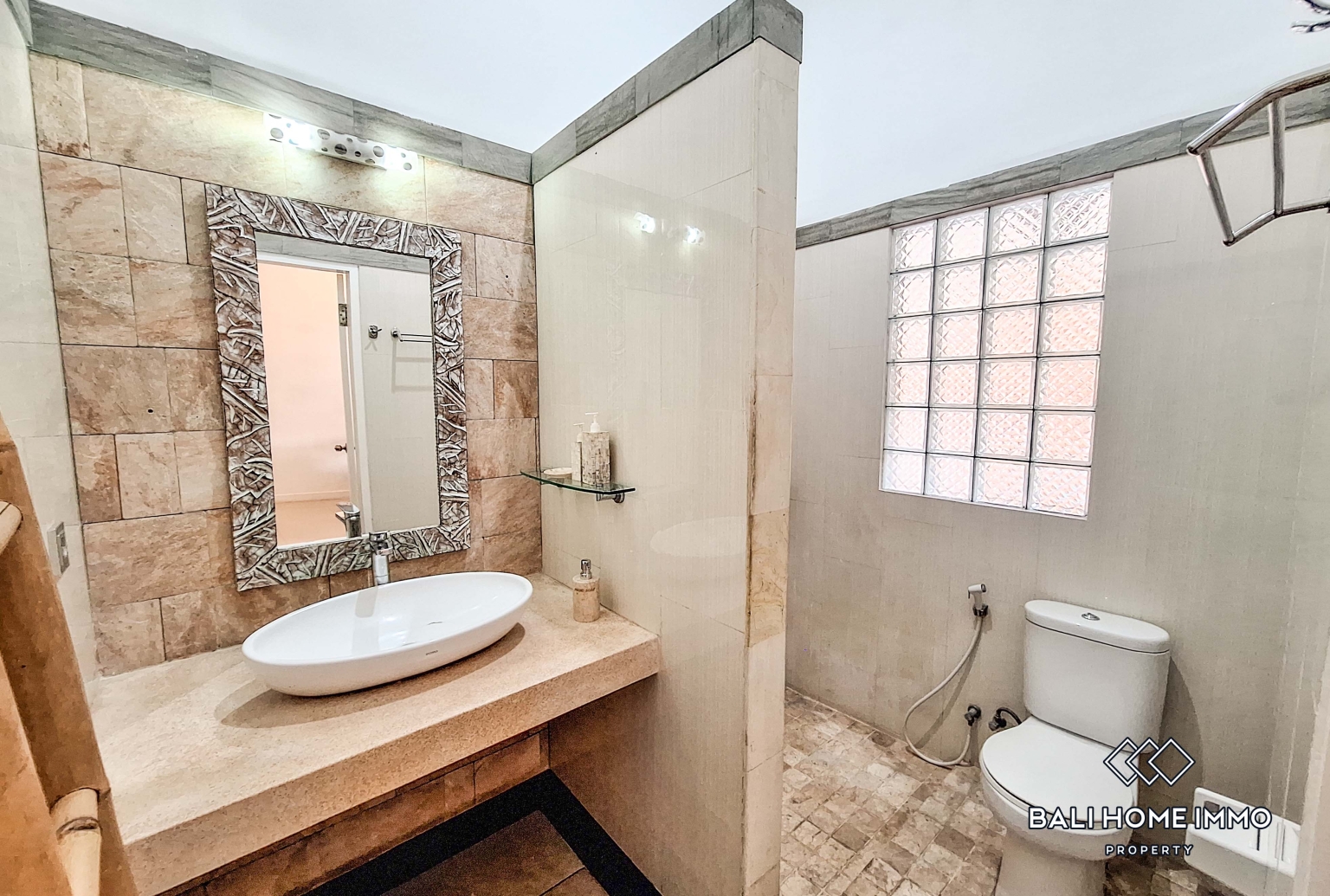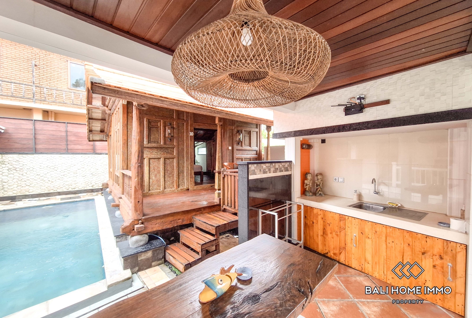 In addition to the main house, the villa includes three separate bedroom buildings, each offering one ensuite bedroom. One of these standalone units is designed in a beautiful joglo style, adding character and a warm traditional touch to the property. This layout is ideal for hosting guests, providing private space for family members, or creating flexible use such as a home office or studio.