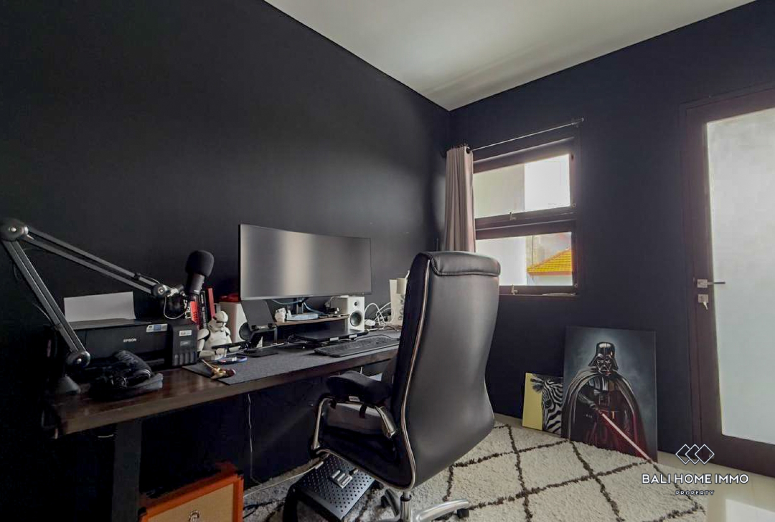 Upstairs, the villa continues to offer versatile spaces, including a studio room that can be converted into an additional bedroom, a fully equipped gym room with TV, and multiple guest bedrooms, including one with an ensuite bathroom. This layout makes the villa highly suitable for families needing extra rooms for work, fitness, or guests. The property is available for yearly rental, with weekly cleaning service included, as well as banjar and garbage fees covered by the owner, ensuring a convenient and hassle-free living experience. With its generous layout, large pool, and quiet location, this villa is an excellent choice for families seeking a comfortable long-term home in the Canggu area.